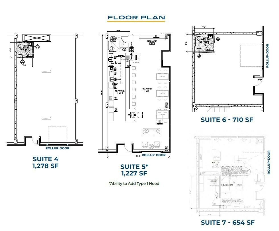 Retail and service spaces available in a new mixed-use building.