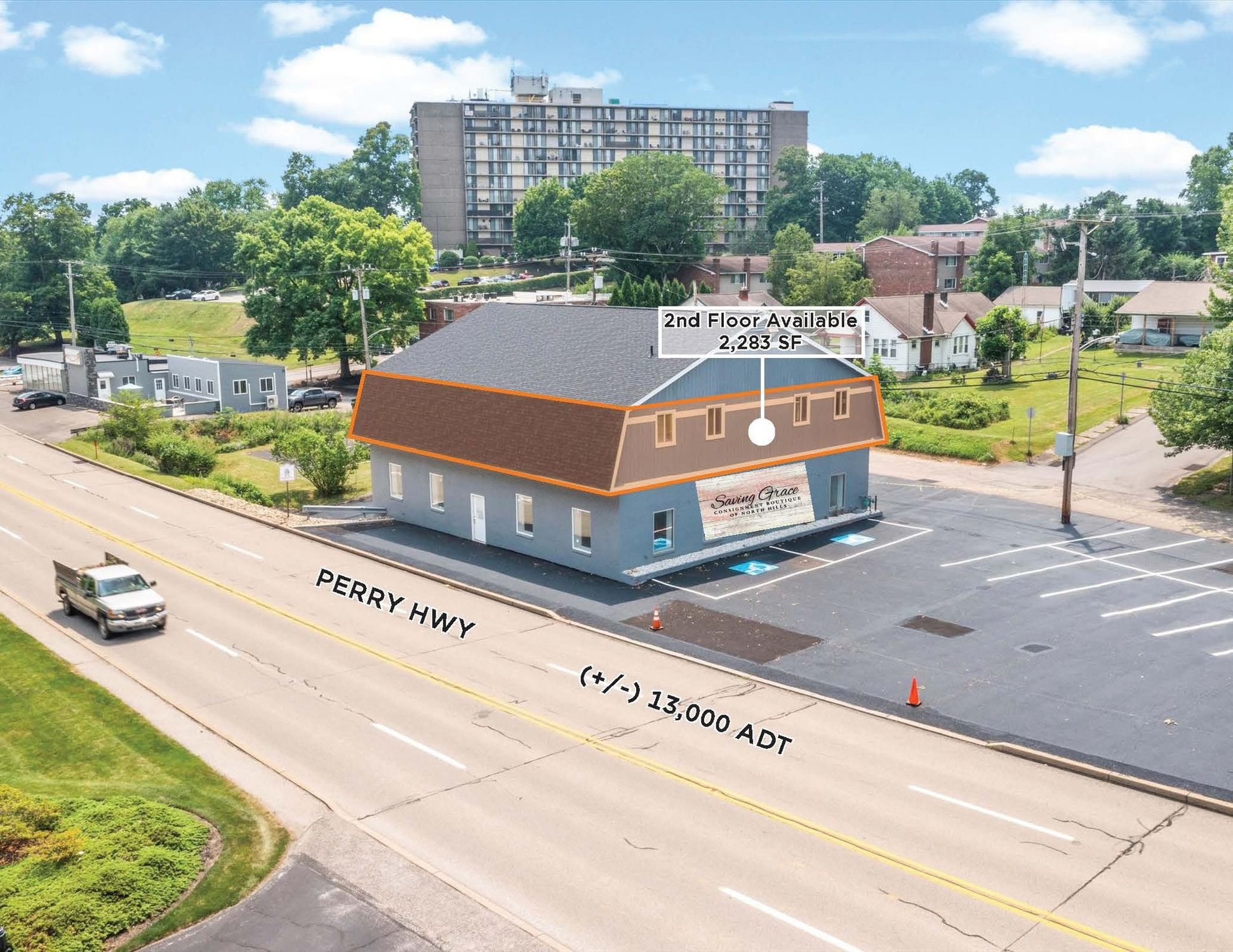 Second floor retail or office space in Pittsburgh's North Hills.