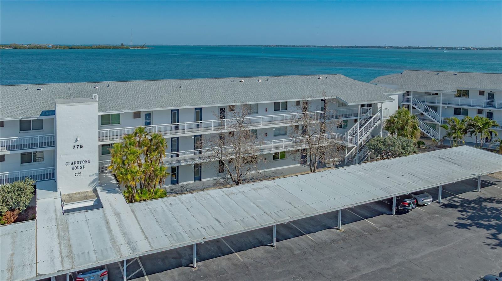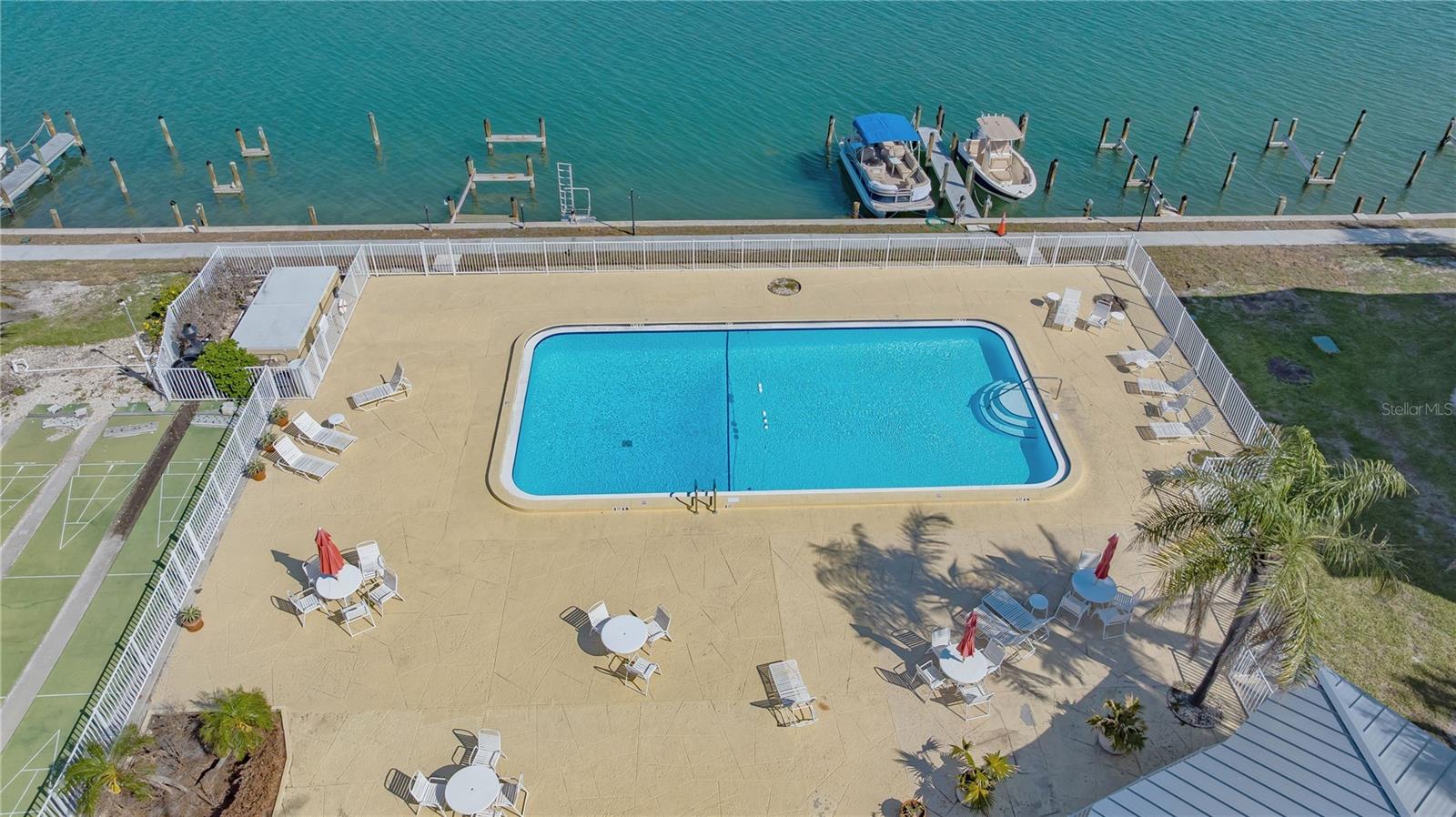 Waterfront 55+ community condo with bay views and amenities.