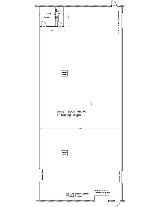 6000 SF warehouse with dock door and small office.