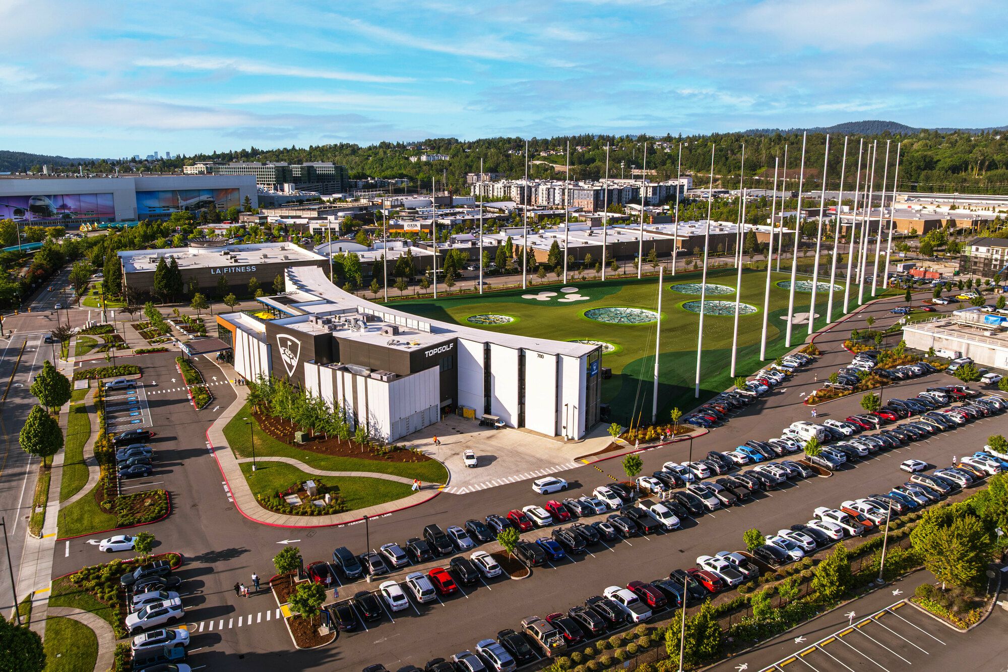 Located in a high-traffic area near major businesses and retail.