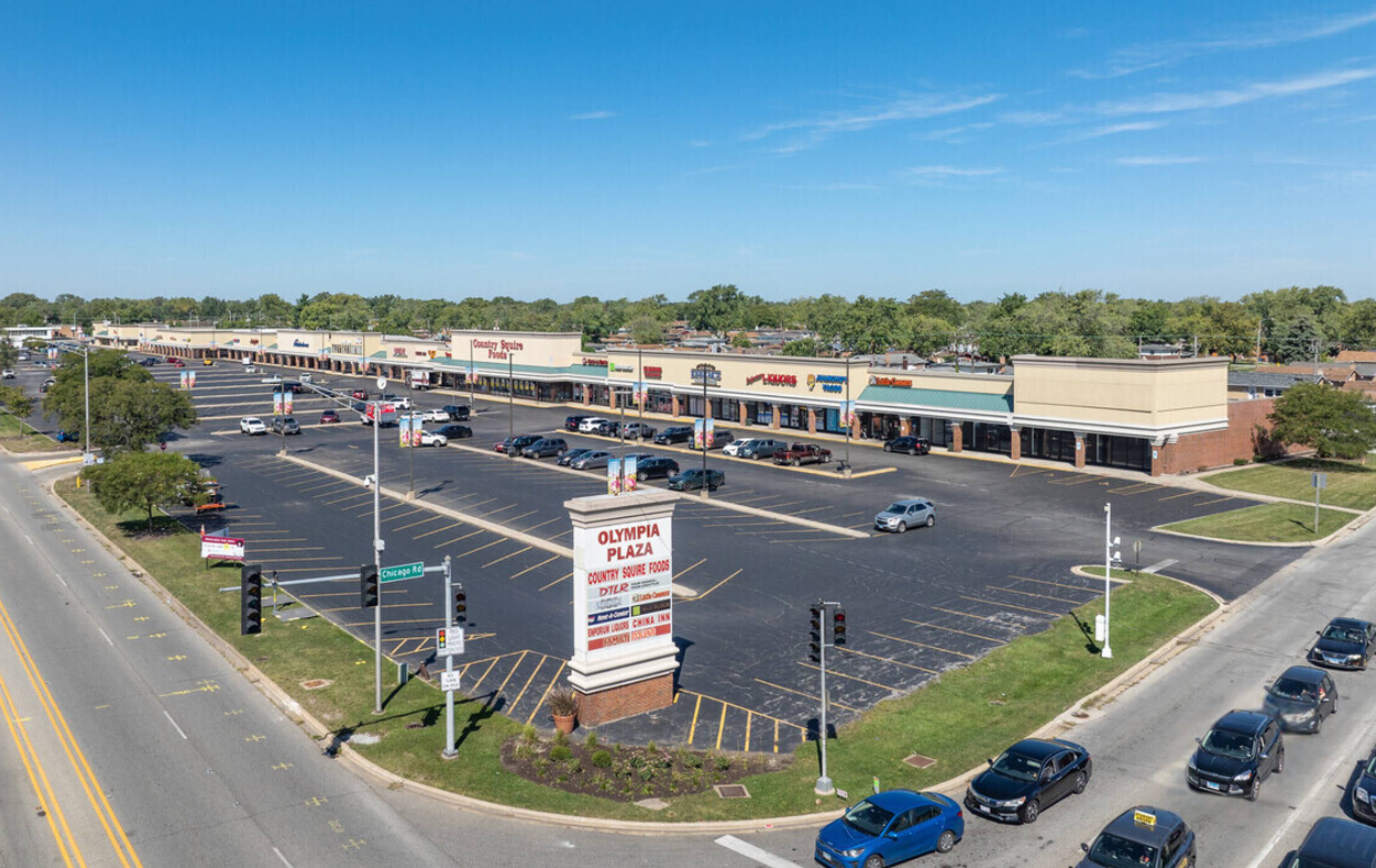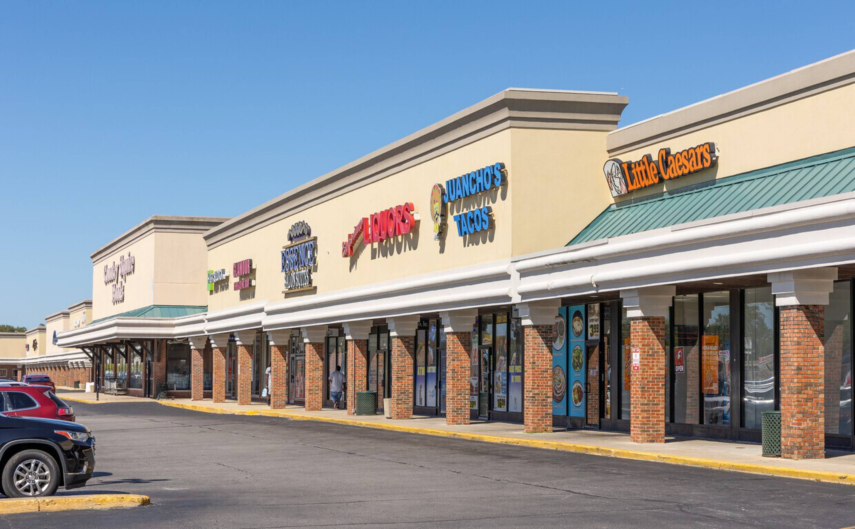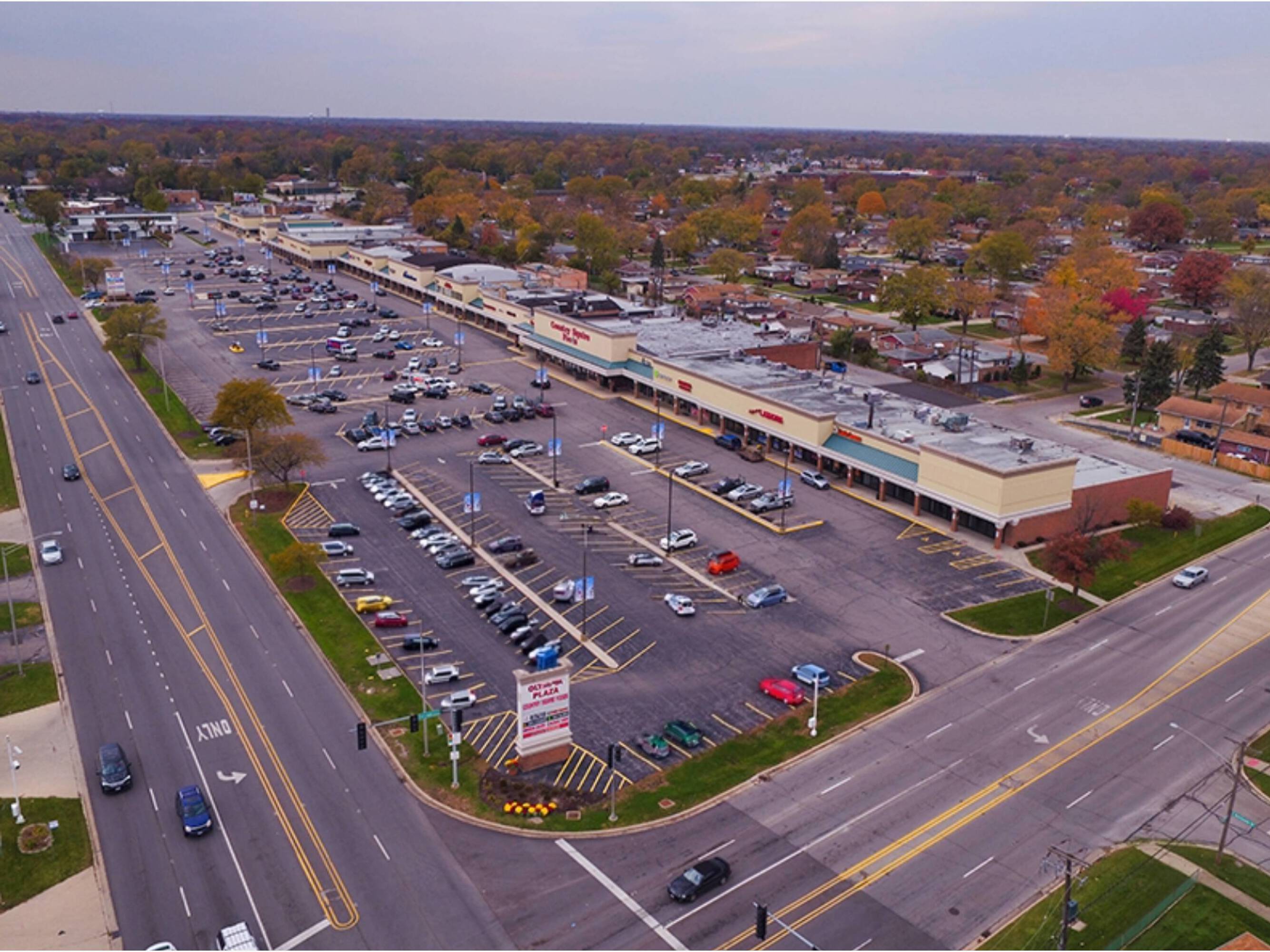 Retail spaces in a high-traffic shopping center with ample parking.