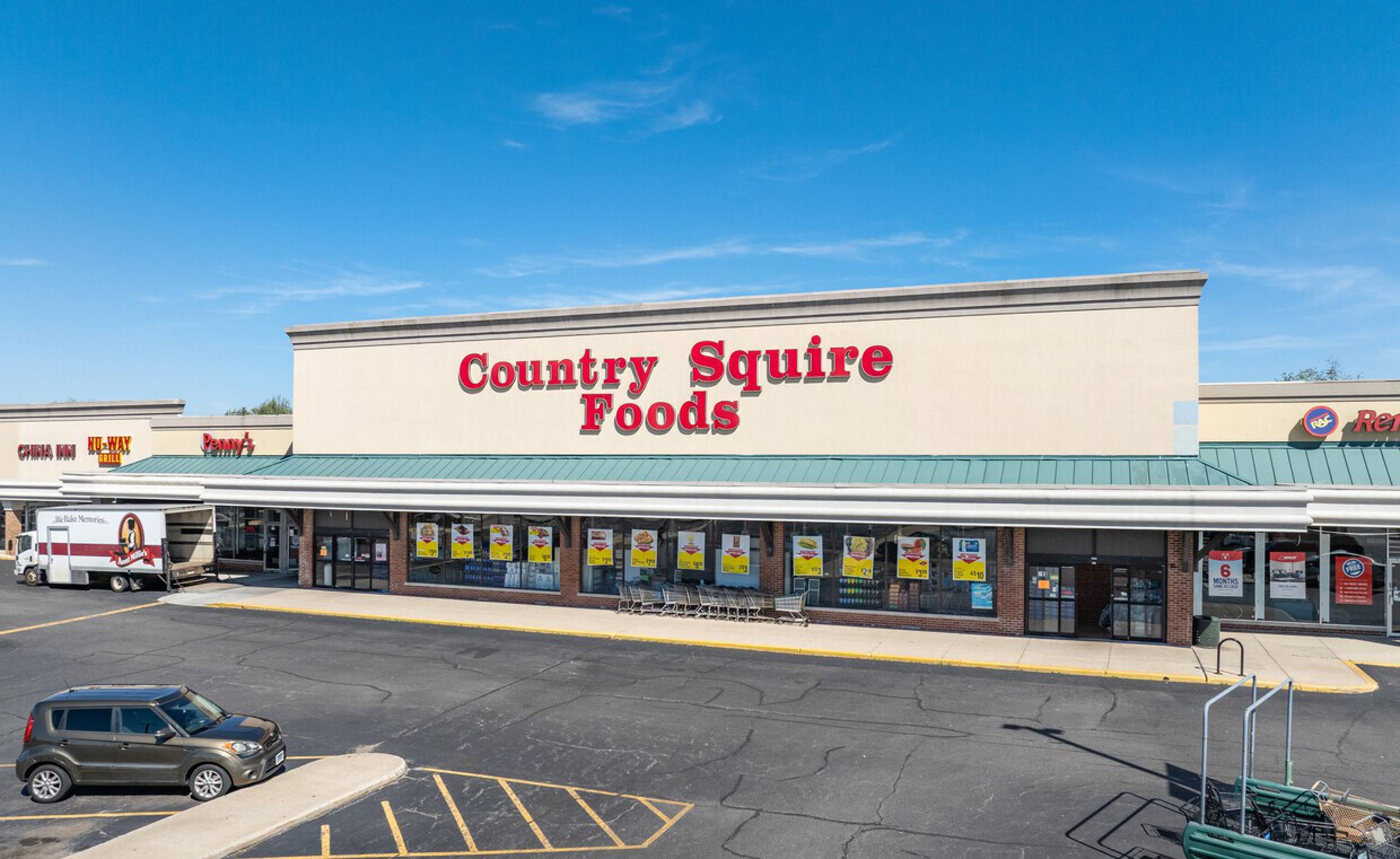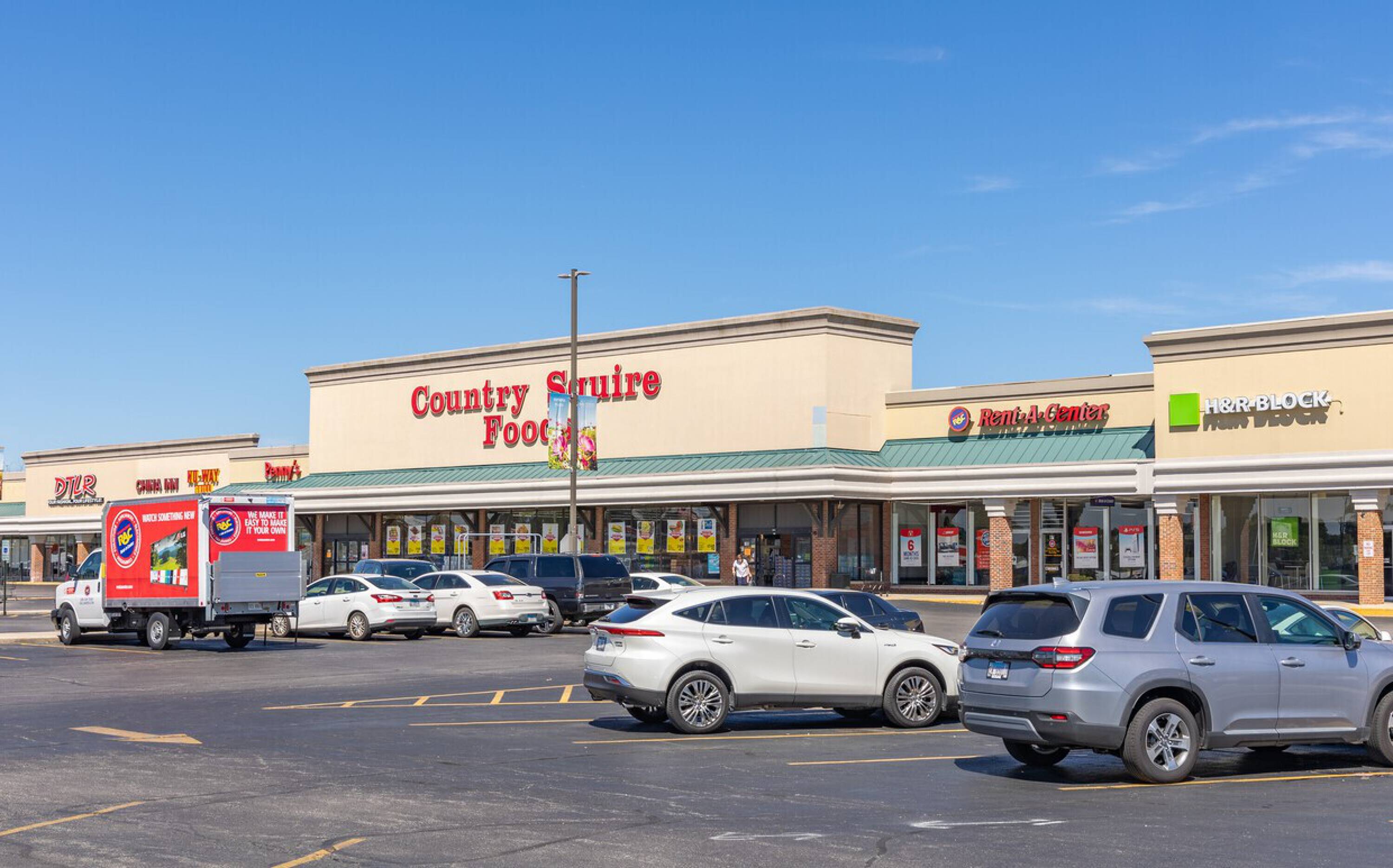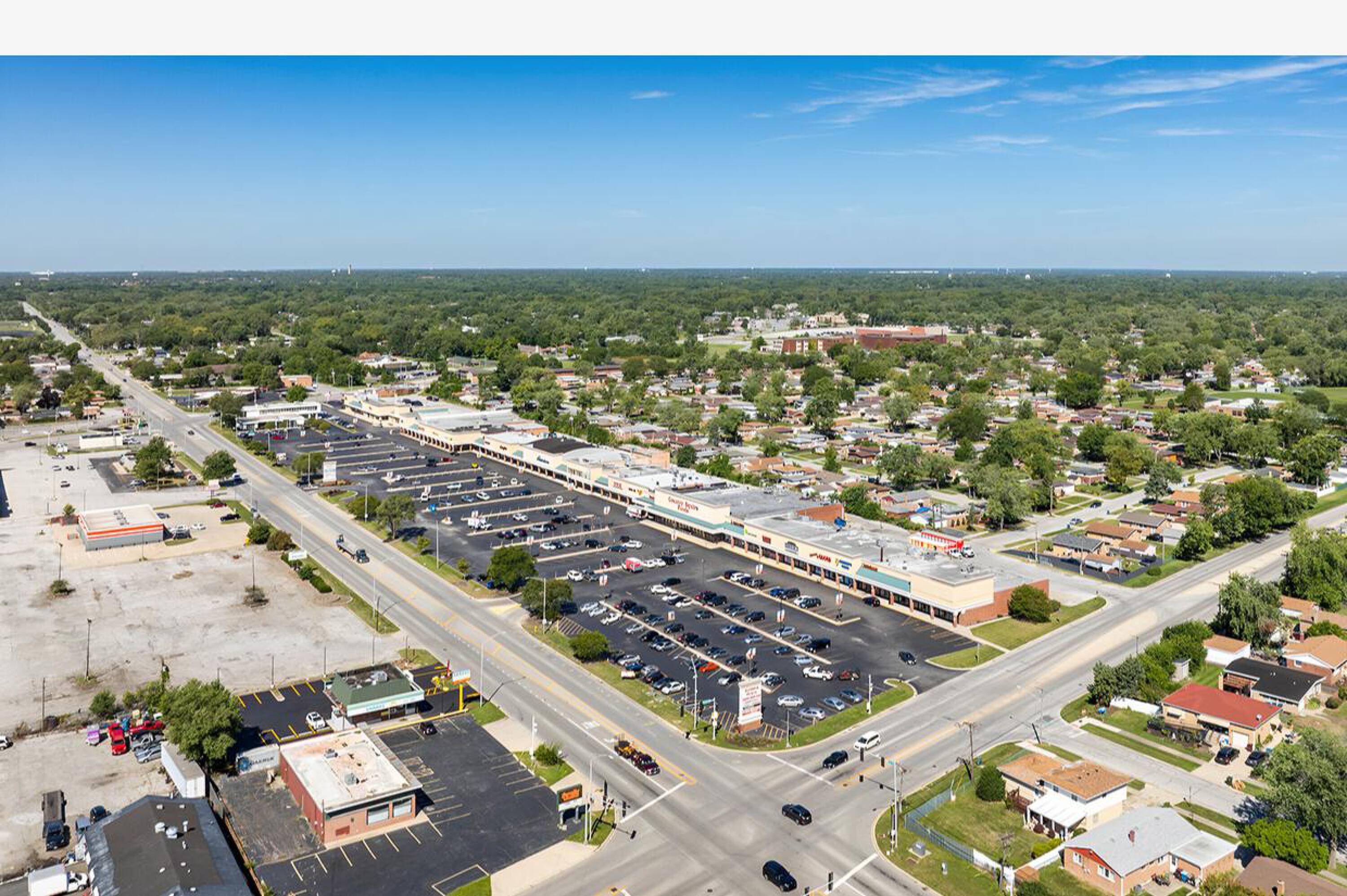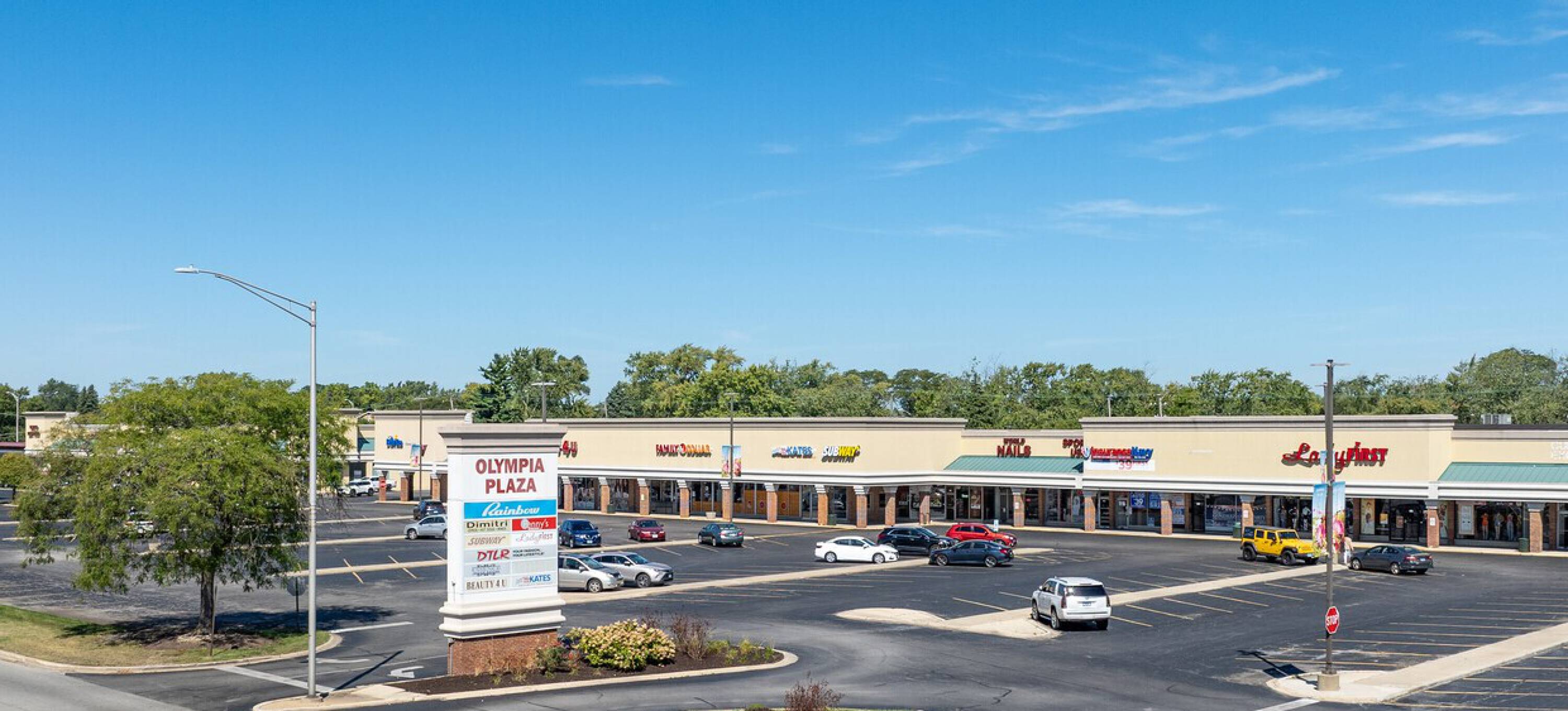 Retail spaces in a high-traffic shopping center with ample parking.