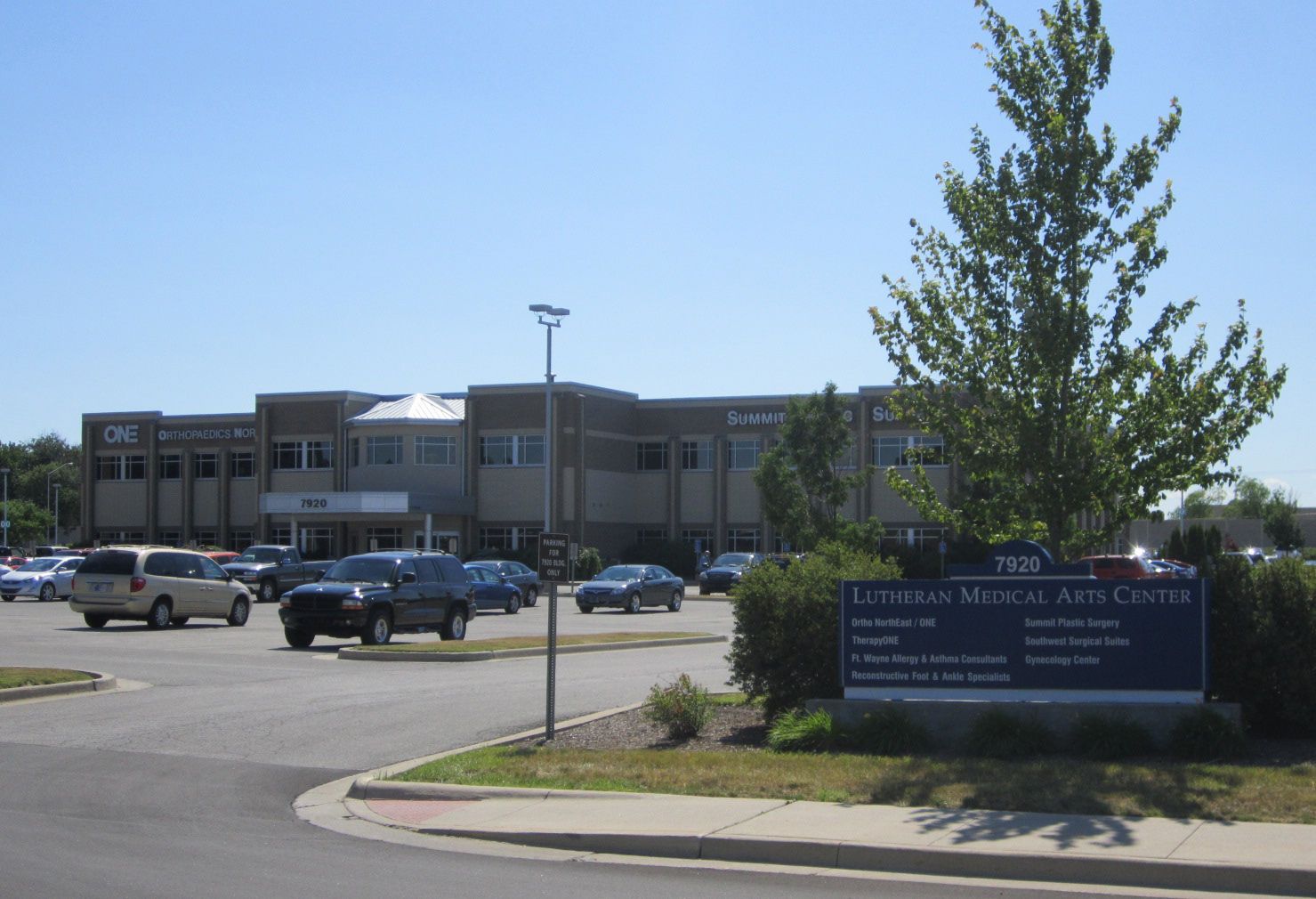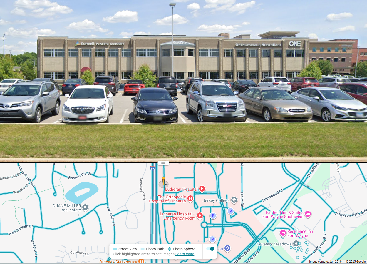 Medical office building on Lutheran Hospital Campus, visible from I-69.