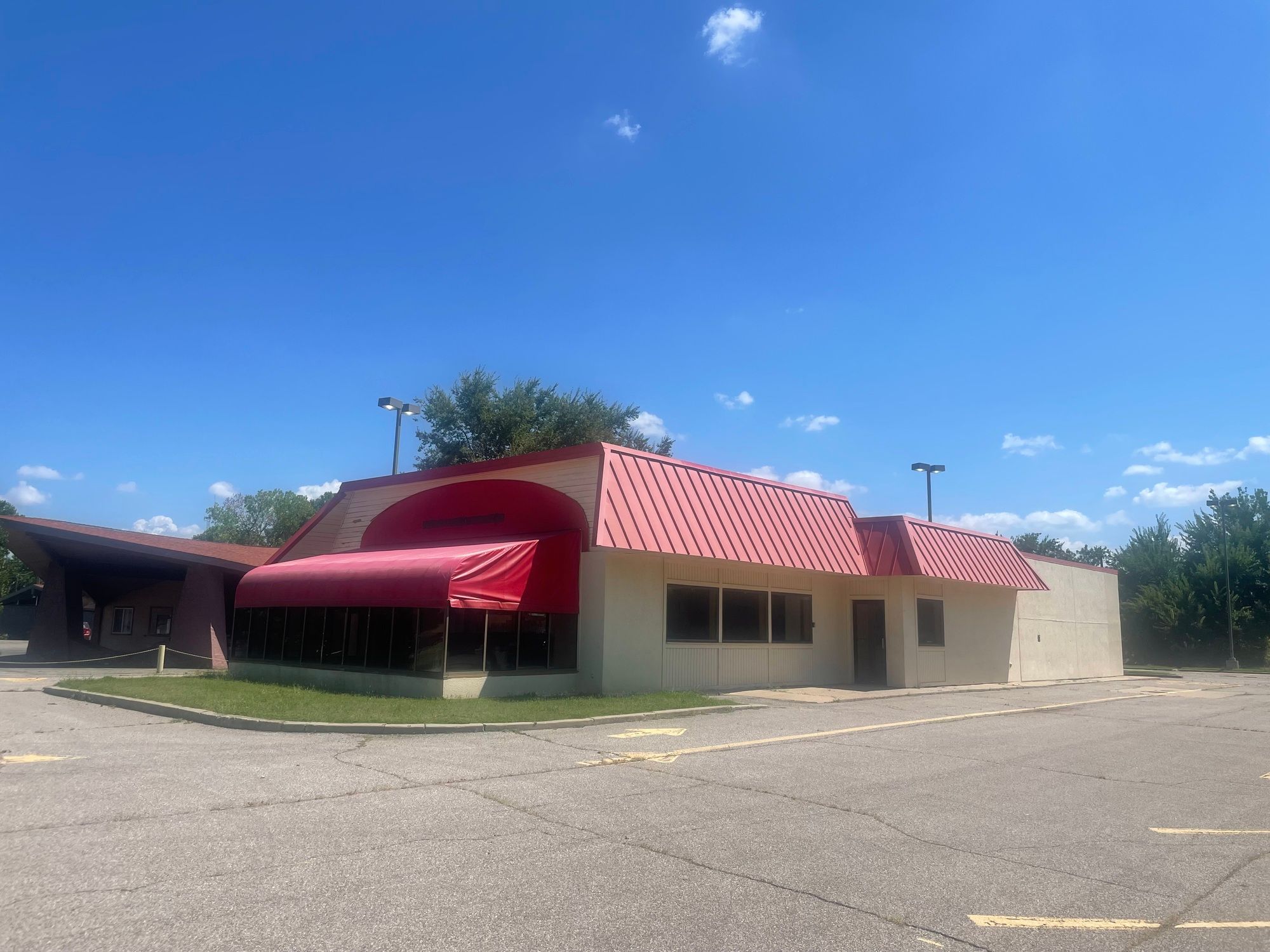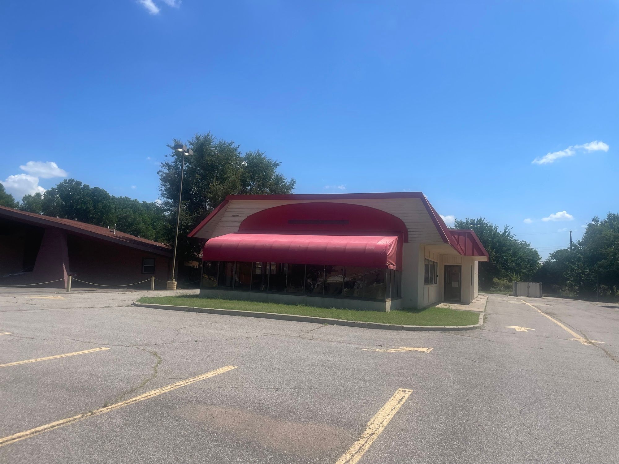 Freestanding retail building on historic Route 66 with high visibility.