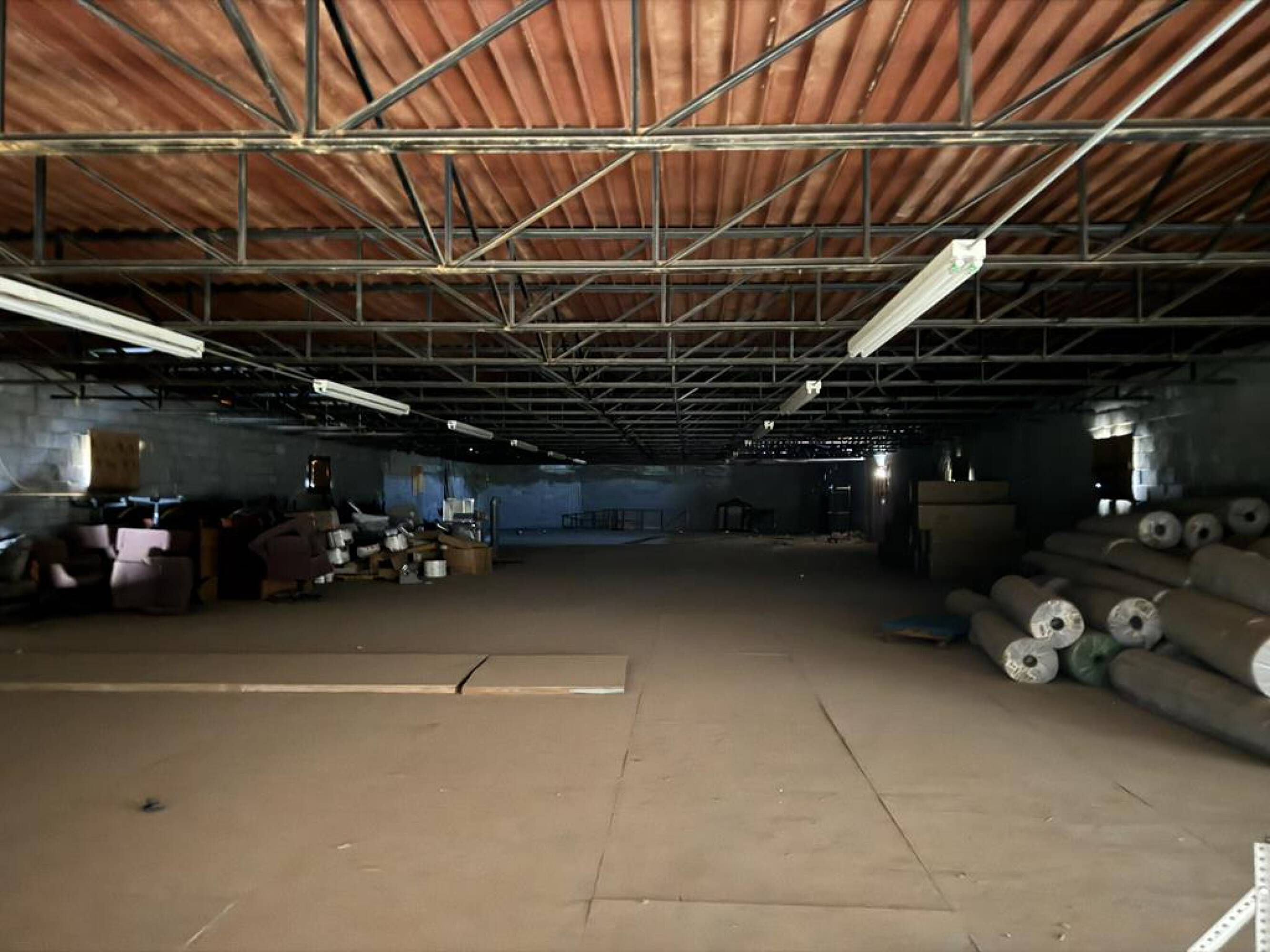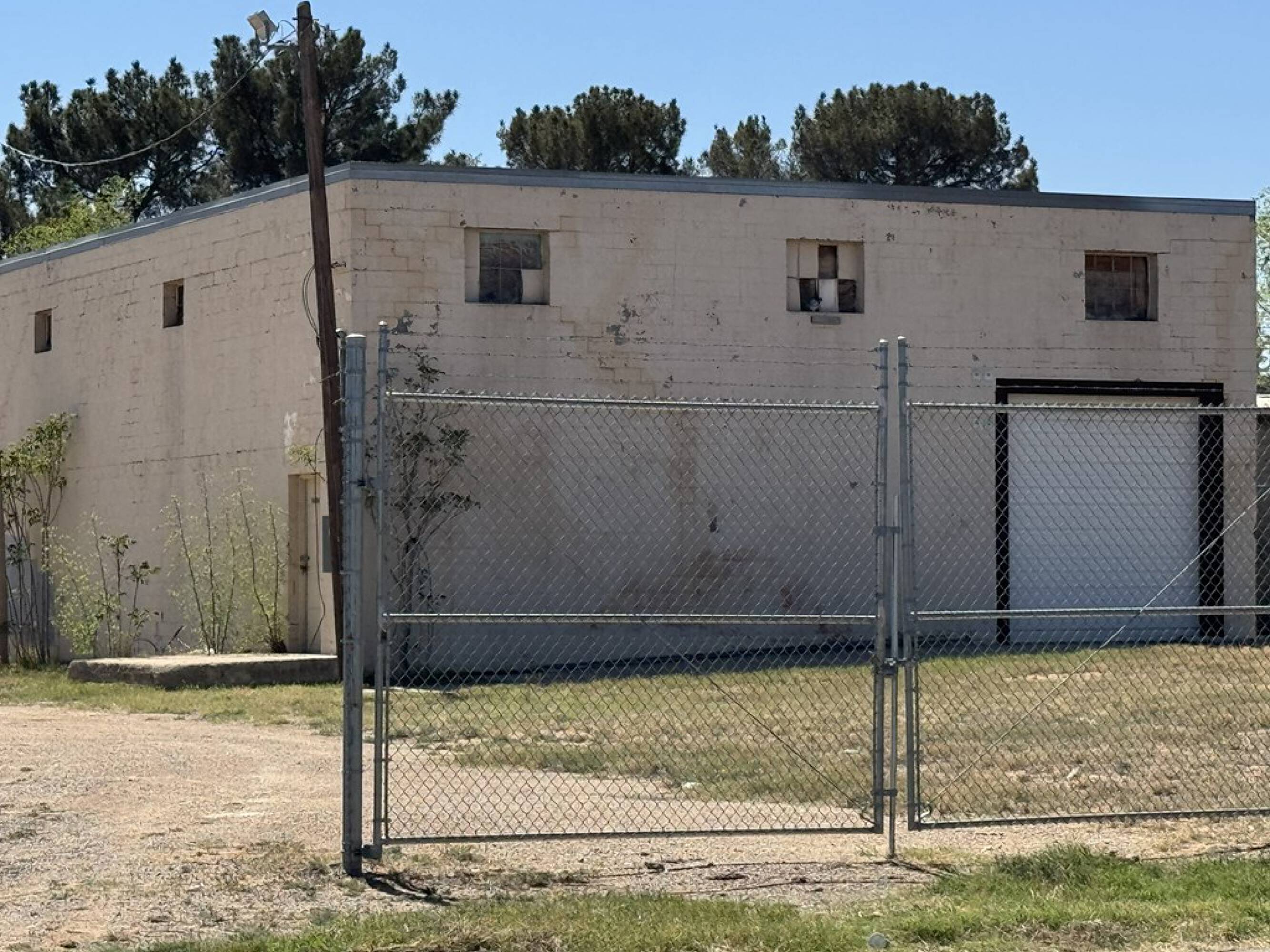 Commercial property featuring a spacious lot and mid-size warehouse.
