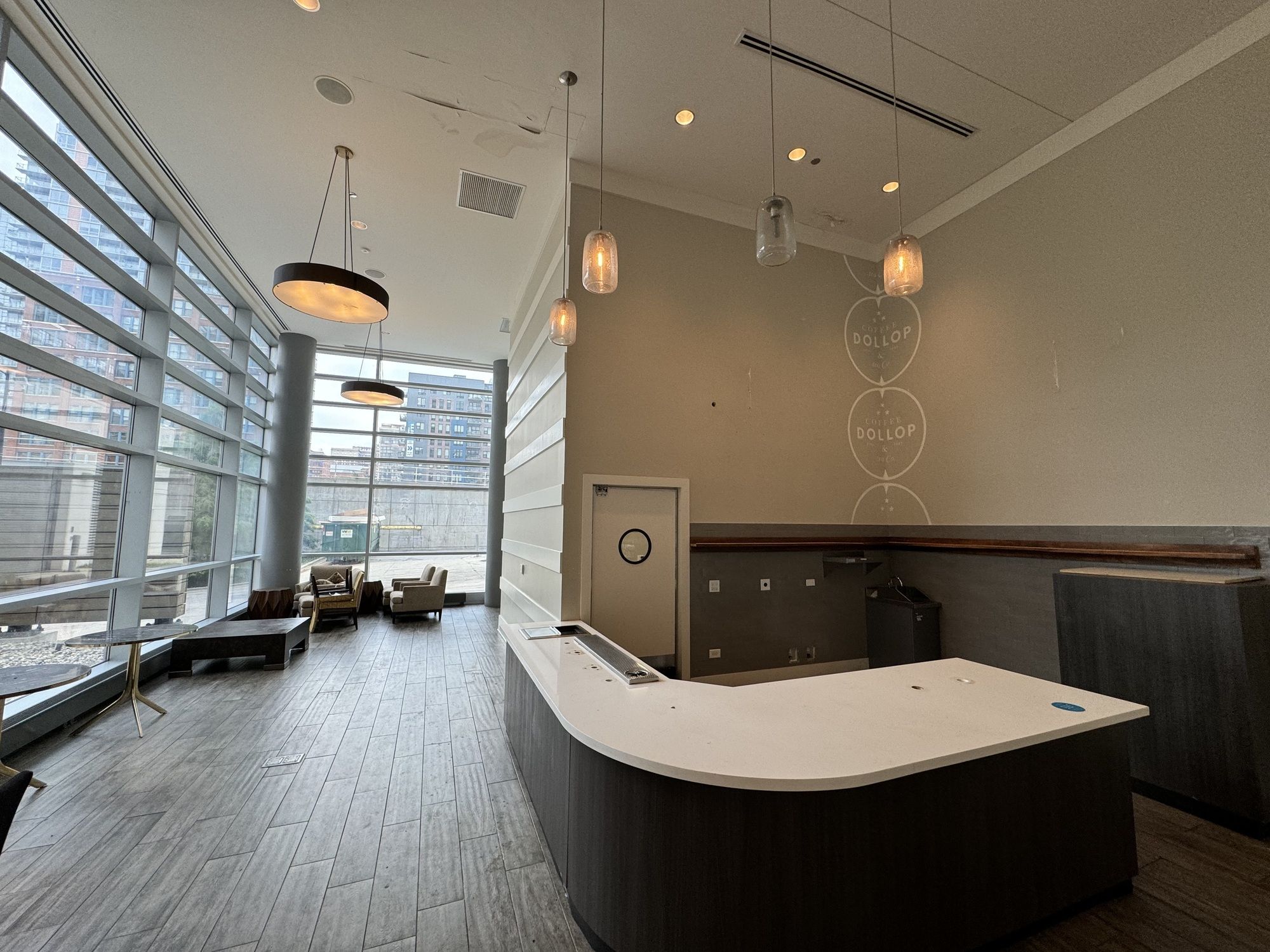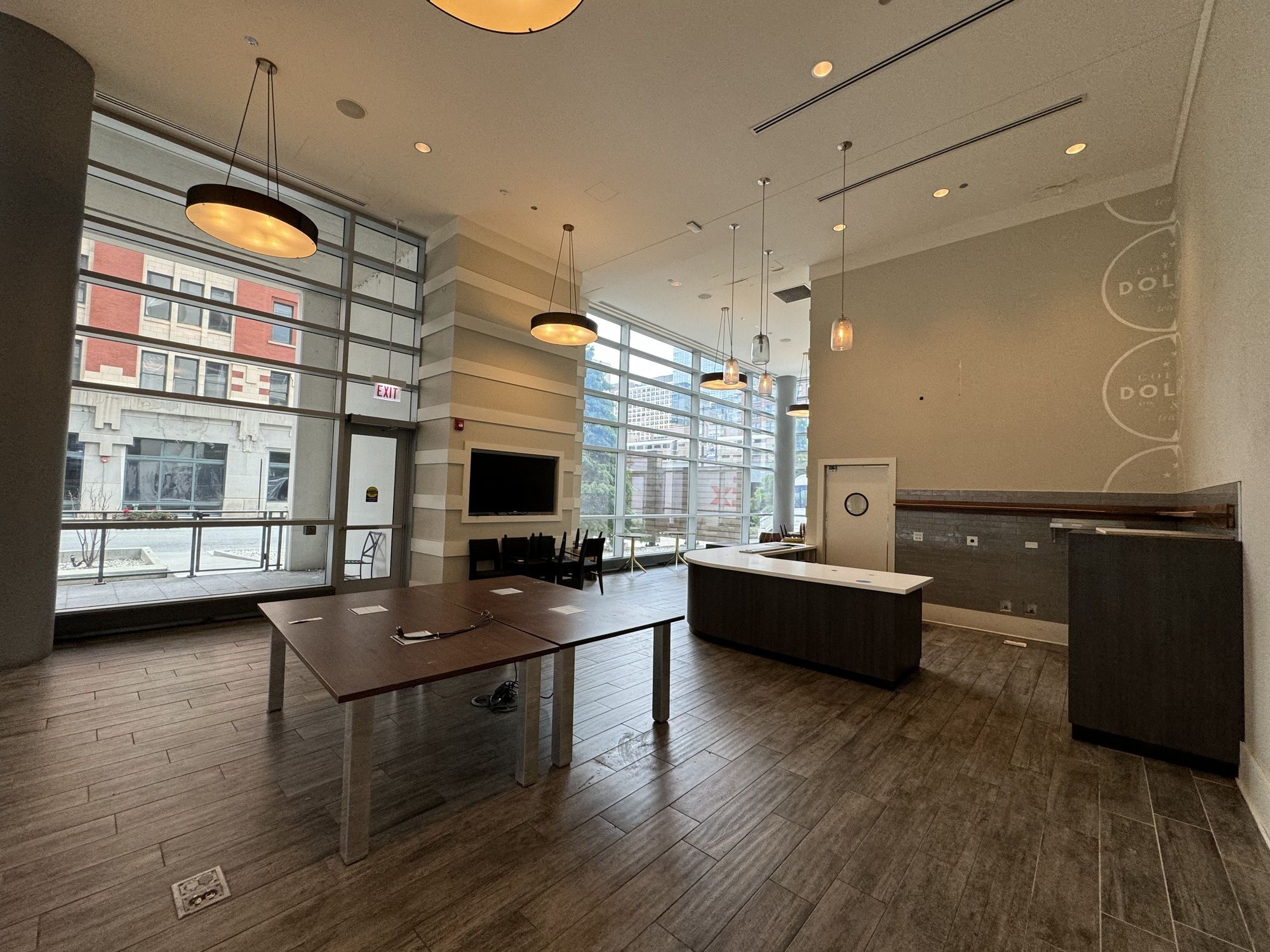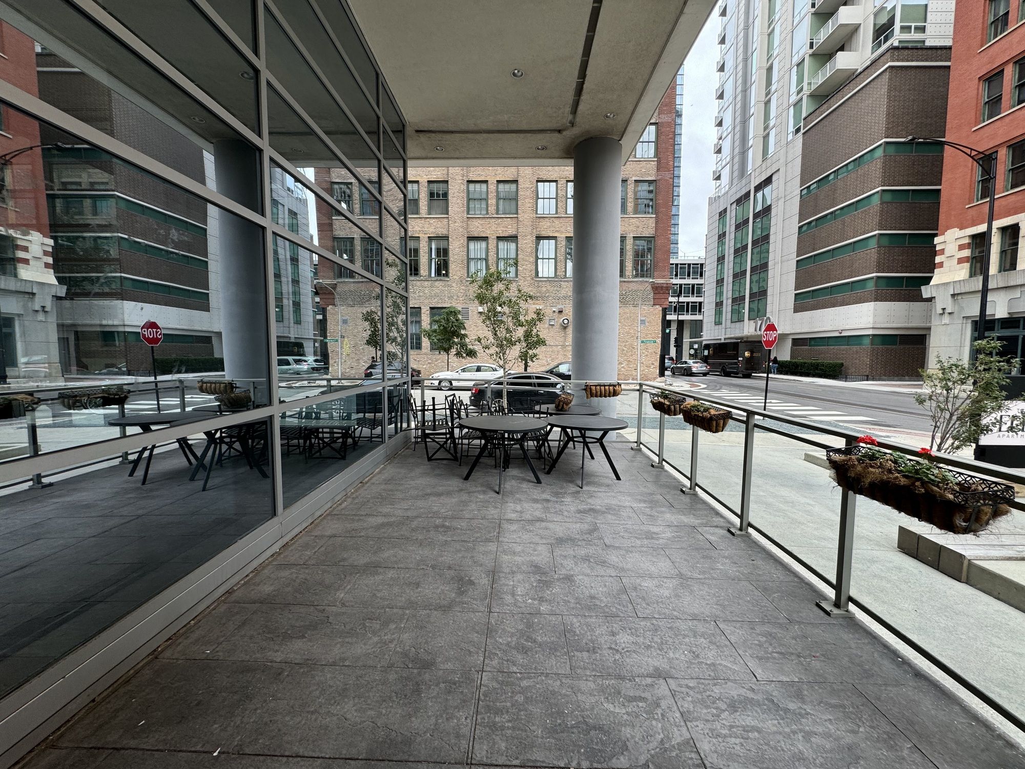 Retail space in high-end apartment building with outdoor patio.