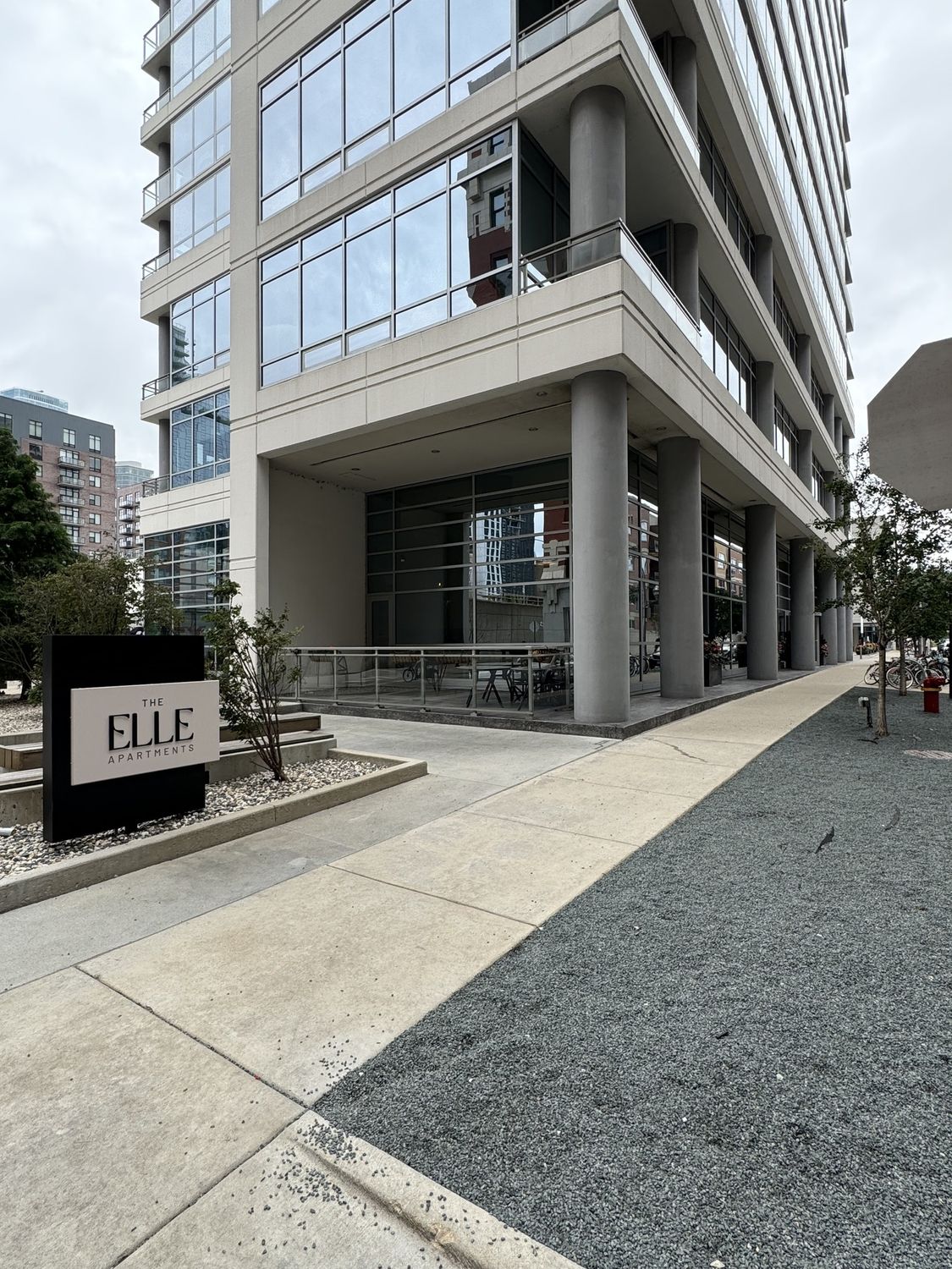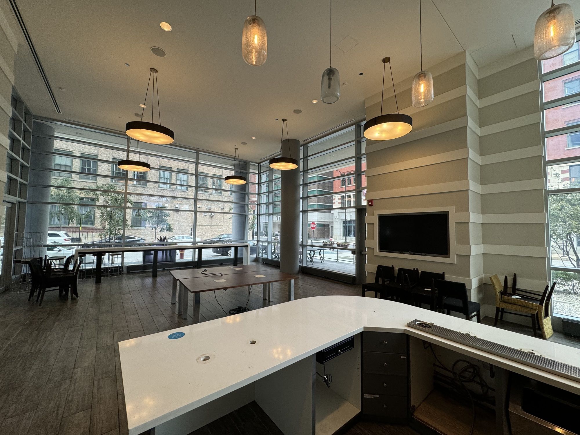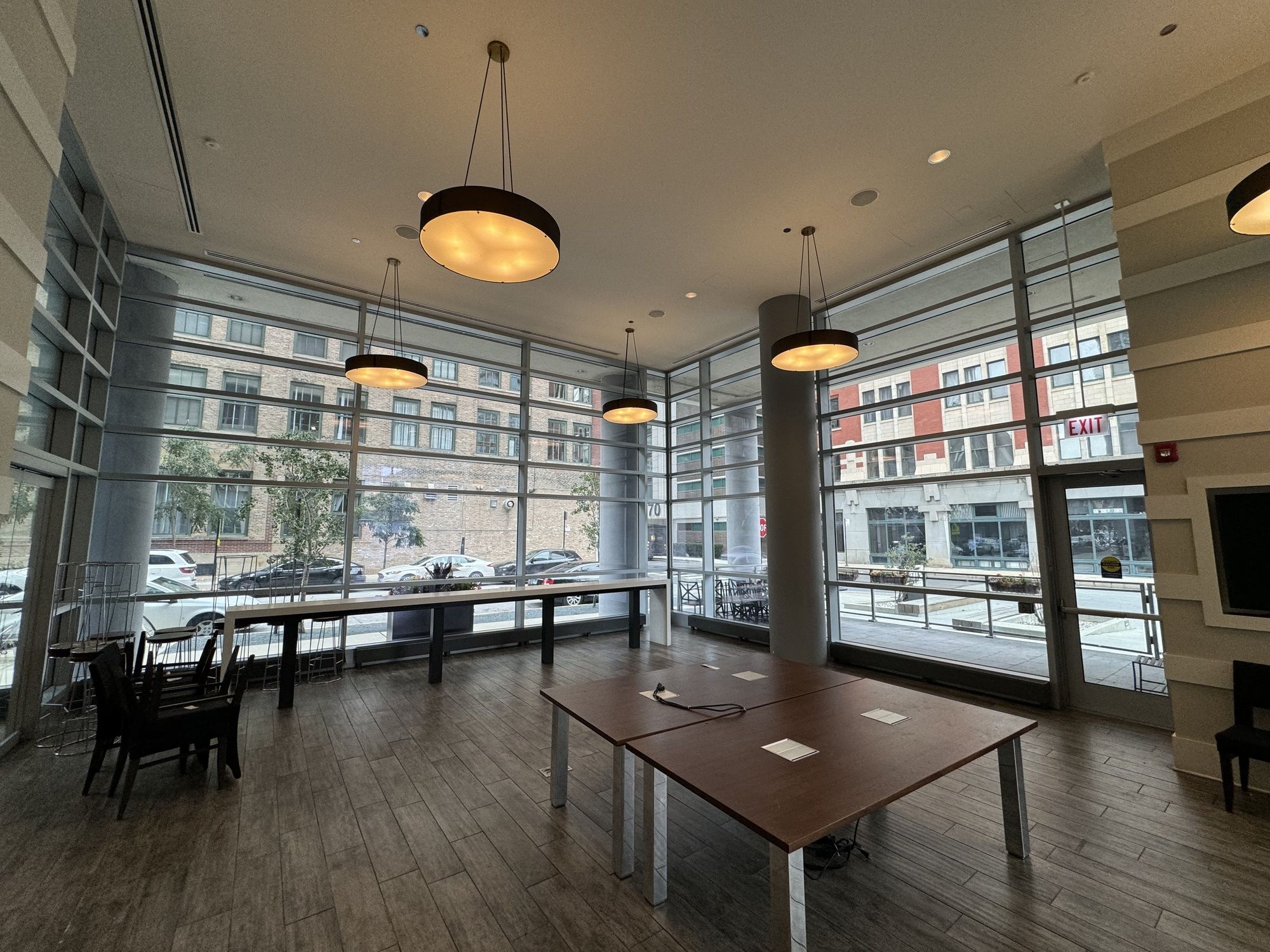 Retail space in high-end apartment building with outdoor patio.