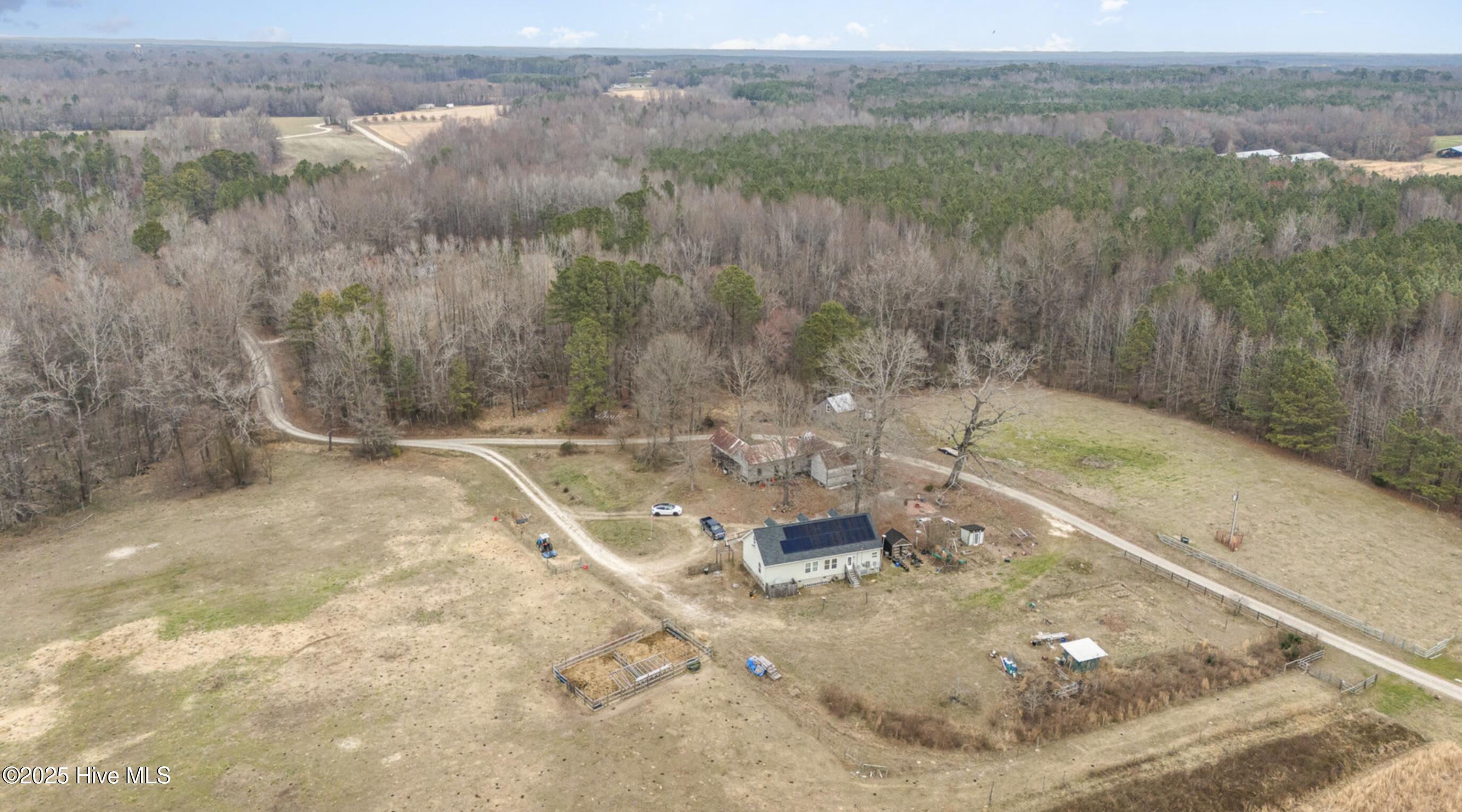 This property features a three-bedroom, two-bath modular home designed for accessibility, including a handicap ramp. An unpermitted finished second story adds additional living space with two bedrooms, one bath, and a flexible area. Outdoor features include a fire pit, solar panels, and a swing. Several outdoor structures offer versatile usage opportunities. The property is a 20-acre functioning farm, set up for an agricultural lifestyle. Livestock includes cows, chickens, and pigs. The farm features three pastures, a chicken coop, and a pig pen. Farm equipment is included. Walking trails and hunting spaces are located within a private and secluded environment. The property size is 1548 square feet.