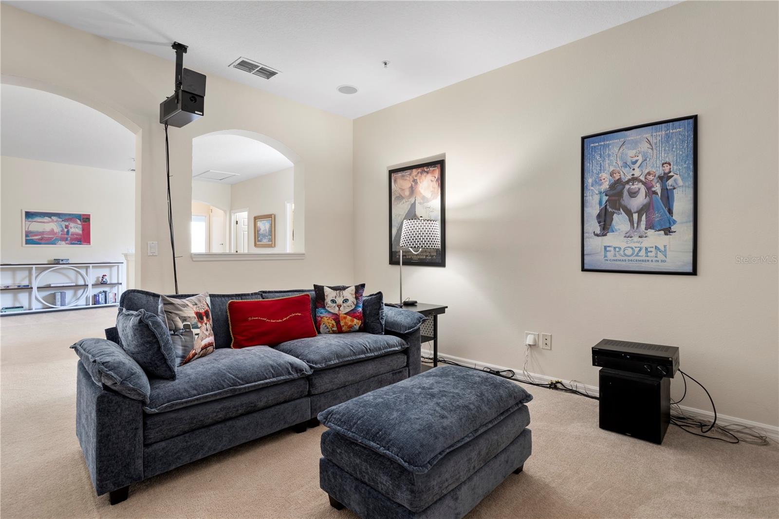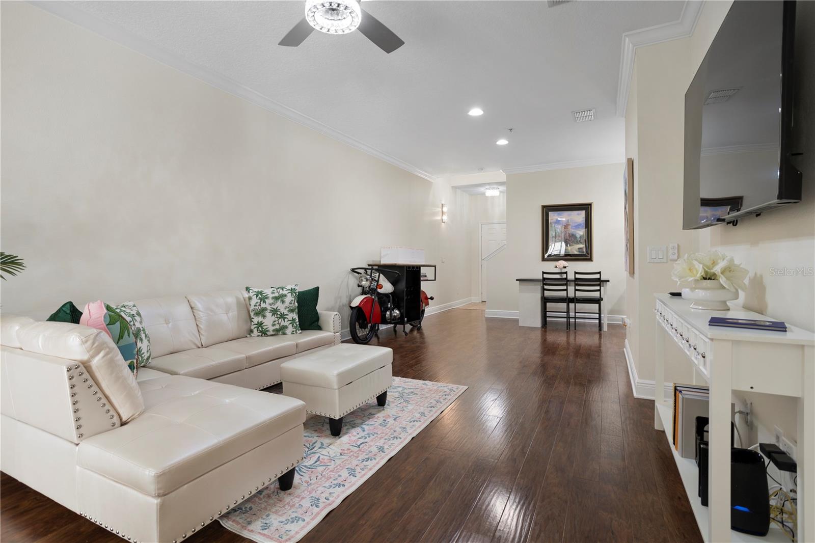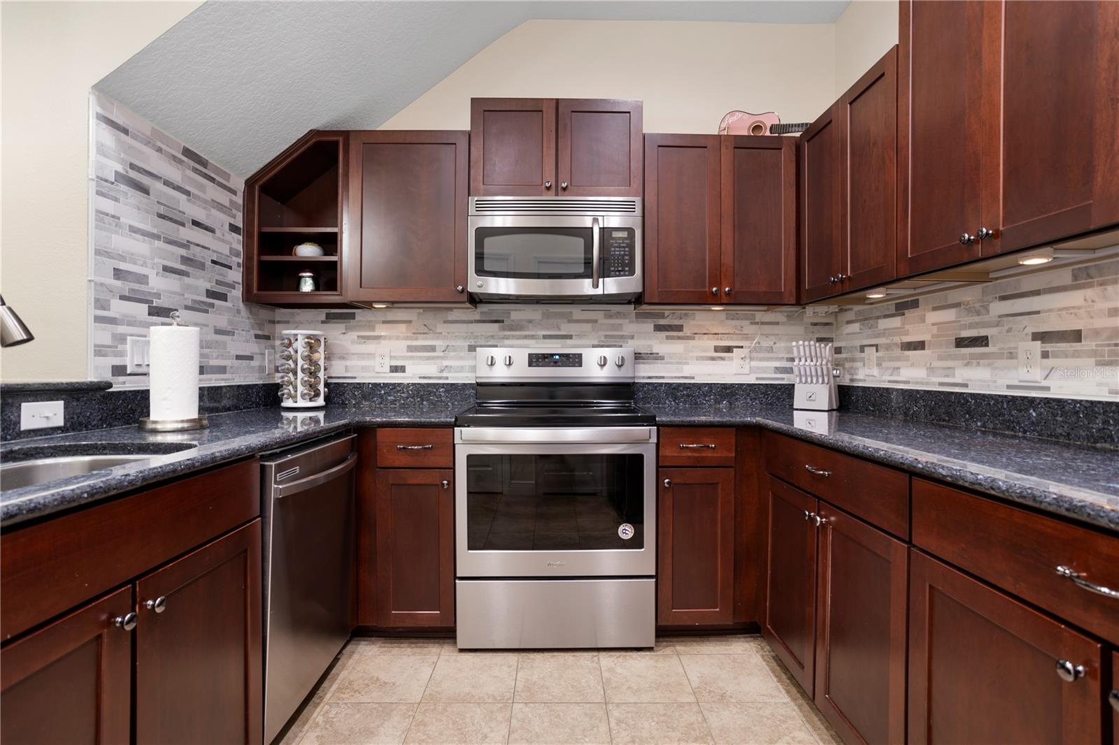 This two-story condo features 3 bedrooms and 2.5 bathrooms. The property is located in a peaceful part of the neighborhood and backs up to serene greenery. The interior includes an oversized loft area upstairs and a versatile bonus room. Light fixtures add a stylish touch throughout the home. The kitchen features stainless steel appliances and granite countertops. A private, fenced-in courtyard with a screened-in patio provides an ideal spot to unwind. The home includes a two-car garage. The gated community offers amenities, including a resort-style pool, playground, and clubhouse. The property is located near Walt Disney World and Horizon West, offering convenient access to shopping and dining. The property size is 1826 square feet.
