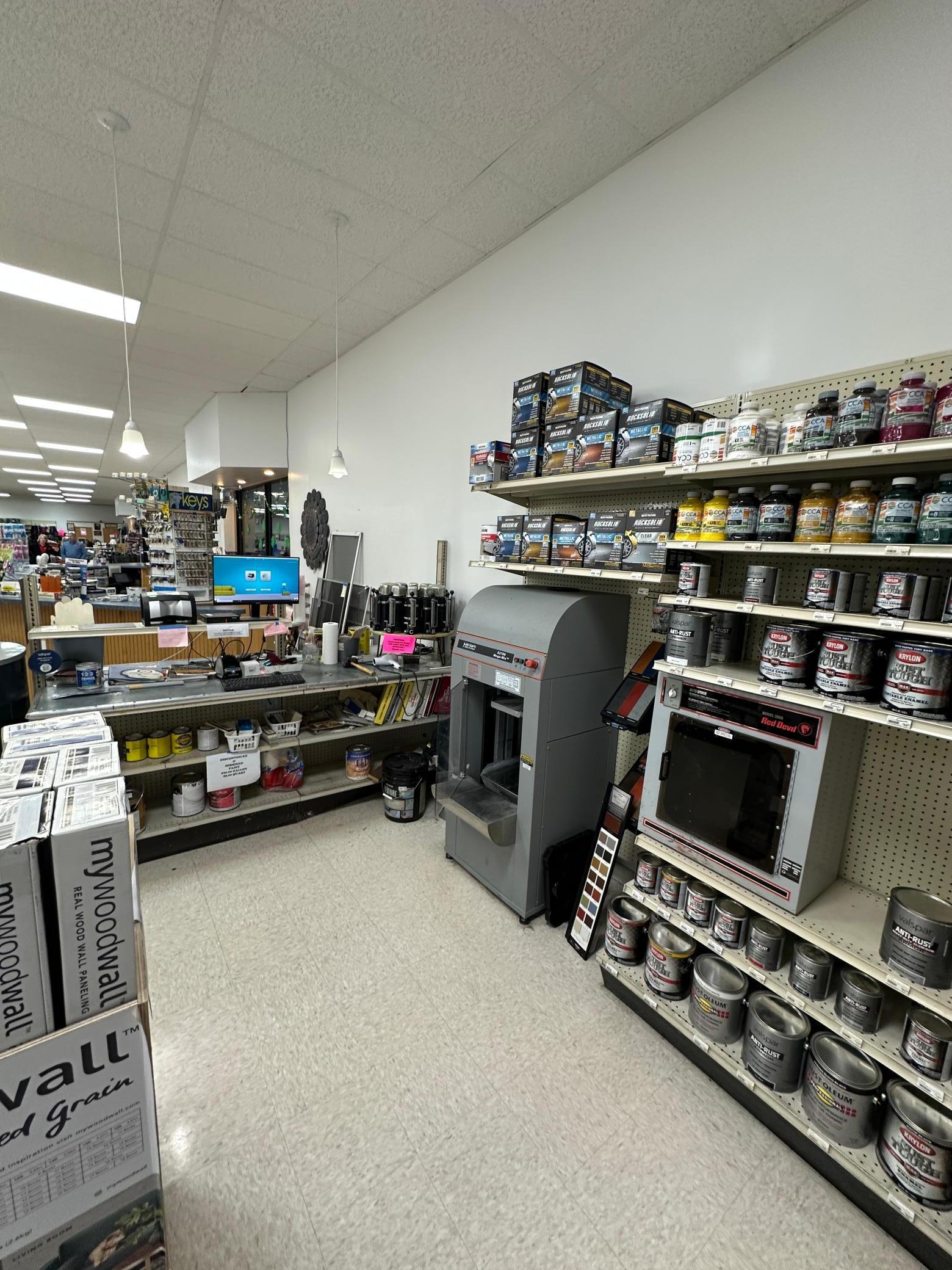 Well-located, spacious hardware store with land, building, and inventory.