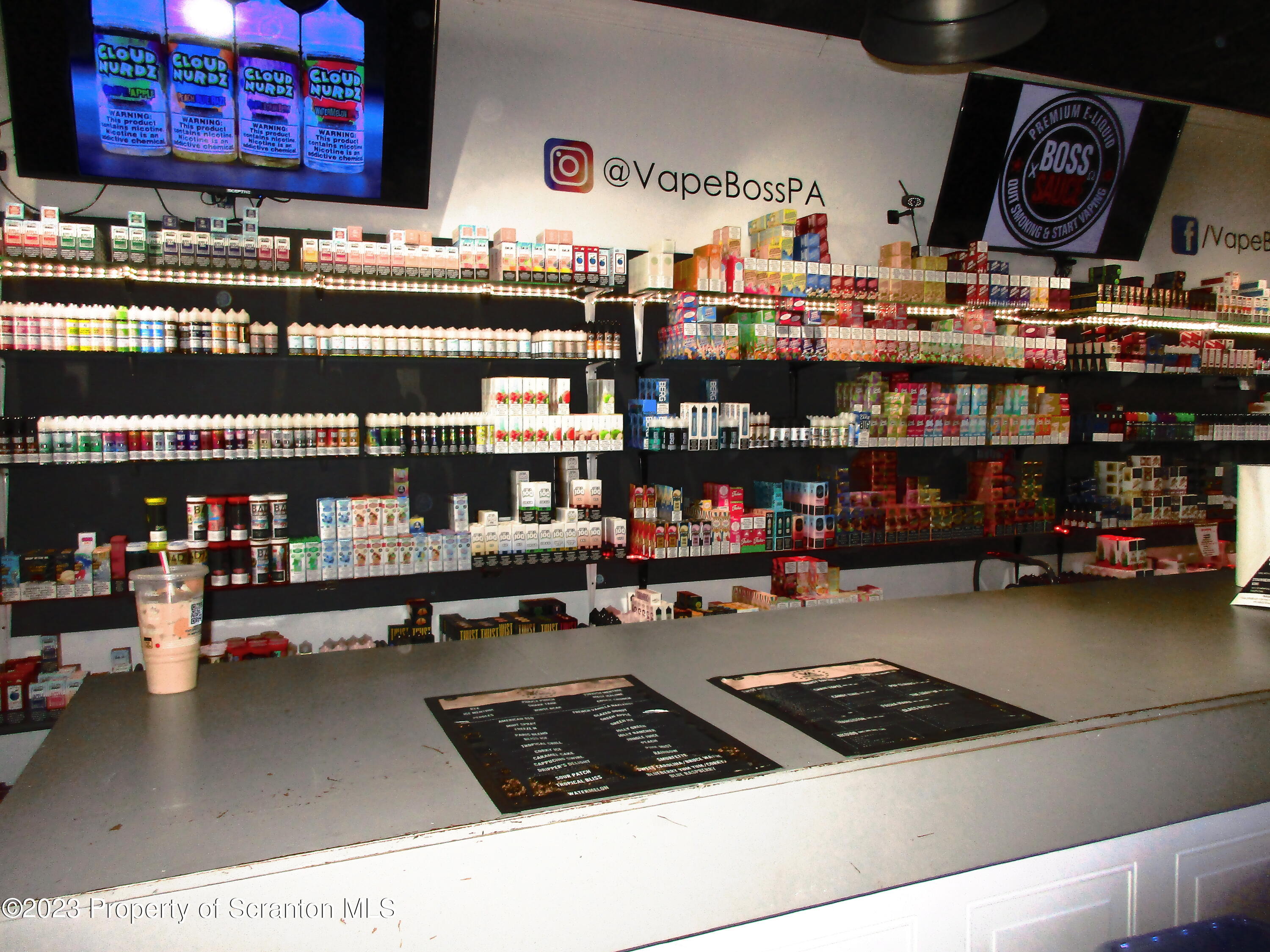 Thriving vape shop with 500 flavors on high-traffic highway.