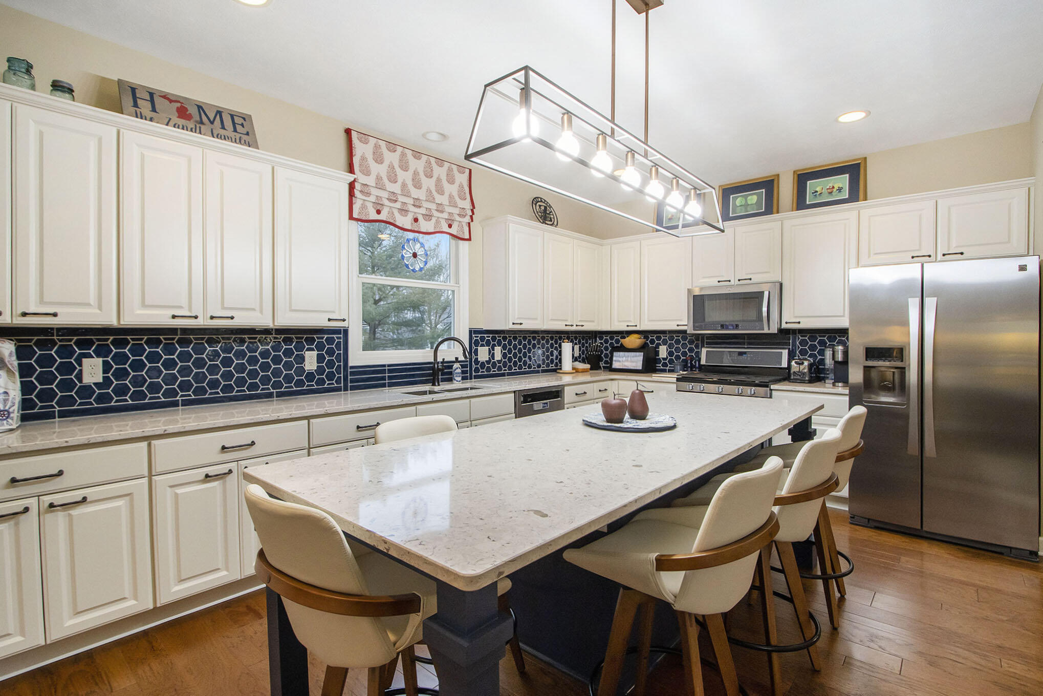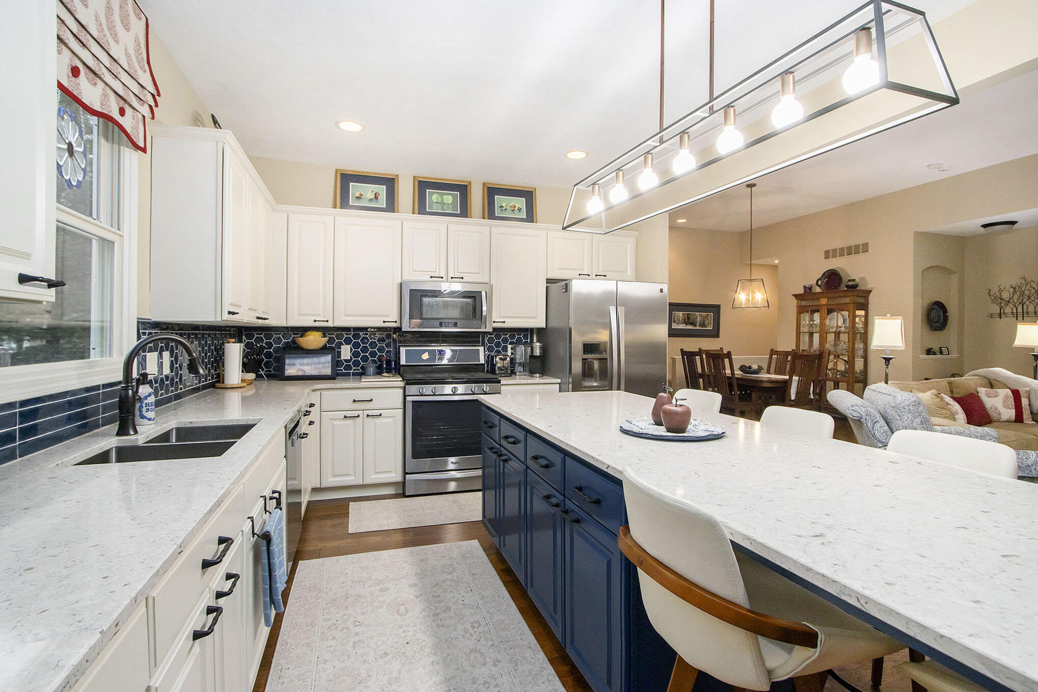 Well-appointed home featuring modern kitchen, sunroom, and finished basement.