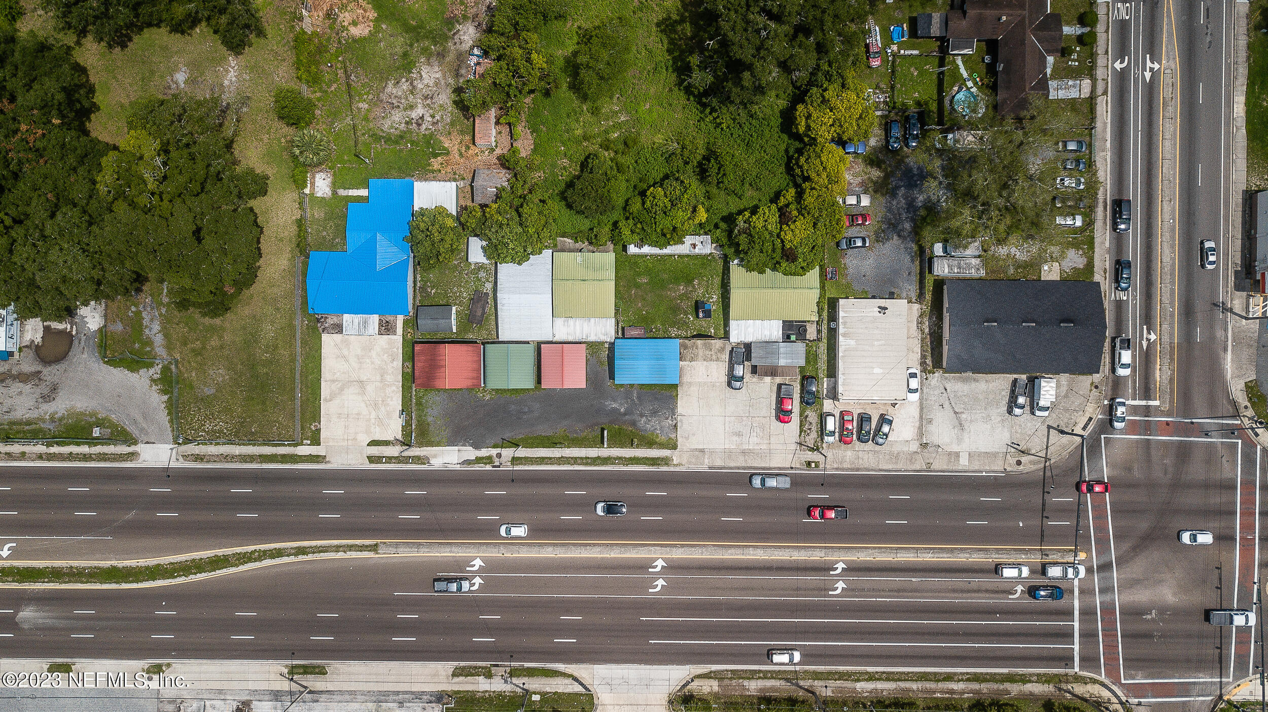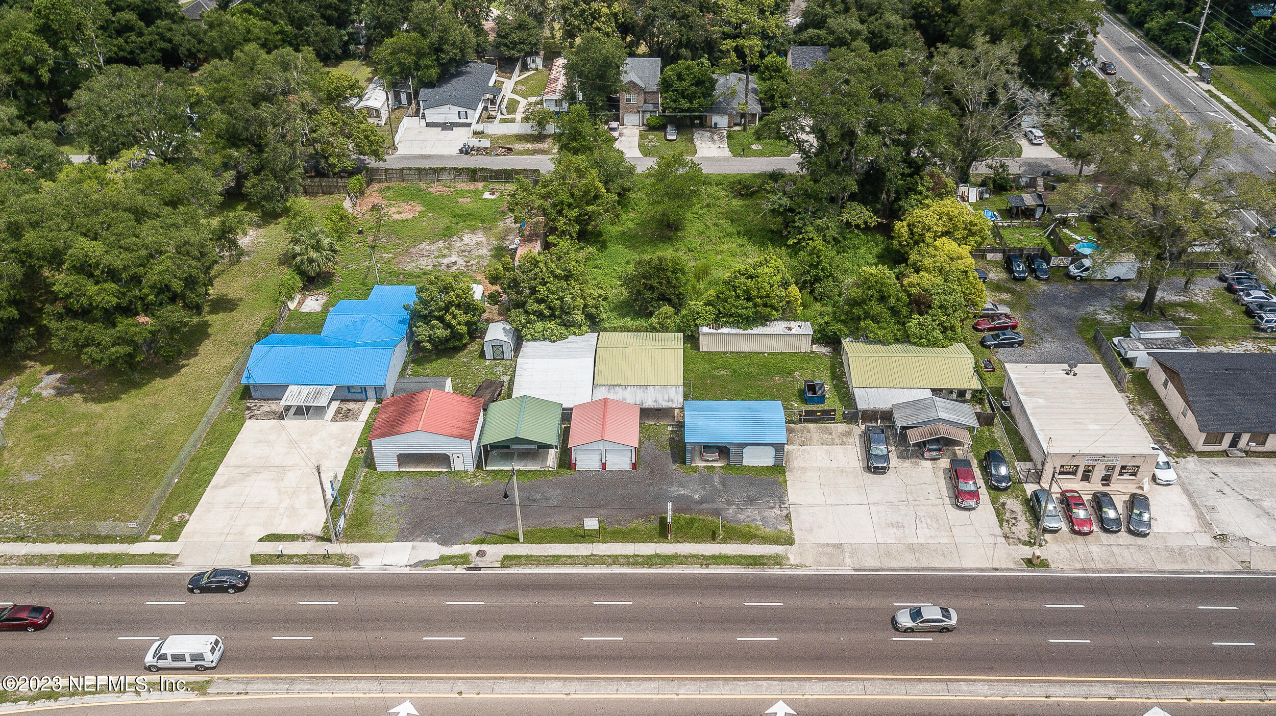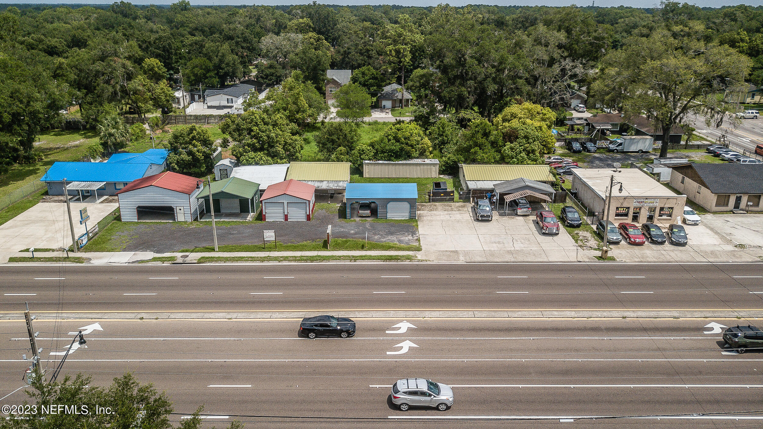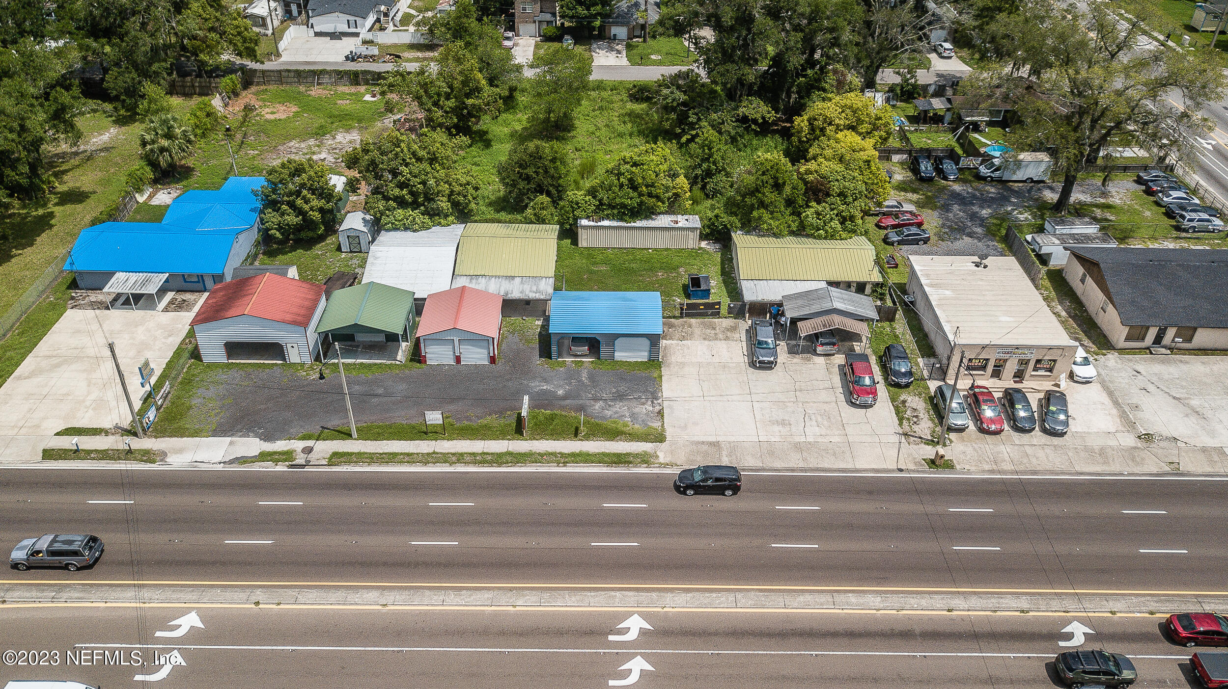 Commercial property with two buildings and high traffic frontage.
