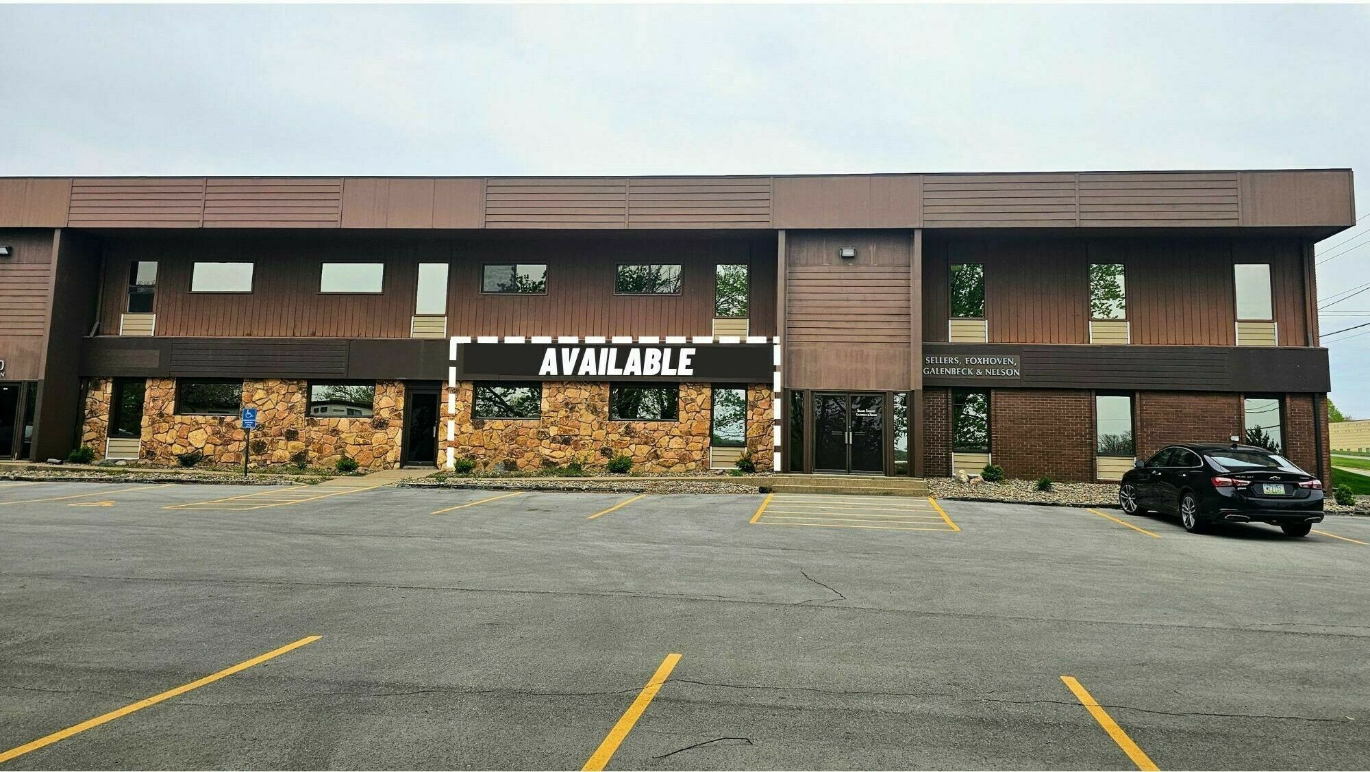 Office space for lease in Clive, Iowa, with ample parking.