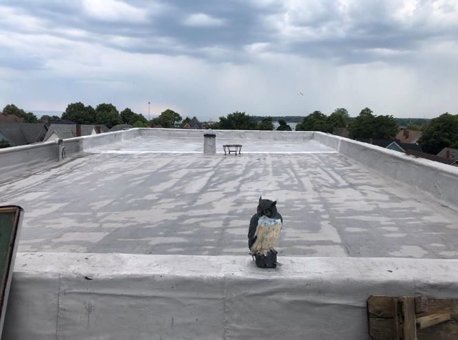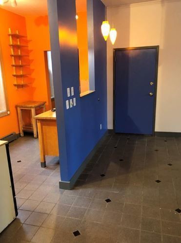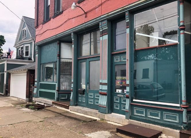 Three-story building with commercial and residential spaces near Peace Bridge.