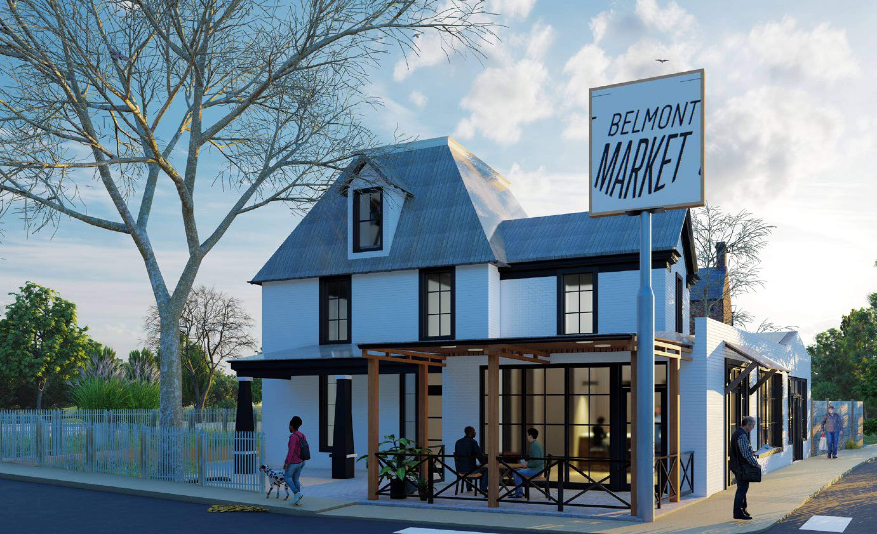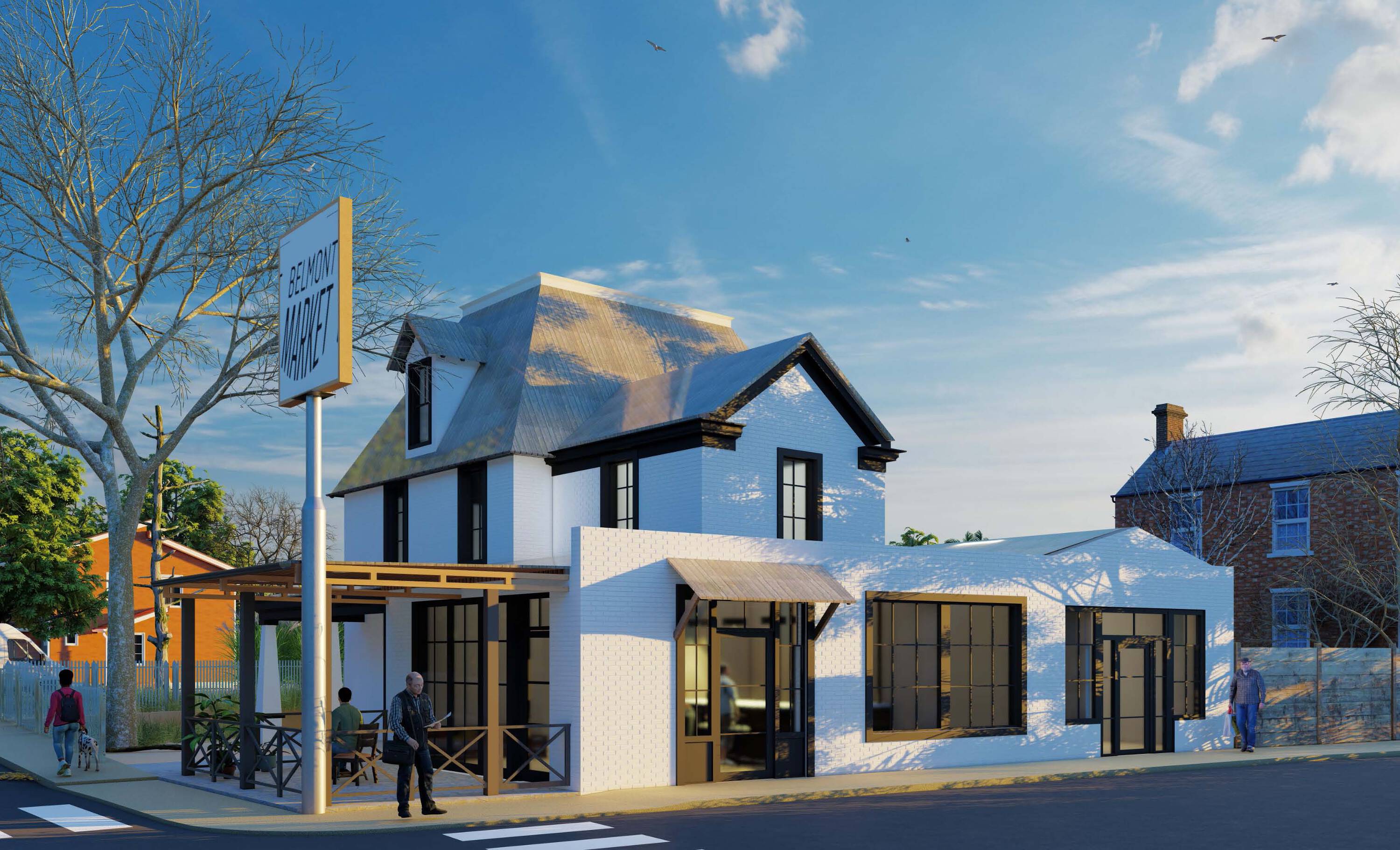 Iconic building in Belmont, envisioned as boutique hotel.