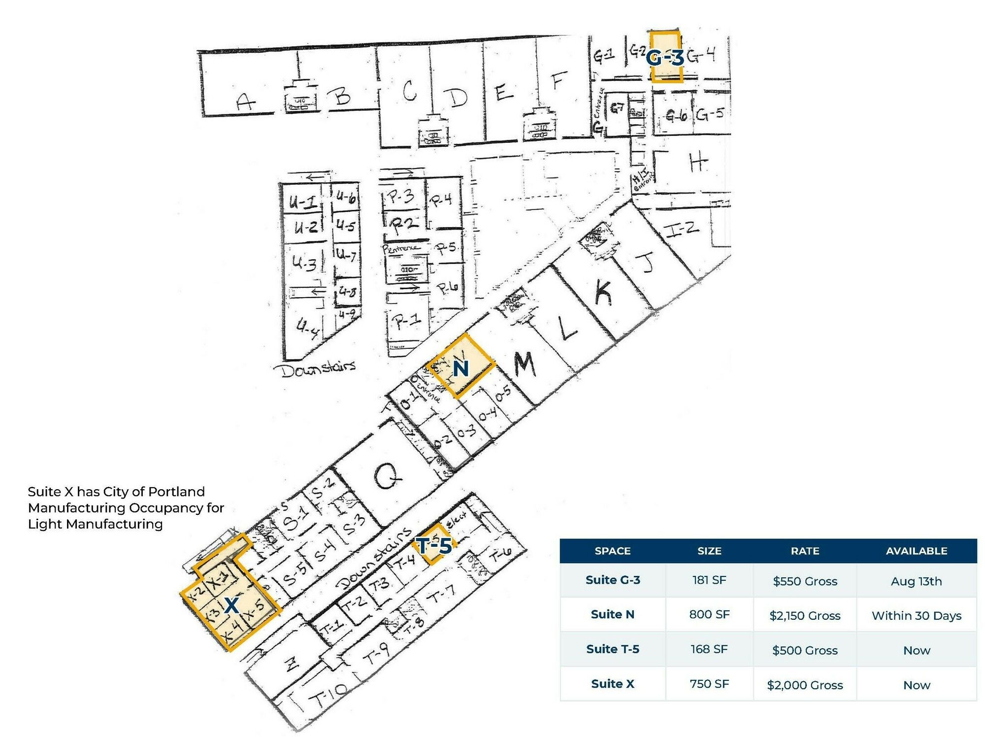 Office and light manufacturing space for lease with convenient access.