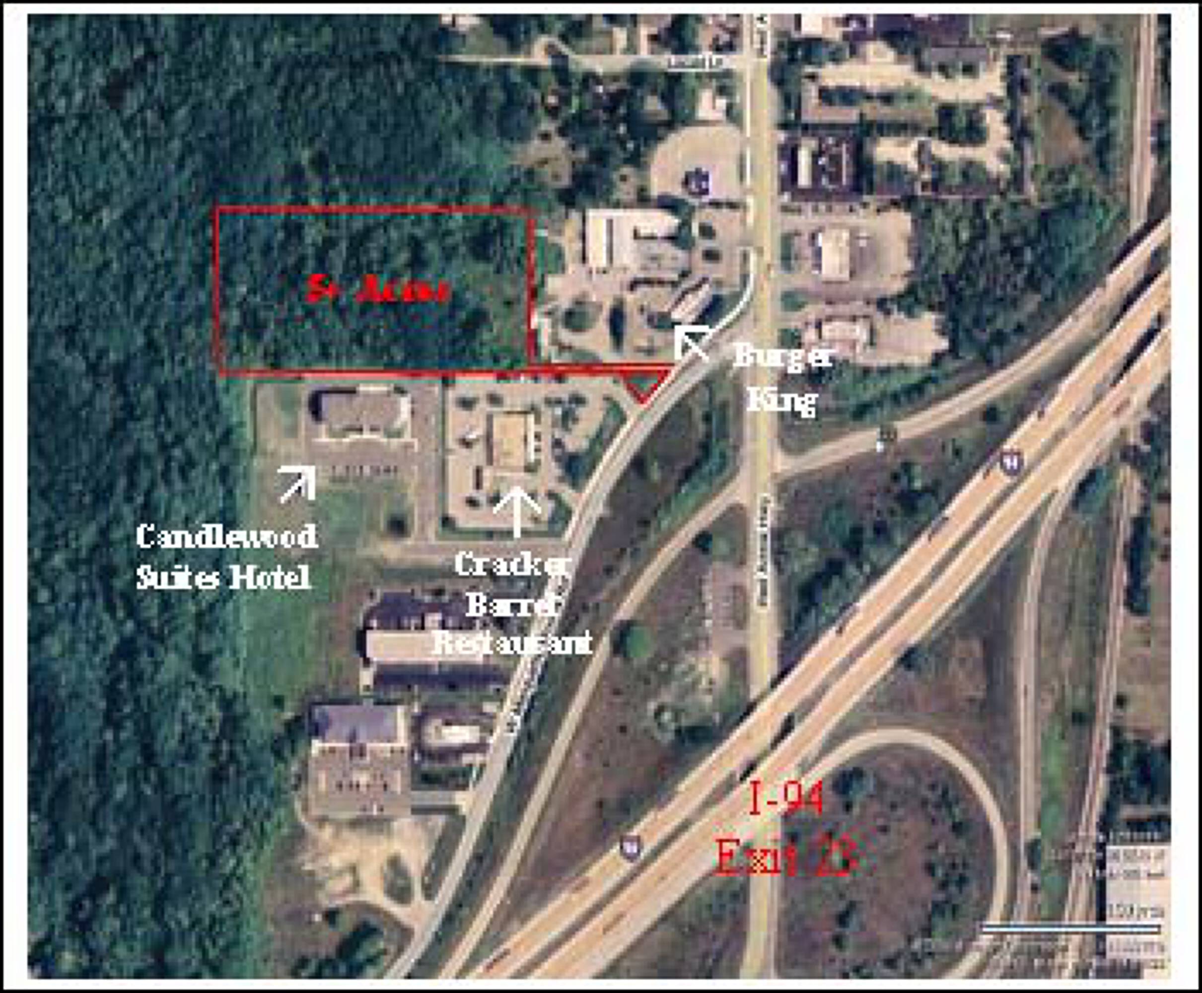 Five acre wooded parcel near Burger King and Candlewood Suites.