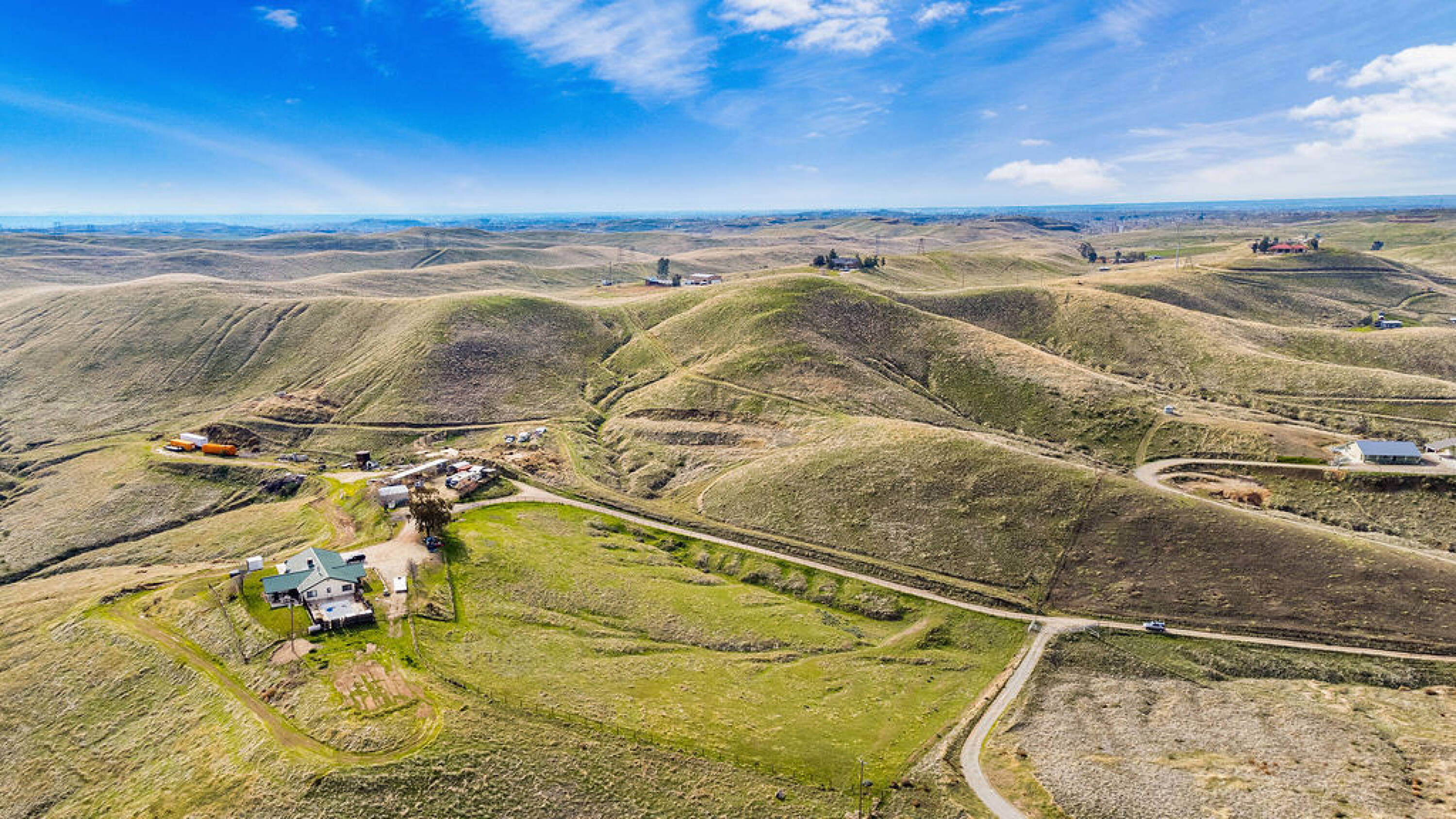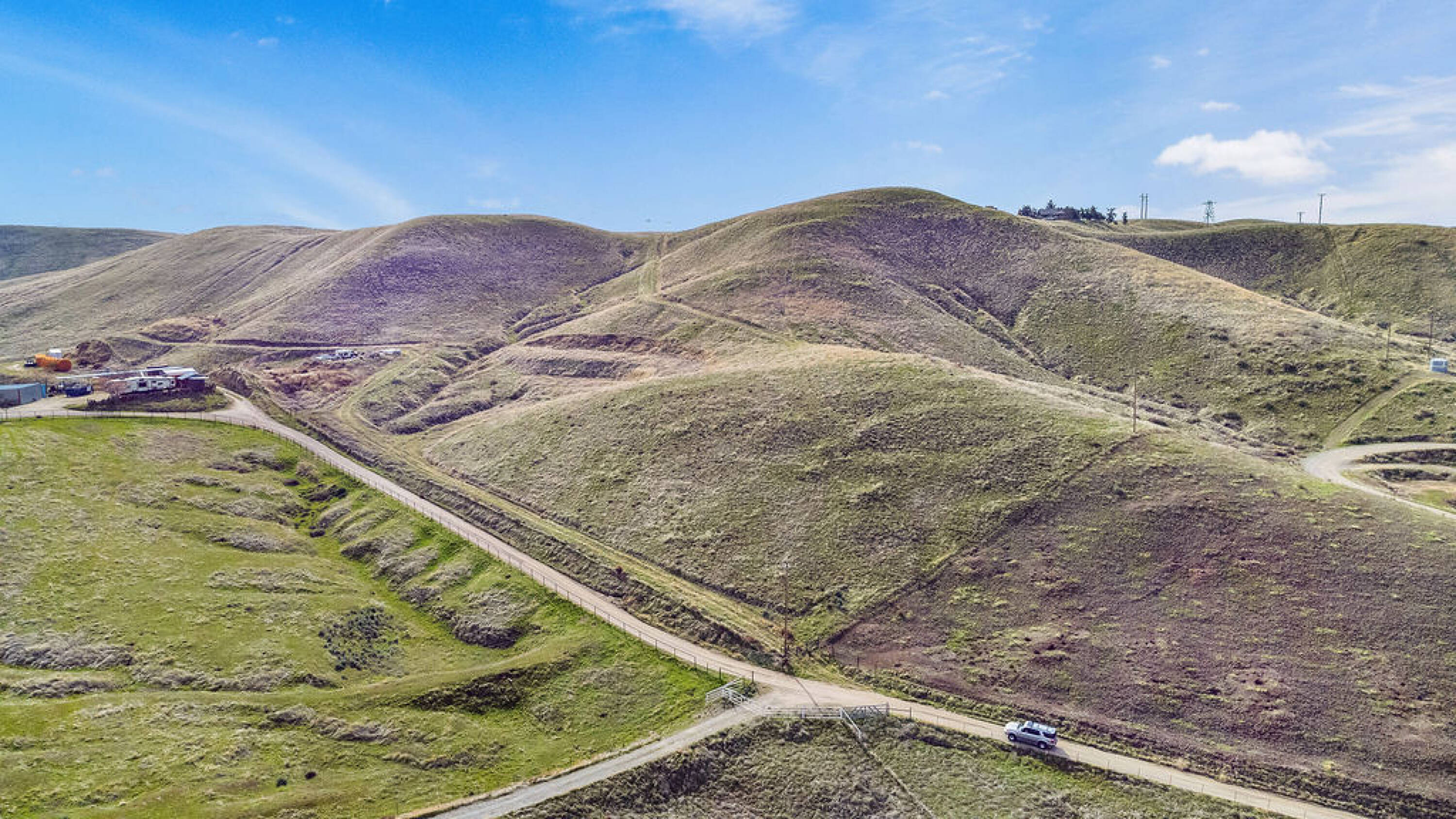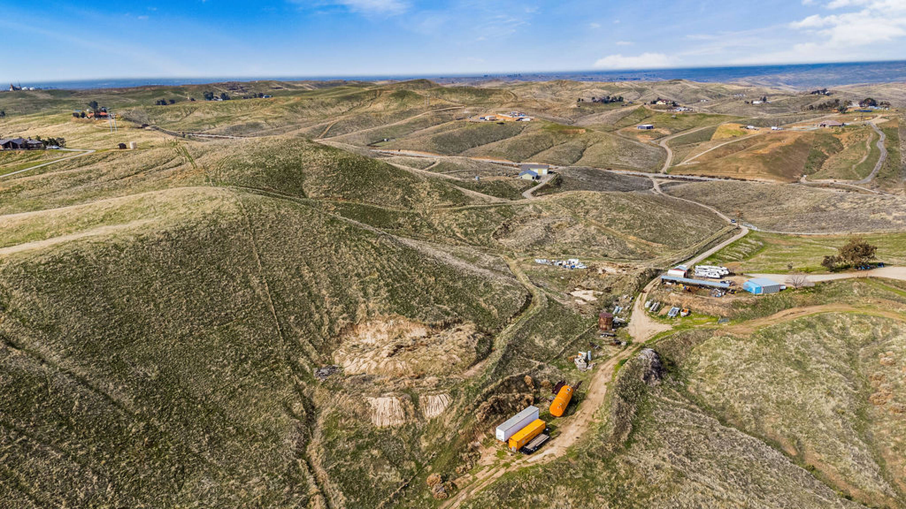 Land - Land featuring multiple building sites, roads, and fencing.