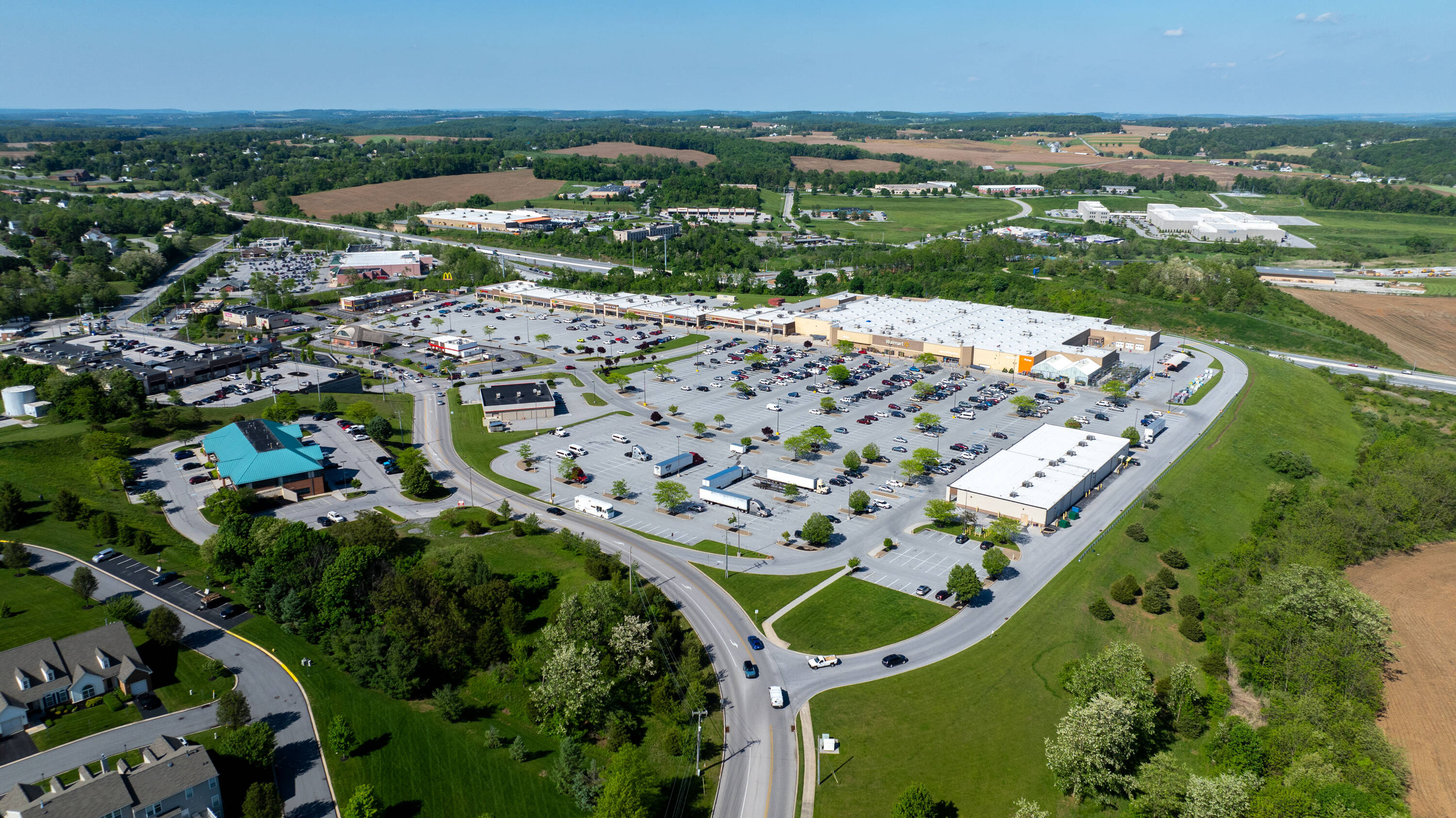 Retail shopping center anchored by Walmart Supercenter in Shrewsbury, Pennsylvania.