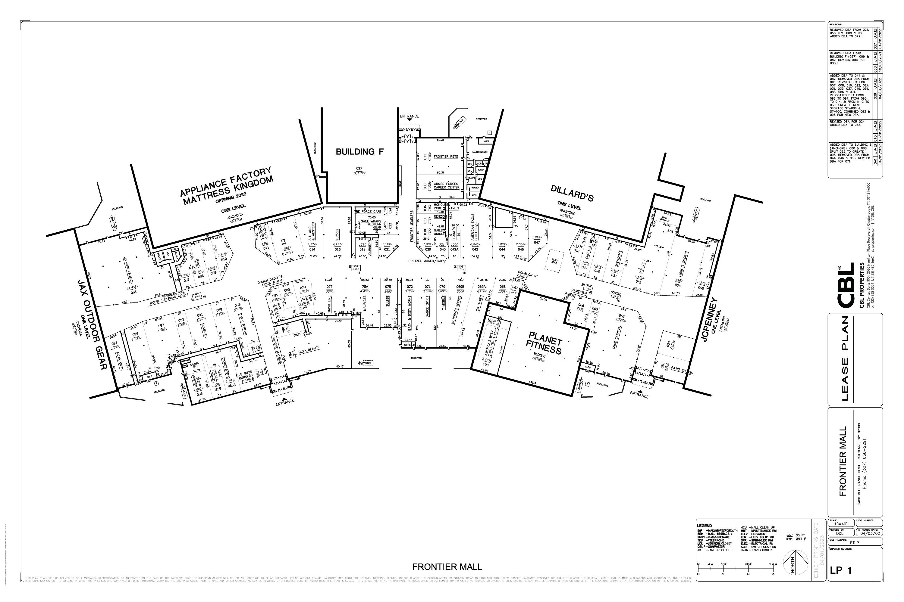 Retail and office spaces for lease in Frontier Mall.
