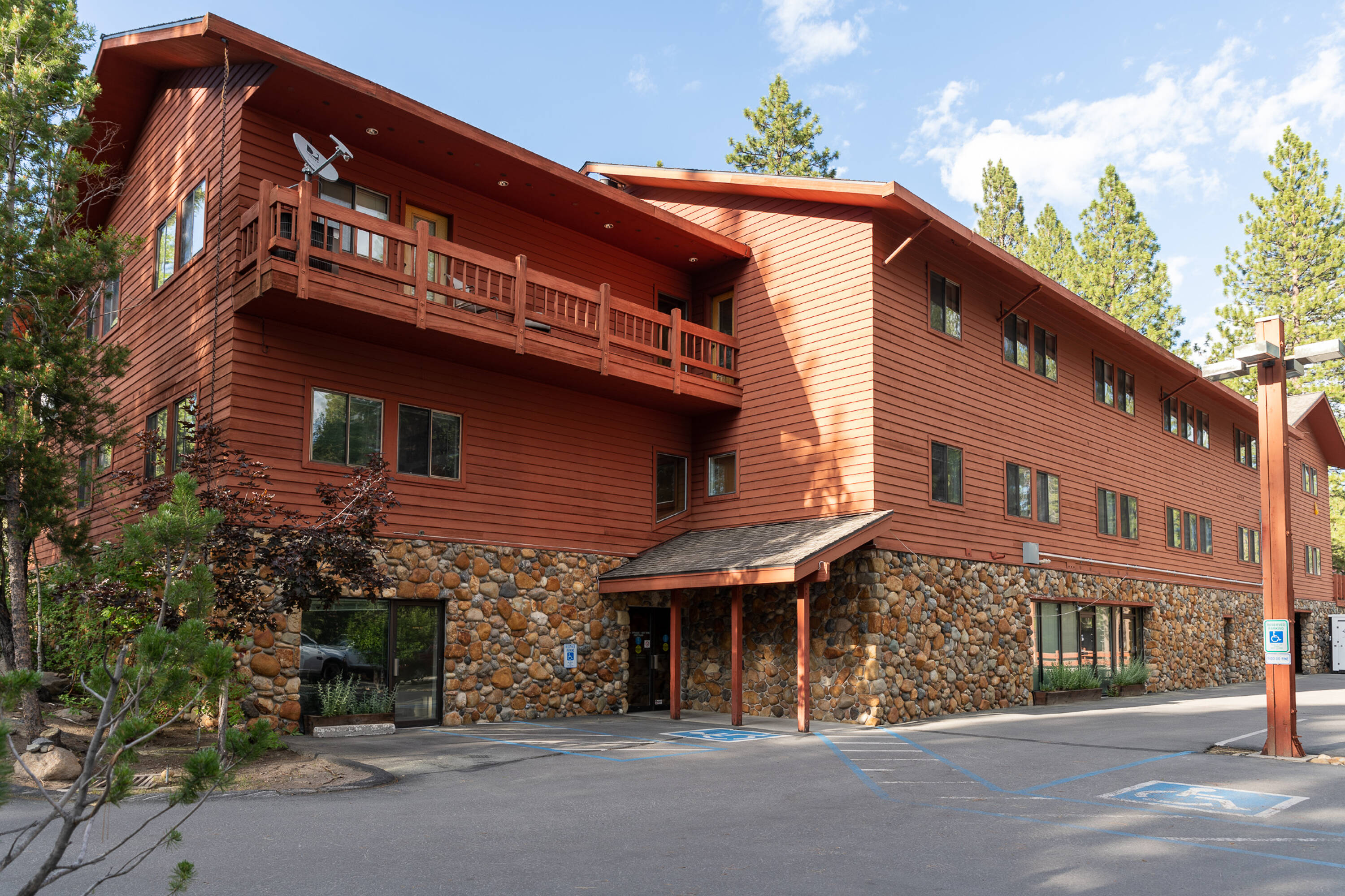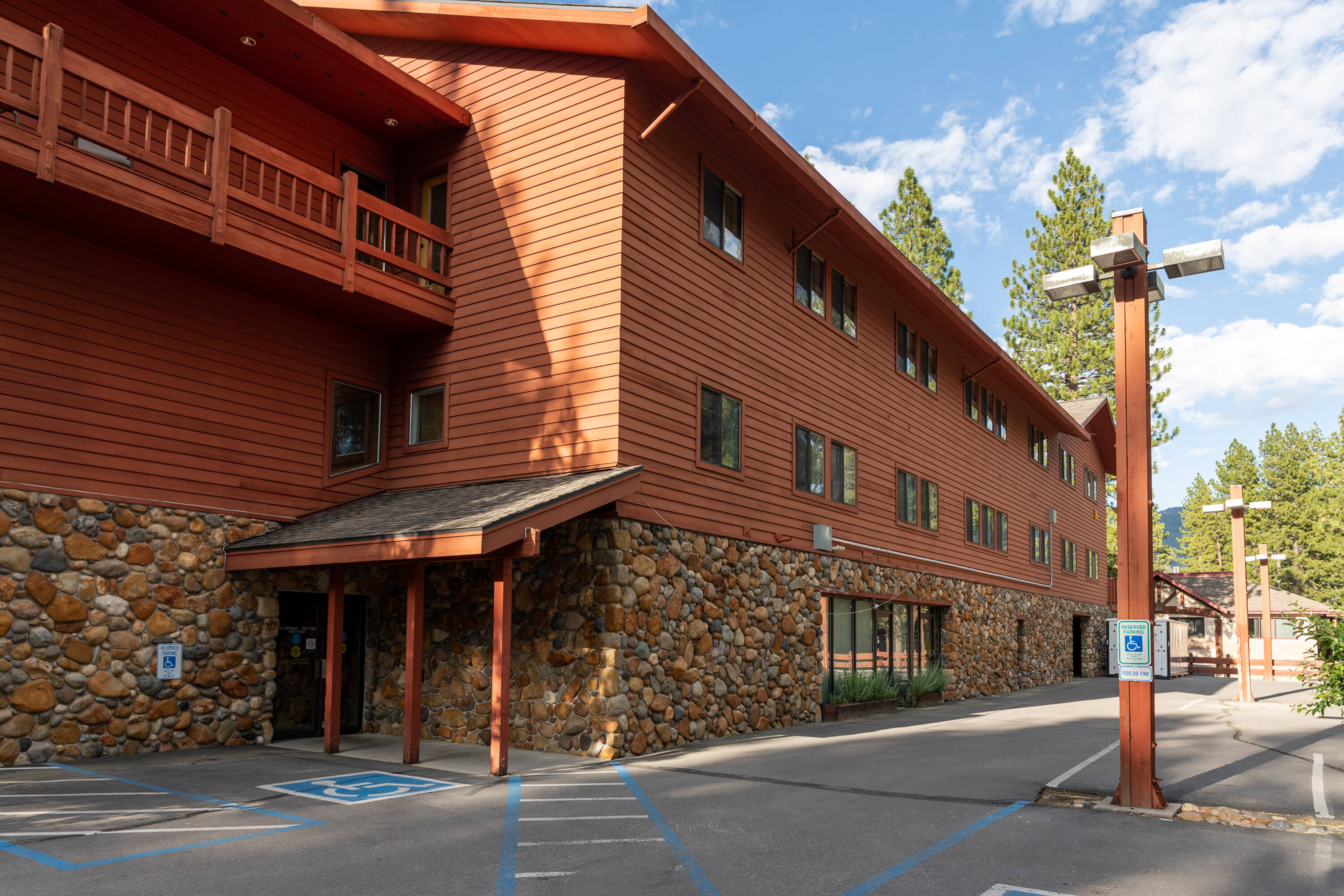 This commercial space in Incline Village, Lake Tahoe, offers an opportunity to secure a location across from Tahoe Forrest Hospital and within walking distance of restaurants. The building features two elevators for accessibility. Parking is available in a private lot and a parking garage. The lease is a Gross Modified lease, where the tenant pays base rent and a proportional share of property-related expenses and unit-specific utilities. The Common Area Maintenance (CAM) fee for 2023 is $0.27/sq ft per month. This fee includes water, sewer, garbage, common area janitorial services, gas, electric, WiFi in executive suites, and snow removal.