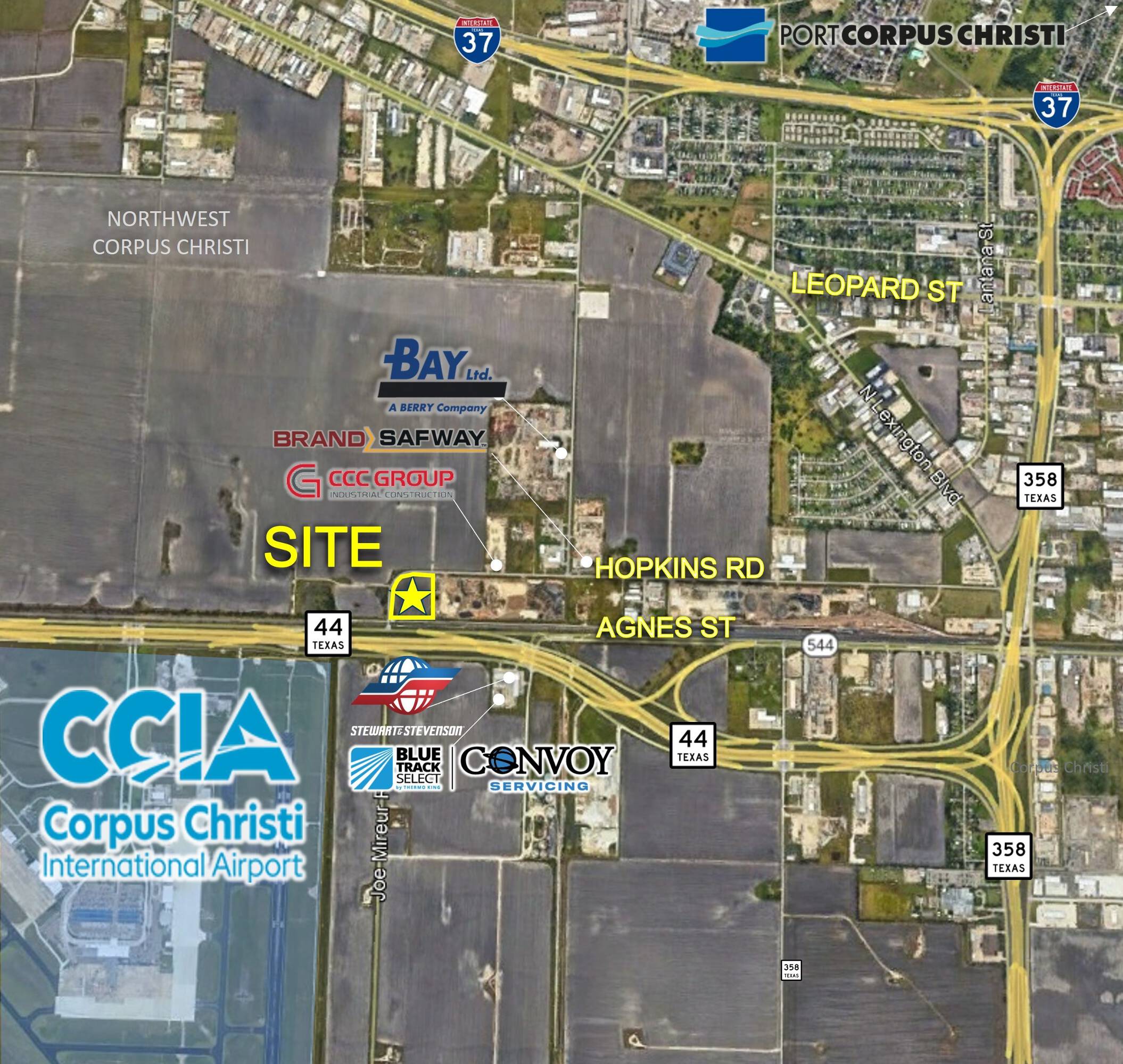 This property features approximately 6.743 acres of vacant, unplatted land situated on a corner lot. The site benefits from high visibility from State Highway 44 and offers approximately 900 feet of curved road frontage on Hopkins Road. Zoned IH – Heavy Industrial, the property presents a development opportunity with quick access to Corpus Christi International Airport.