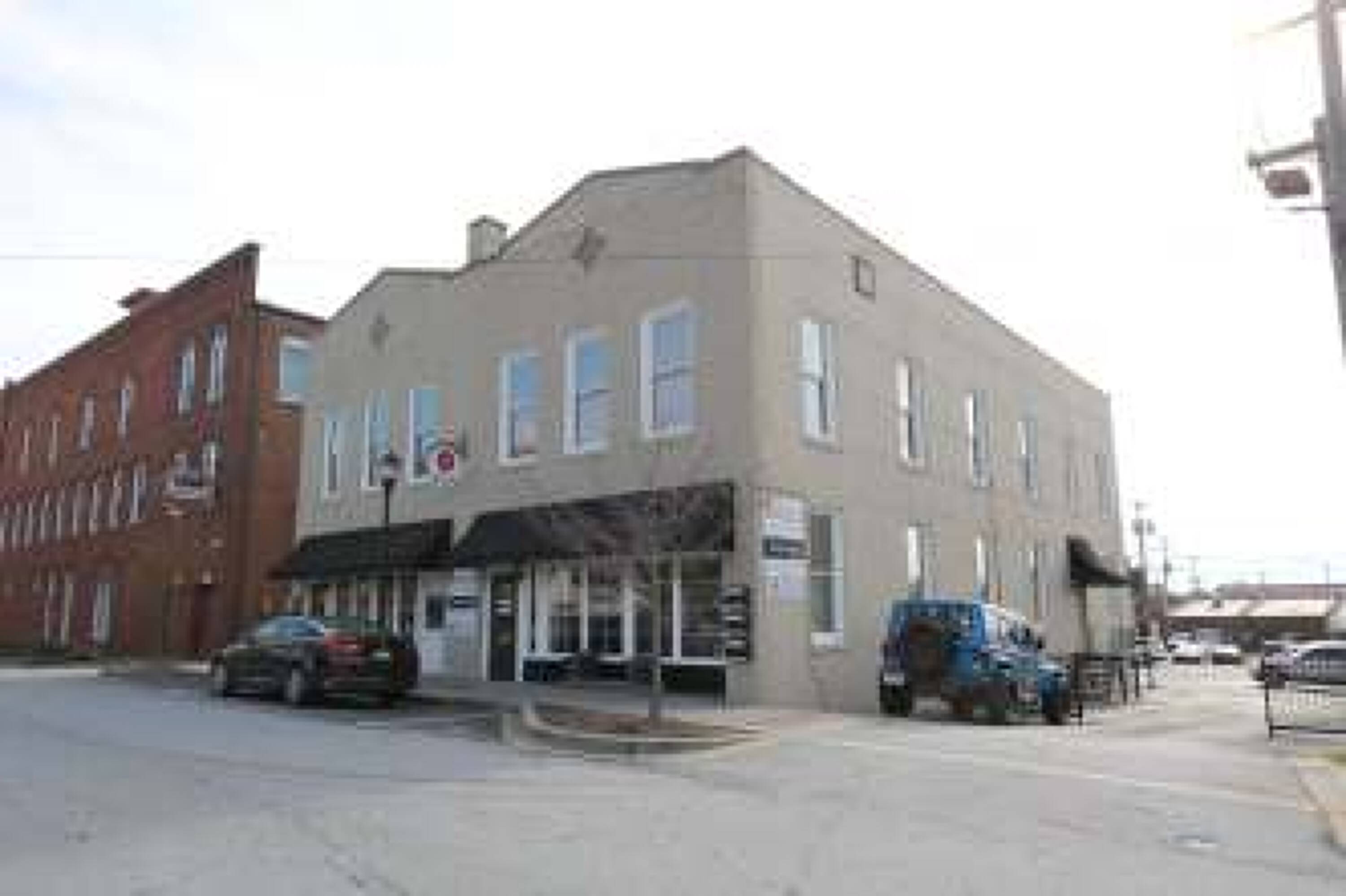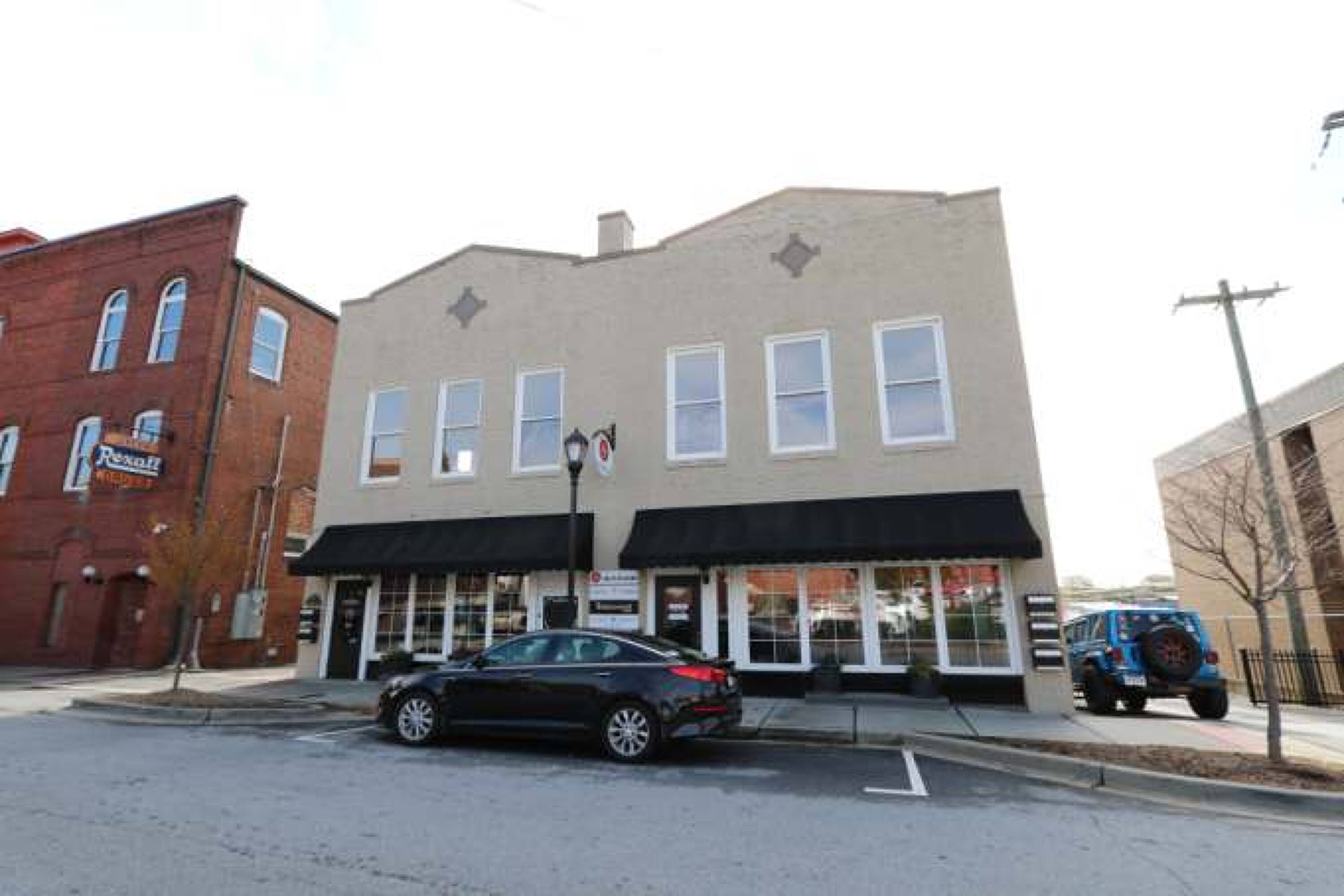 Two-story brick building in downtown Greer with retail and office.