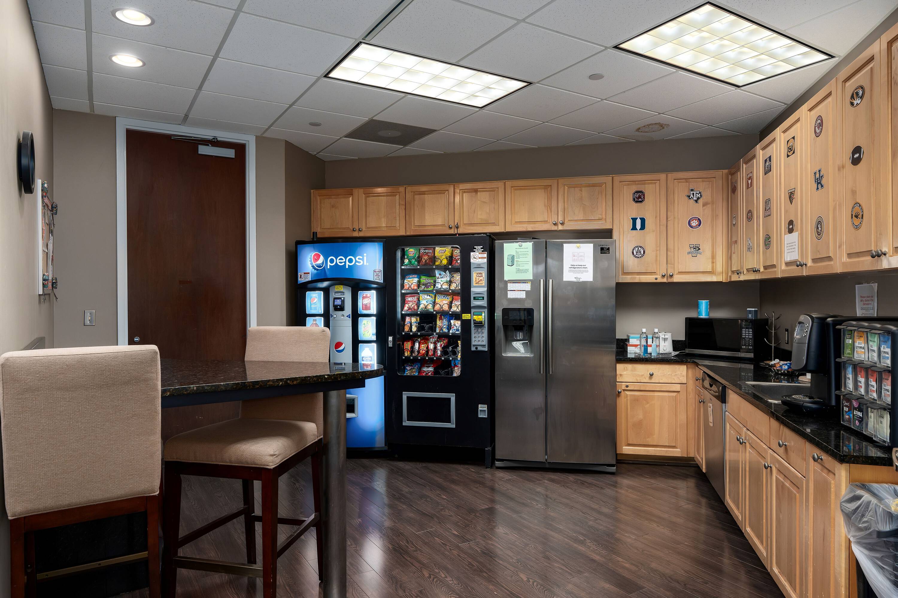 Efficient layout with a mixture of office and open workspace with break room