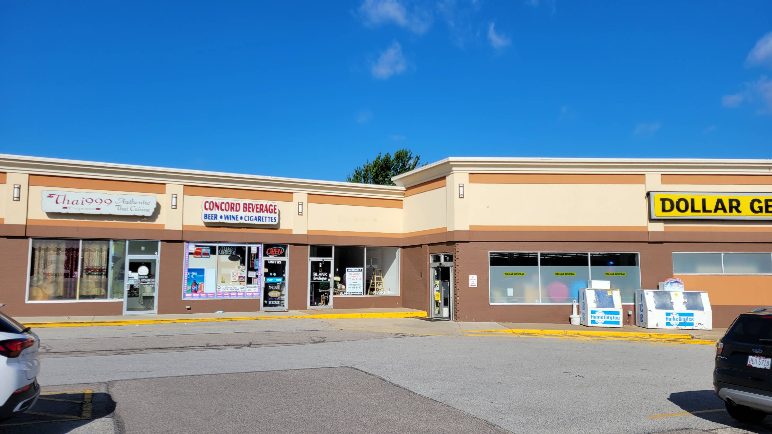 Retail and office spaces available for rent.