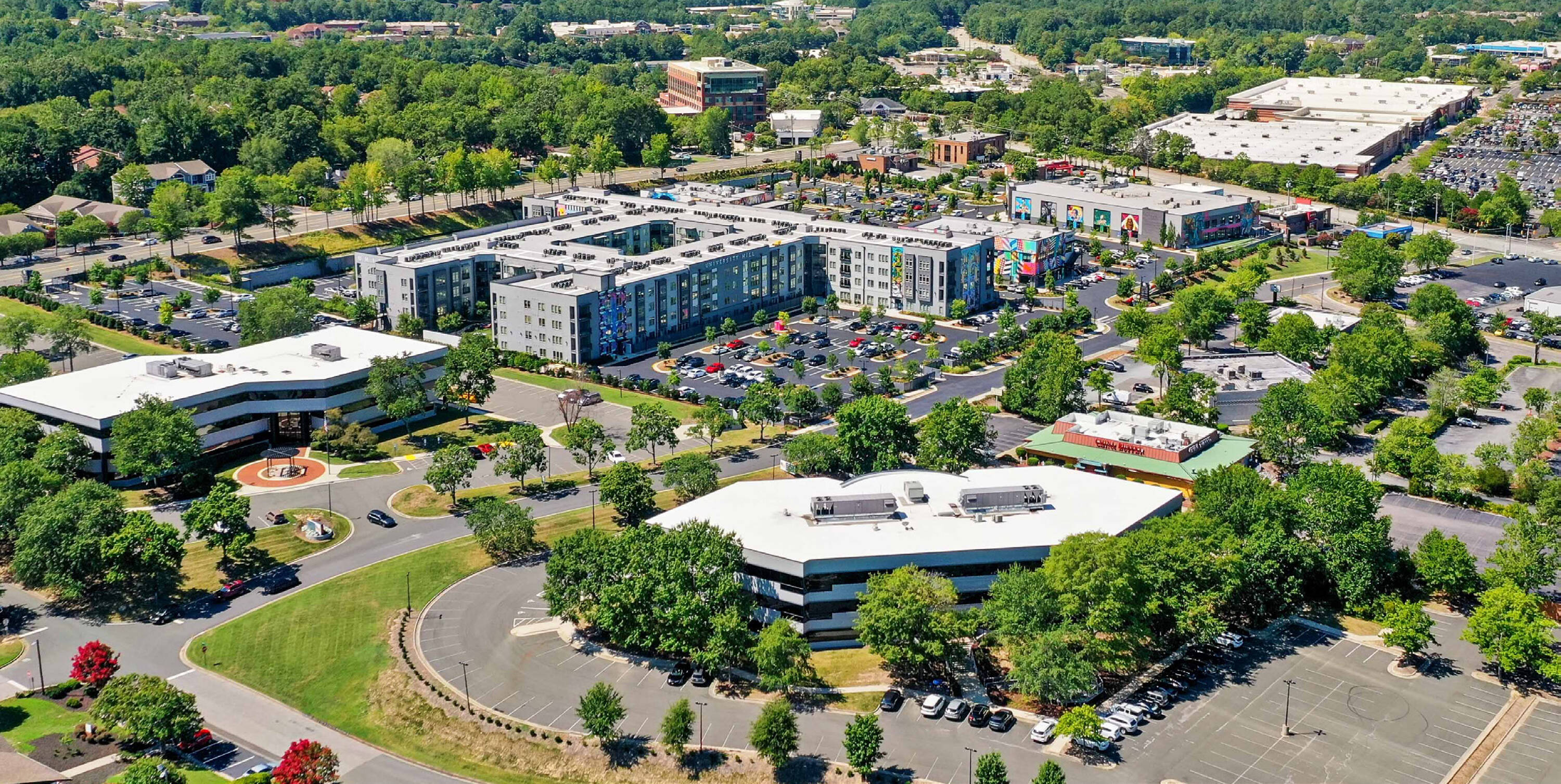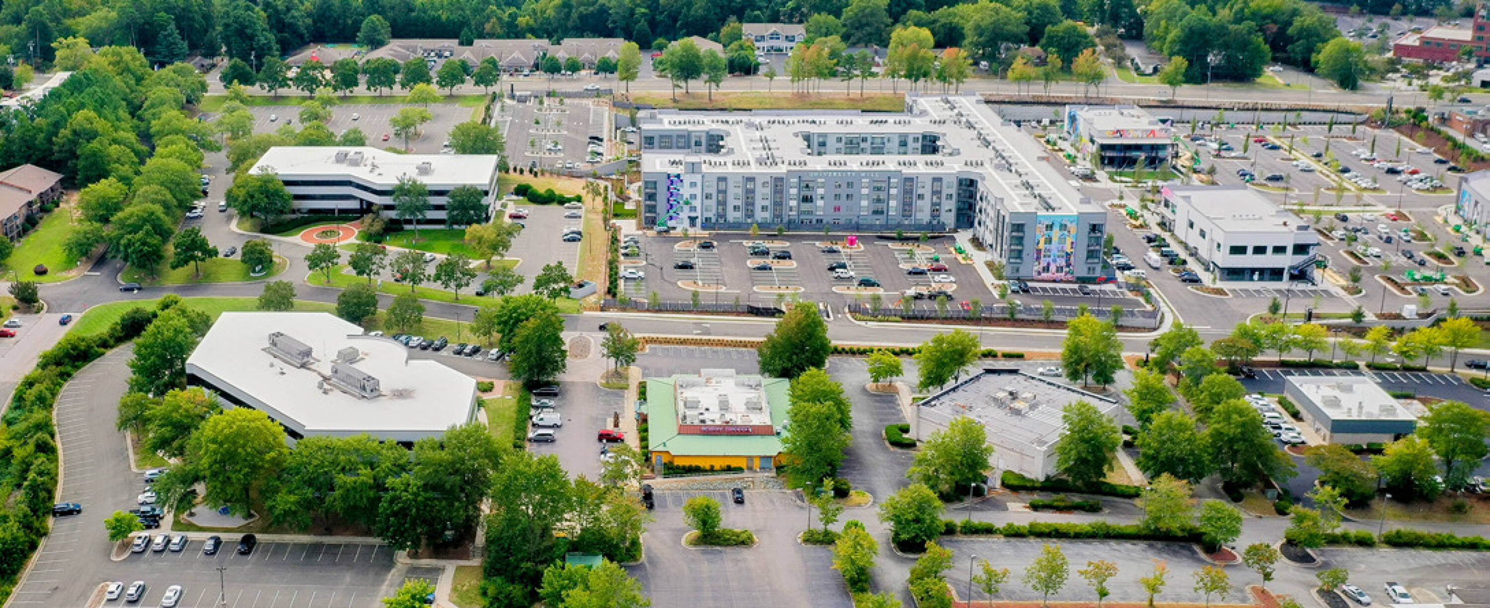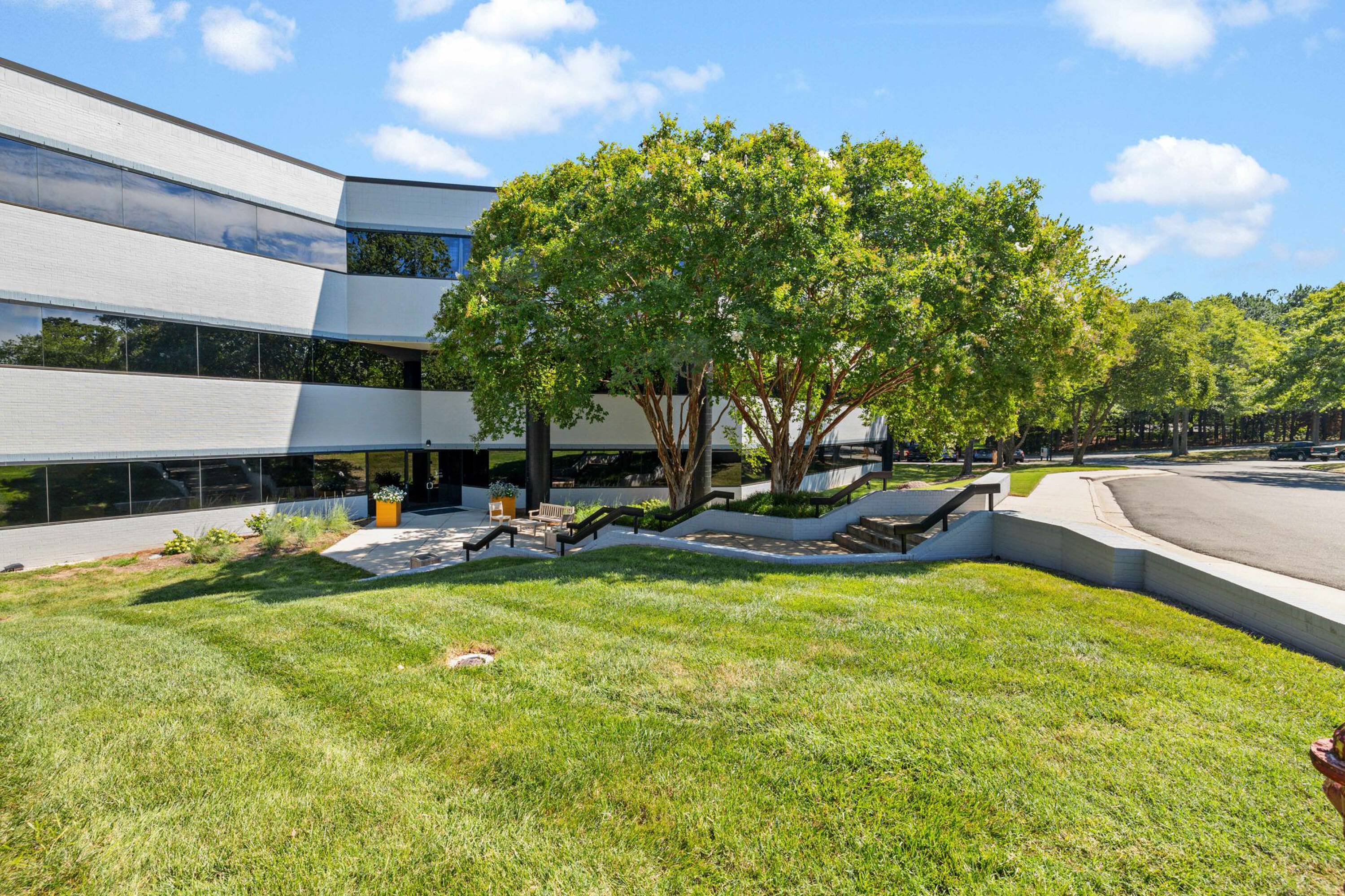 This 58,249 square foot, three-story office building is located in Durham, North Carolina, steps away from the new University Hill mixed-use development. The location offers walkability to O2 Fitness and a variety of retail and restaurant options. Significant renovations are underway, including a recently completed exterior refresh, the addition of two move-in-ready pre-built suites, and a first-floor Tenant Hub. More common area amenities are planned for the near future.