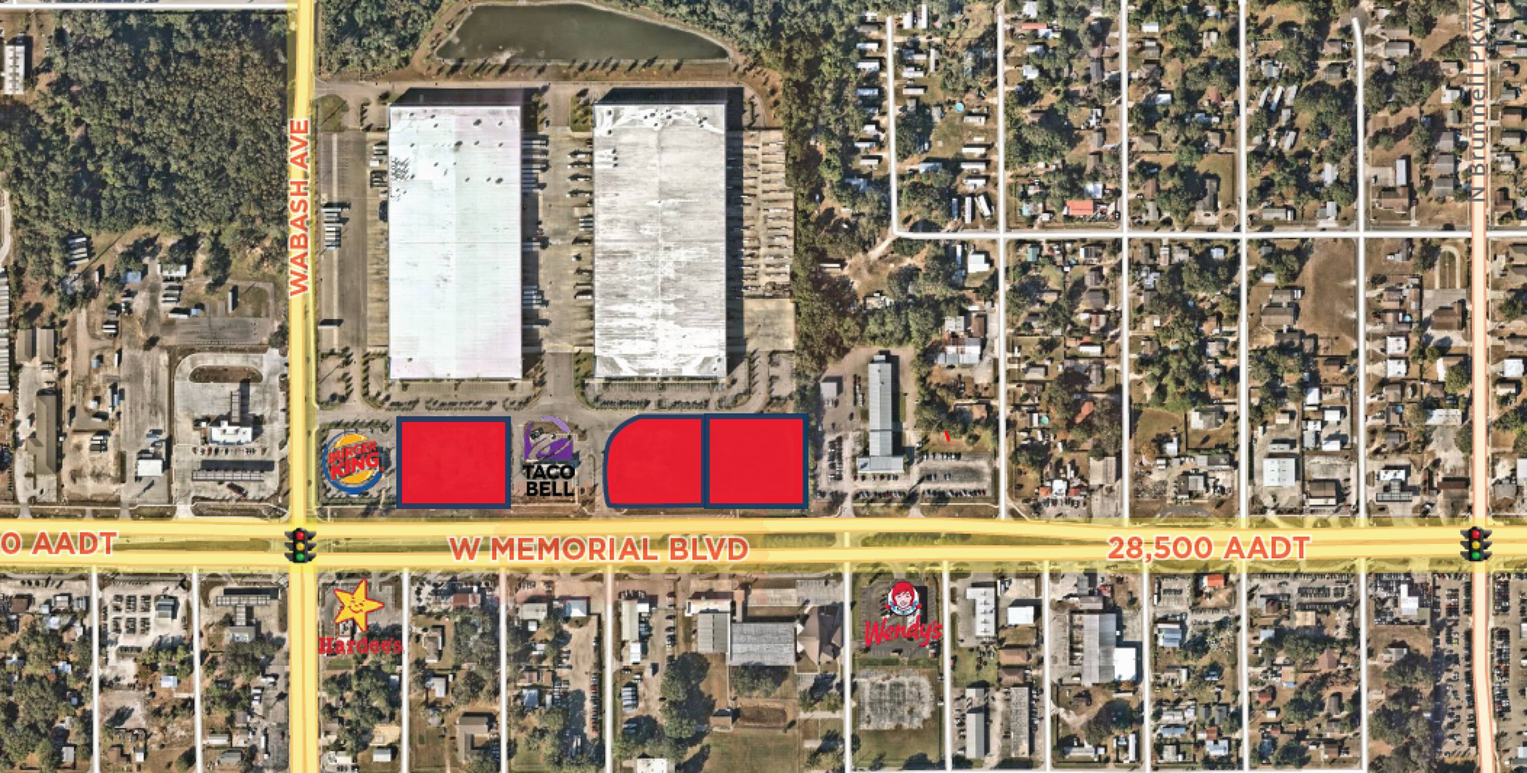 Three individual lots available for retail development in Lakeland, Florida.