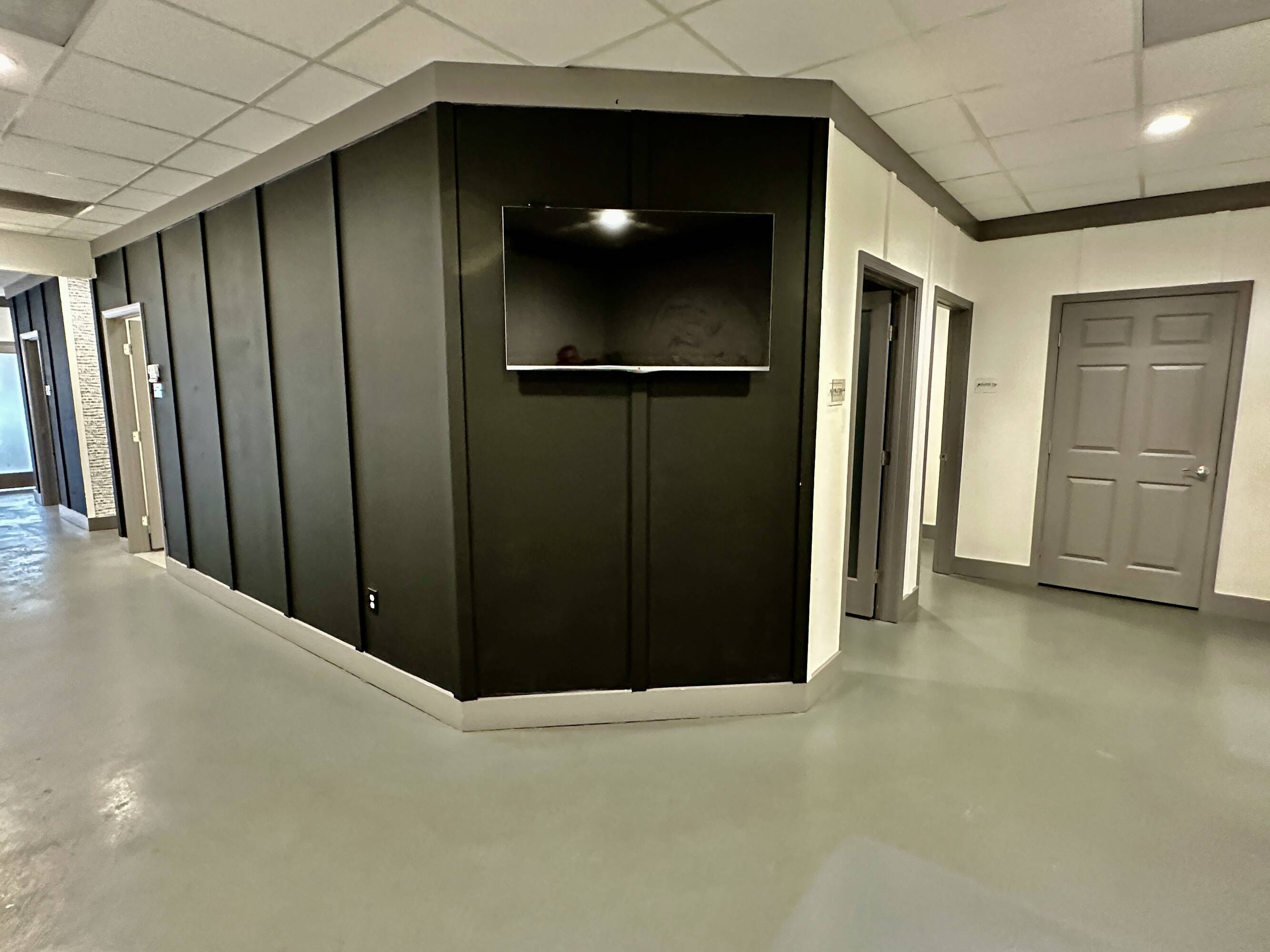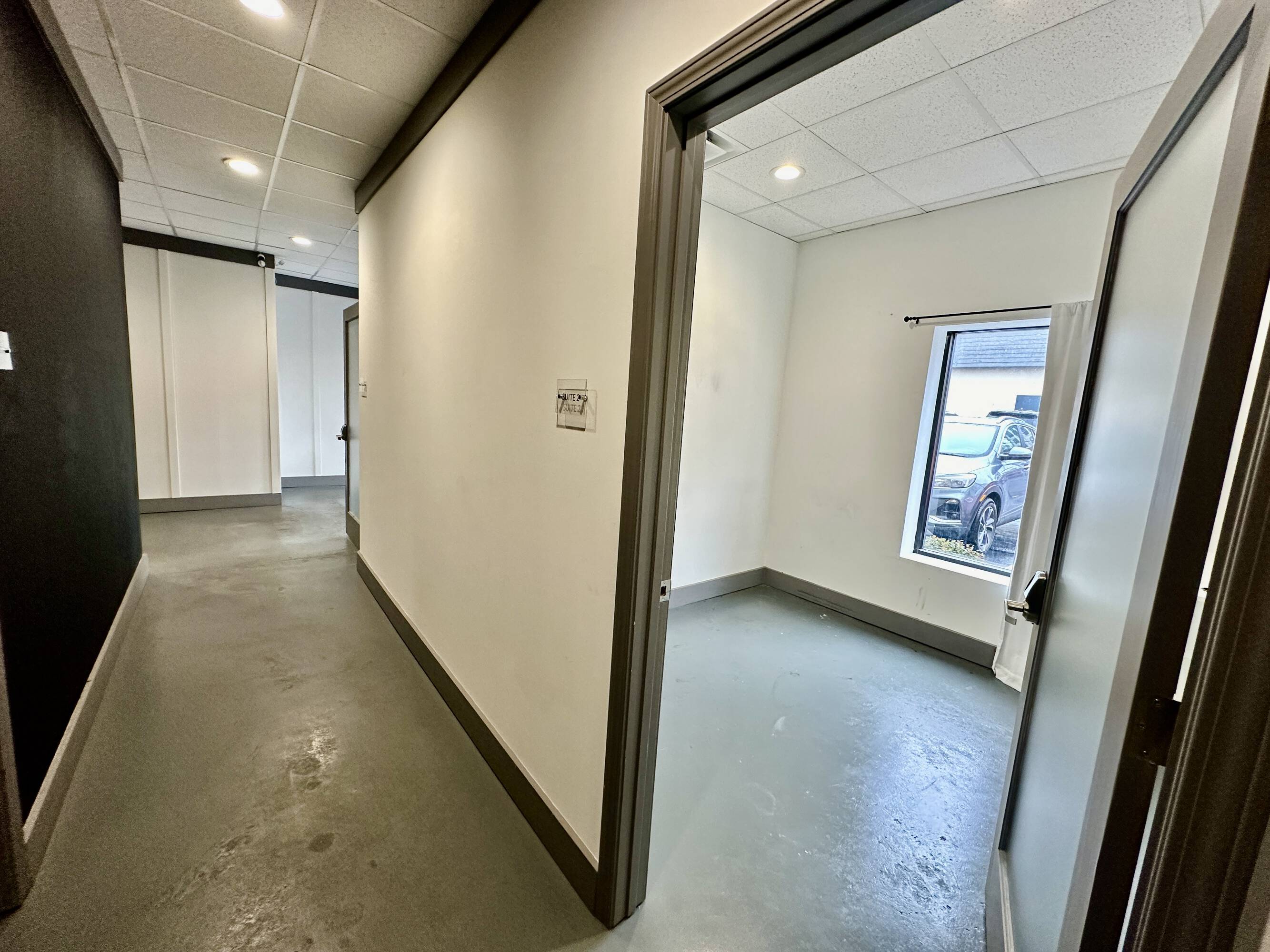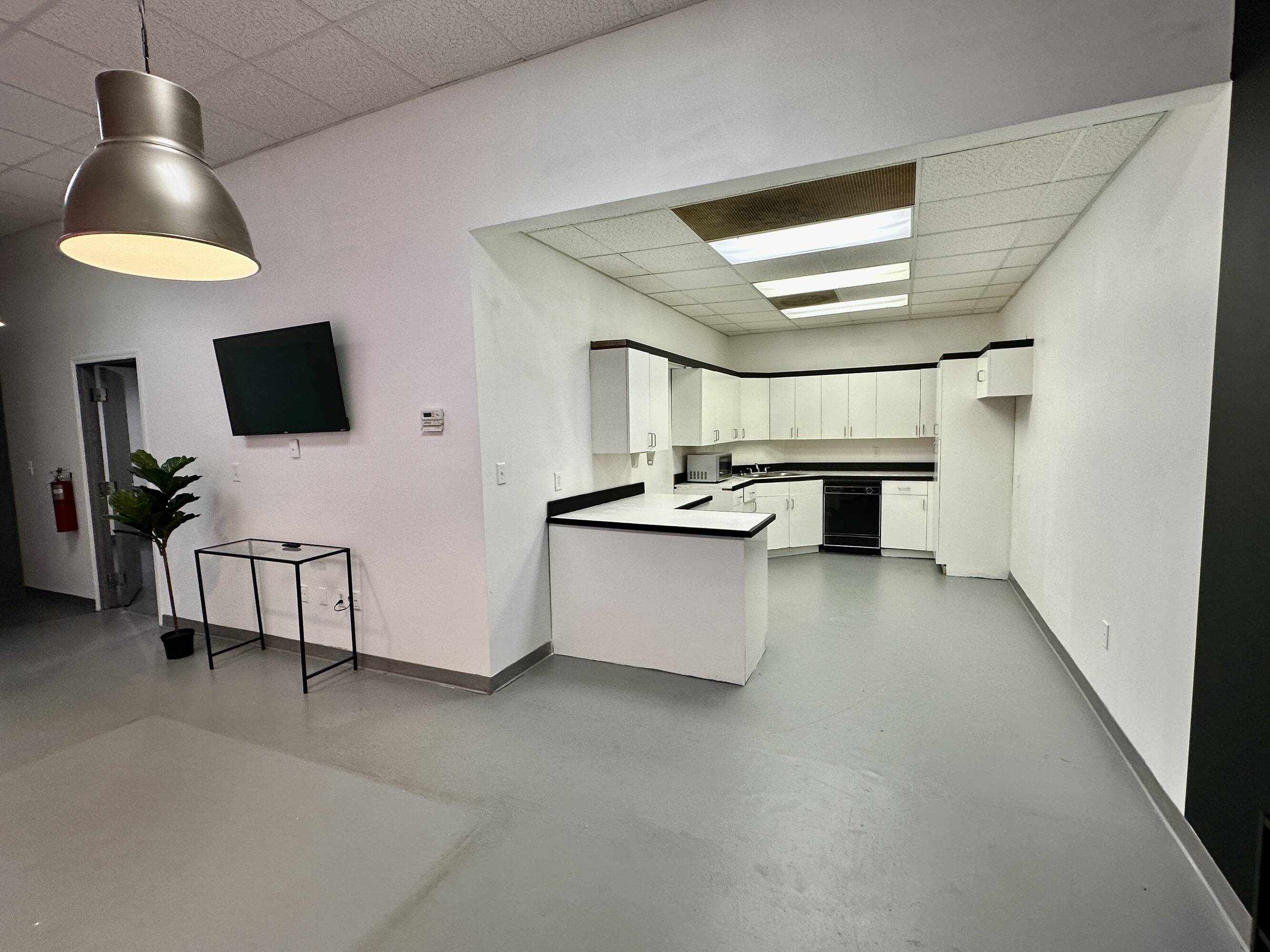 Loft office with private offices, kitchen, lounge, and parking.