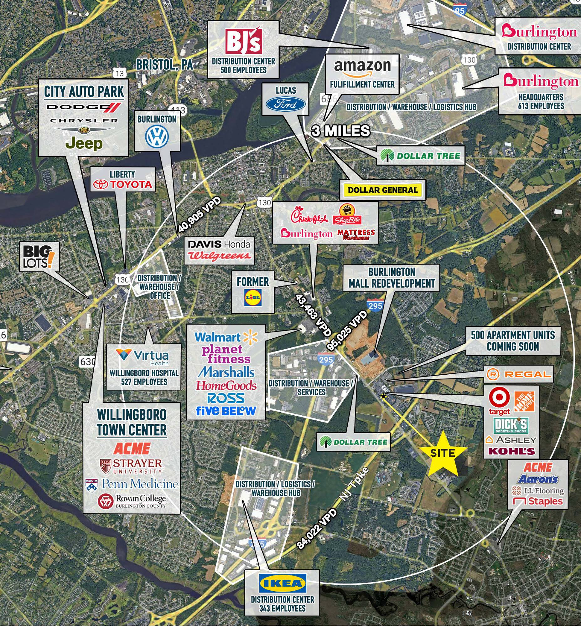 Commercial land available for ground lease in Burlington Township.