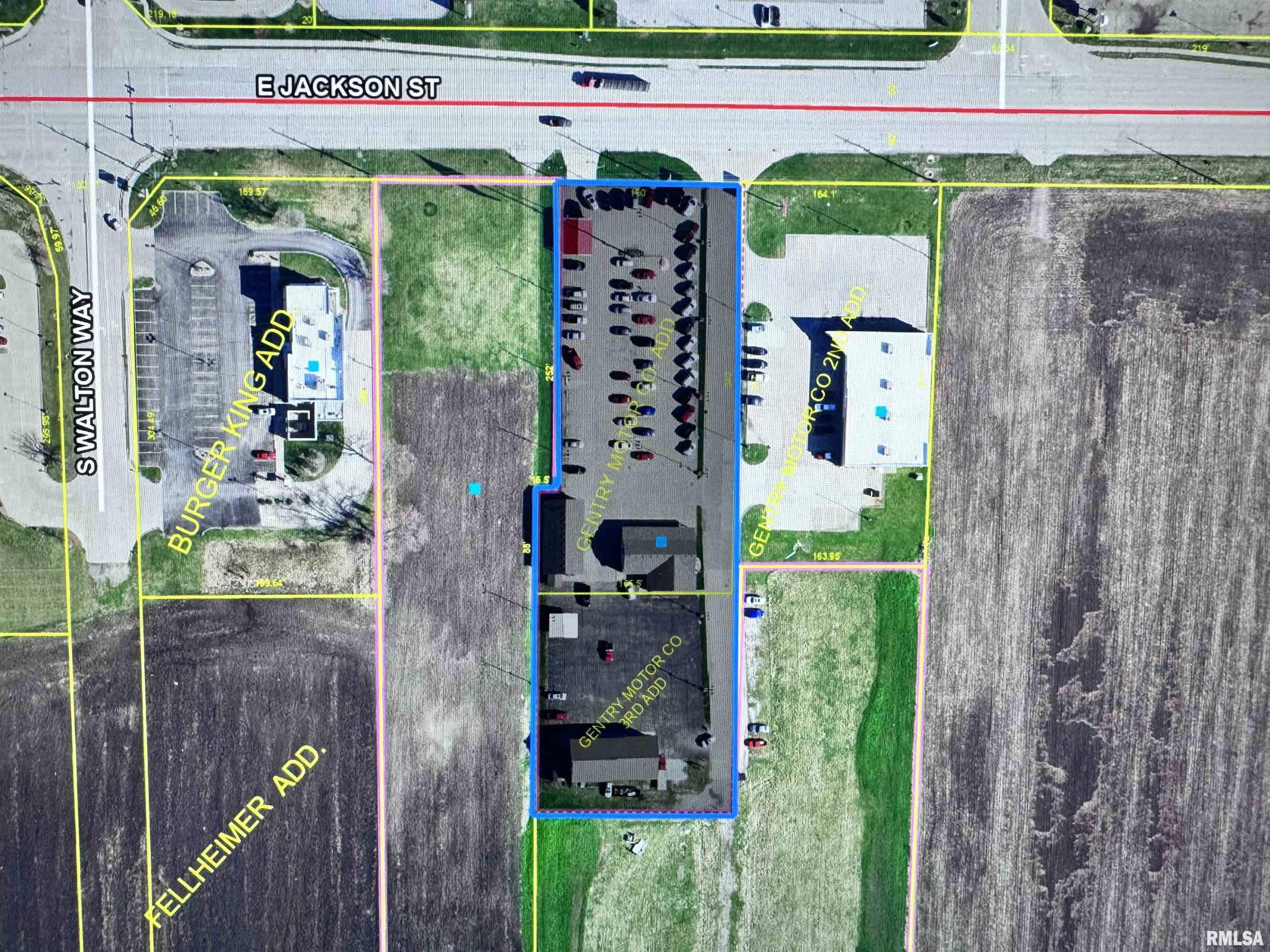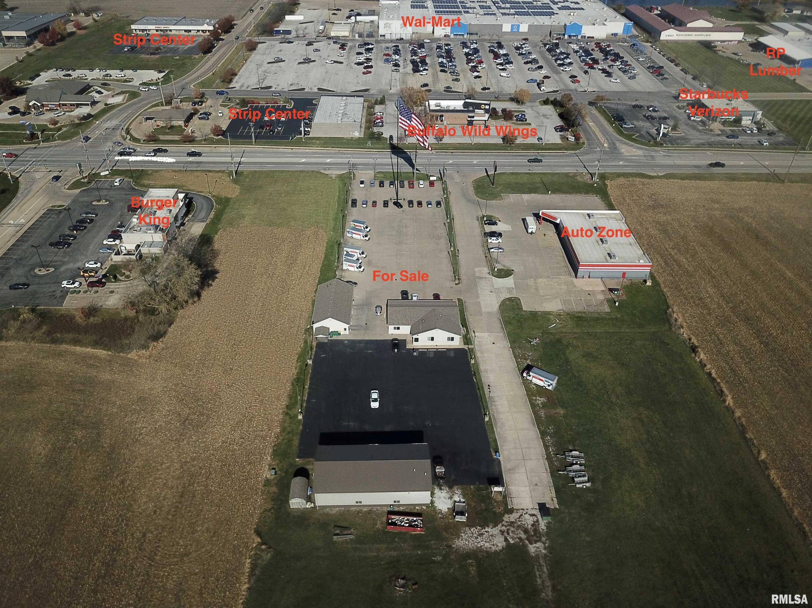 Located across from Walmart and other major retail stores in East Jackson, Macomb, Illinois, this commercial property offers significant business potential. The property, formerly a car dealership, features 124 feet of frontage along HWY 136/67 and spans 1.96 acres. It includes three buildings, one of which is a 2,280 sq ft office/retail building constructed in 1995. This building contains four office spaces, a showroom, two half baths, and a break room. An additional 1,800 sq ft building has been used as a detail shop, featuring three 8x10 overhead doors, a 49x29 shop area, an office, a half bath, and 10-foot ceilings. At the rear of the lot is a 2,592 sq ft Morton-type building with four overhead doors (one 12x14 and three 12x12), a 61x34 shop area, an office area, a half bath, and a loft area for storage. The front of the property includes a 257x115 concrete parking lot, with a blacktop parking lot at the back. Additional acreage of 3.35 acres located behind this property is also available for sale. The total property size is 6,672 sq ft.