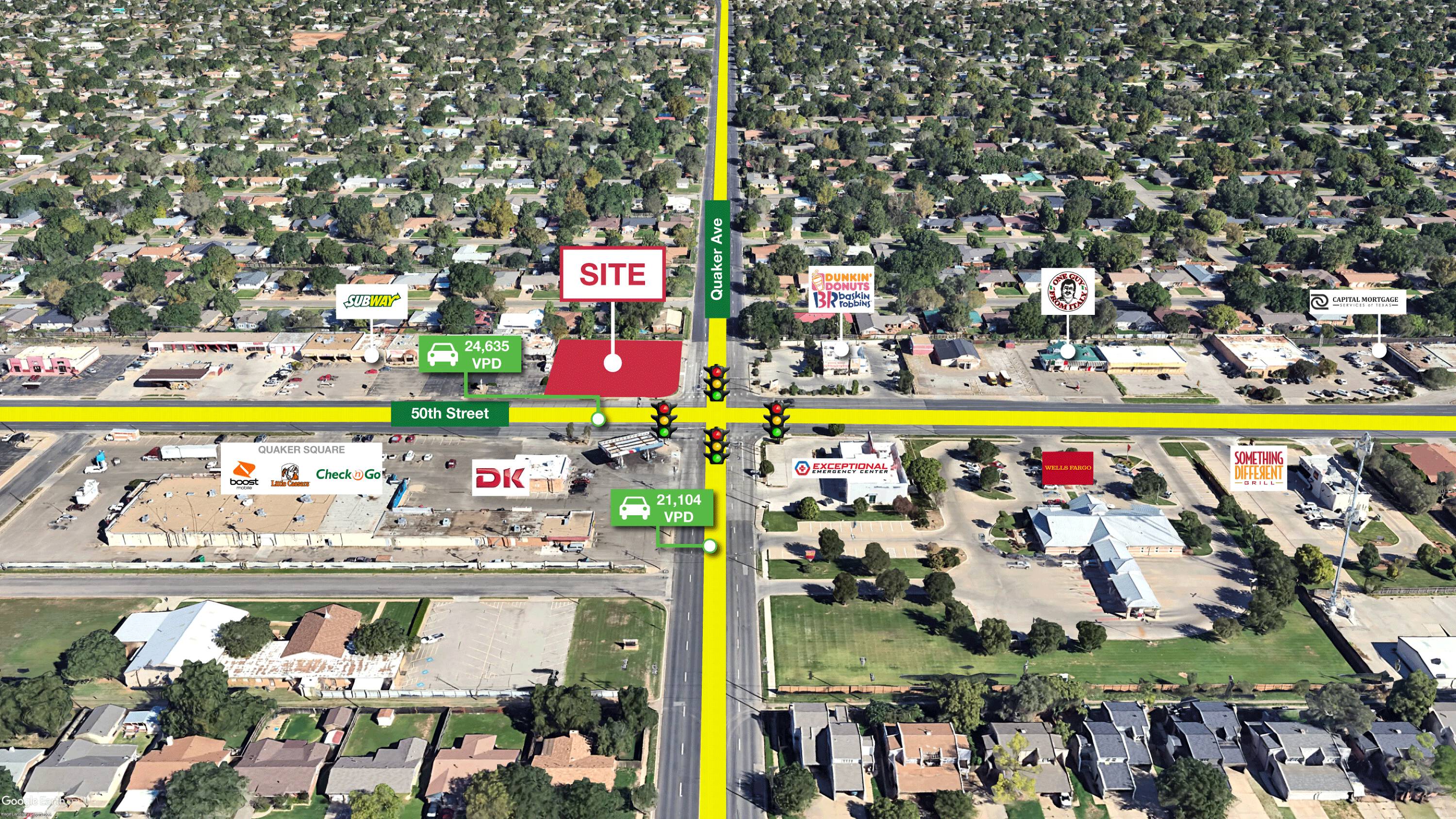 Retail pad site at a lighted intersection in Lubbock.