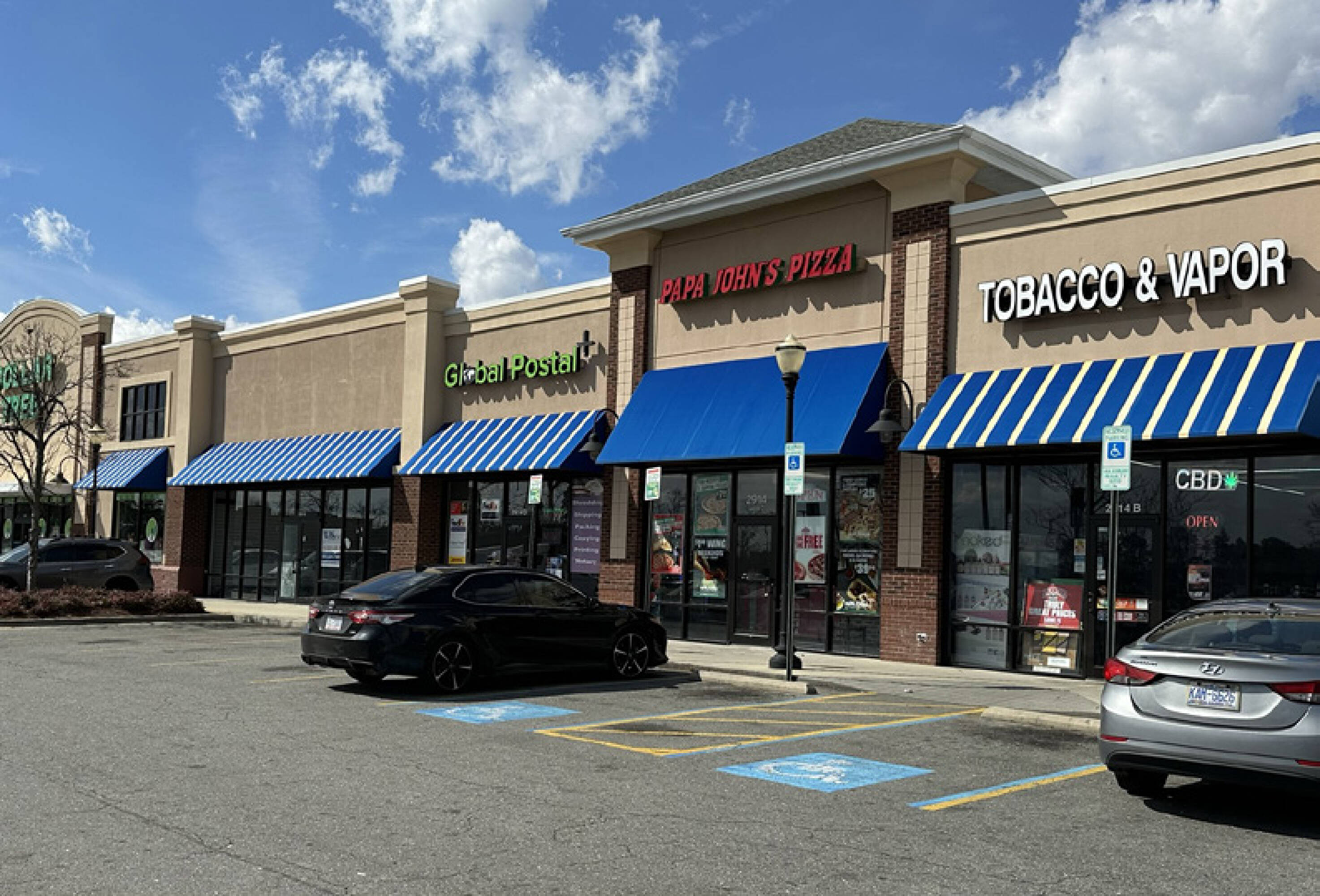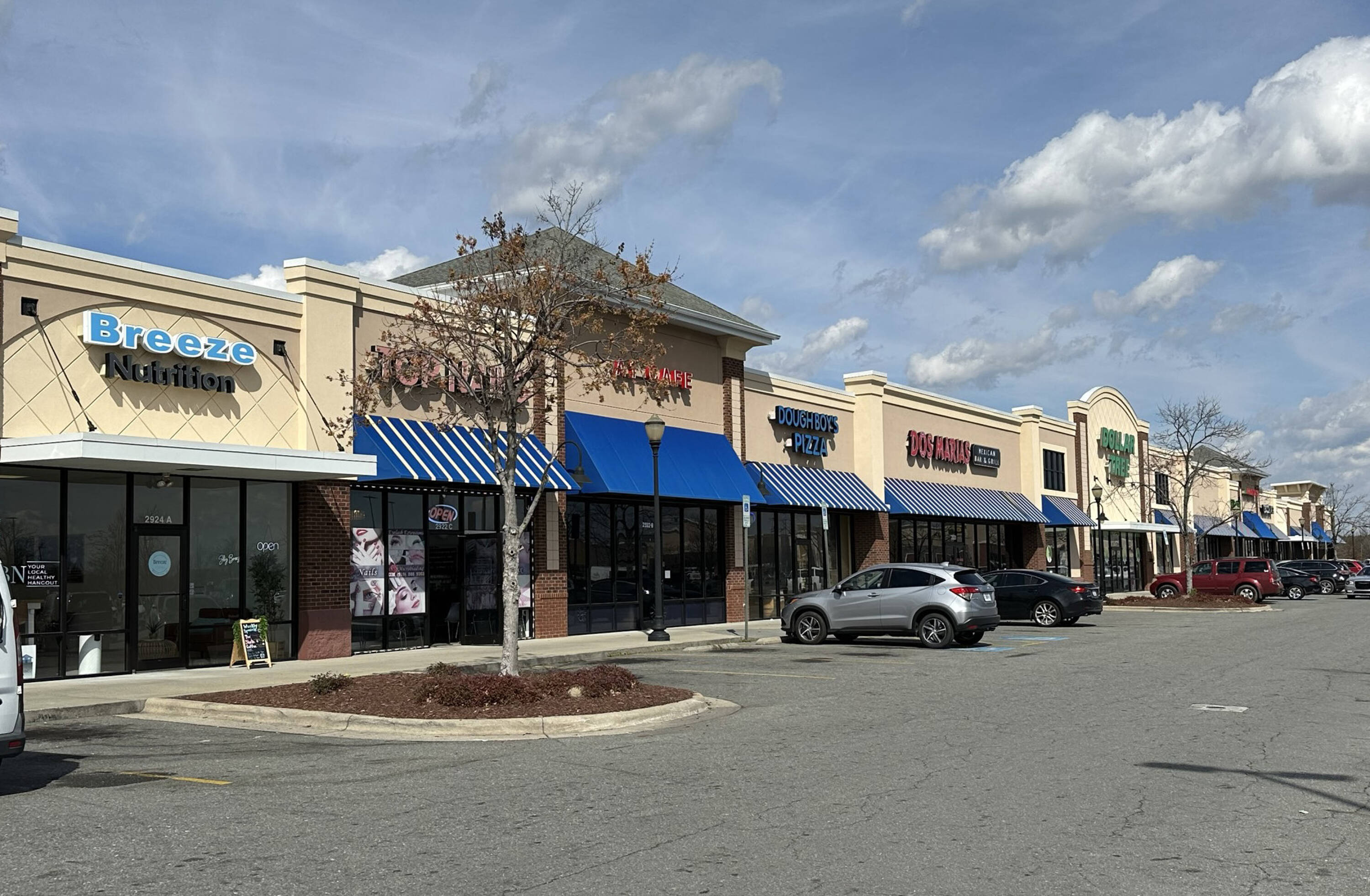Retail spaces available within a Walmart-anchored shopping center.