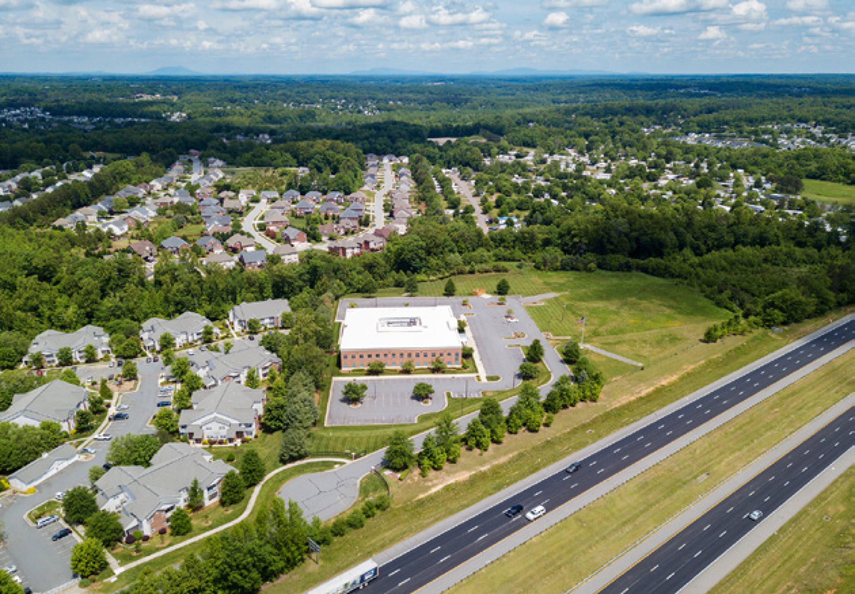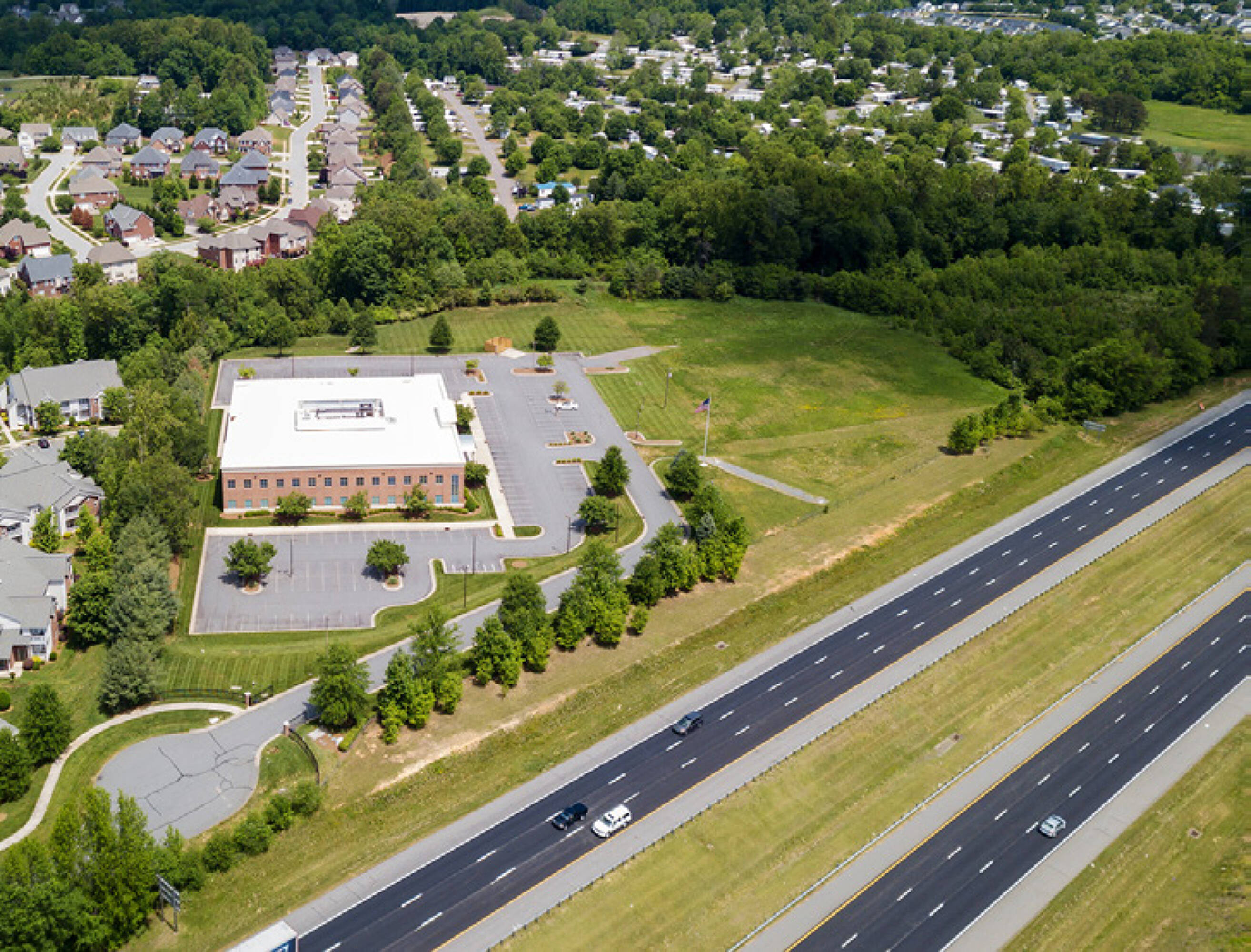 Two-story office building with open floorplan and excellent I-40 exposure.