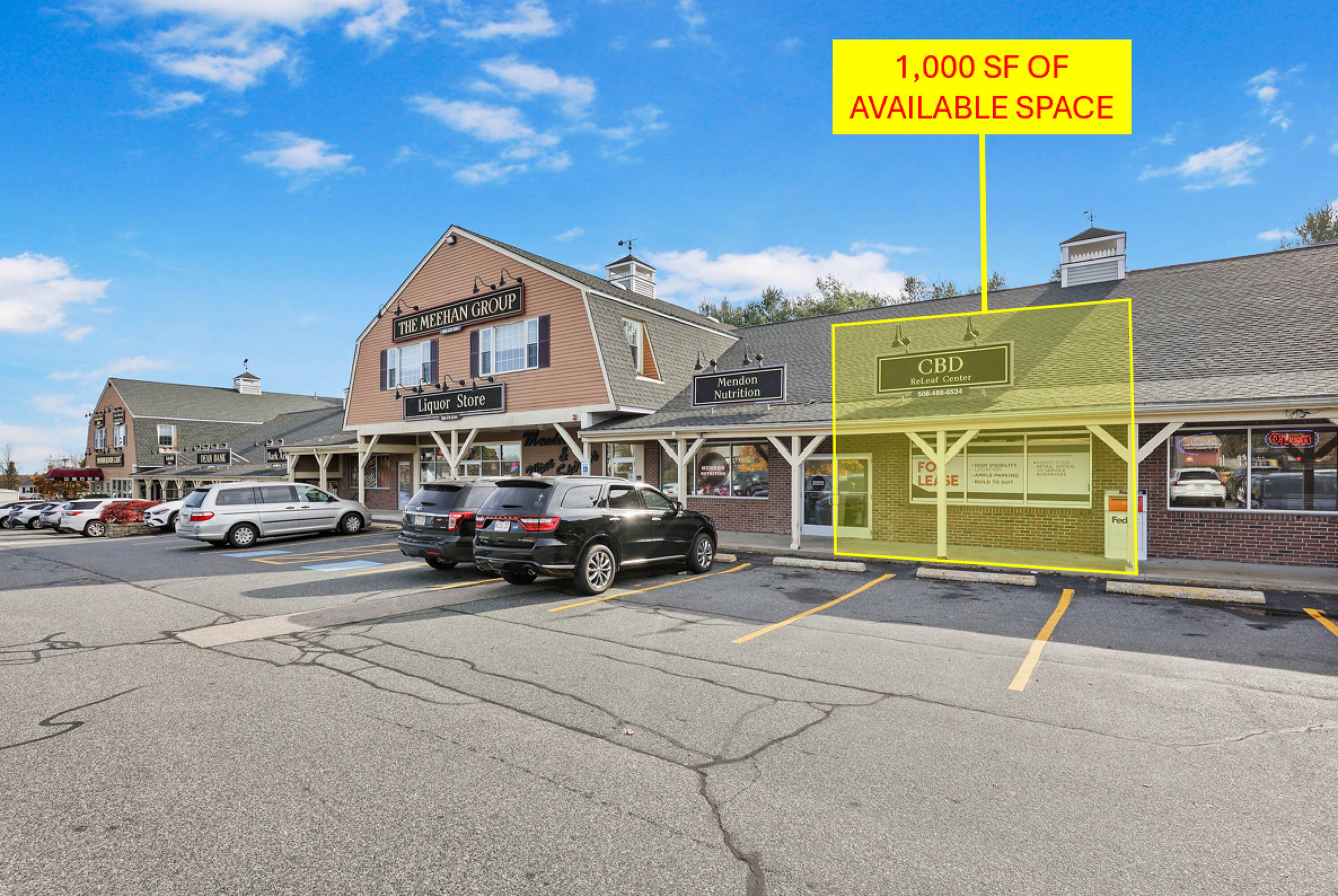 Business space for rent in Mendon's desirable Hood Plaza.