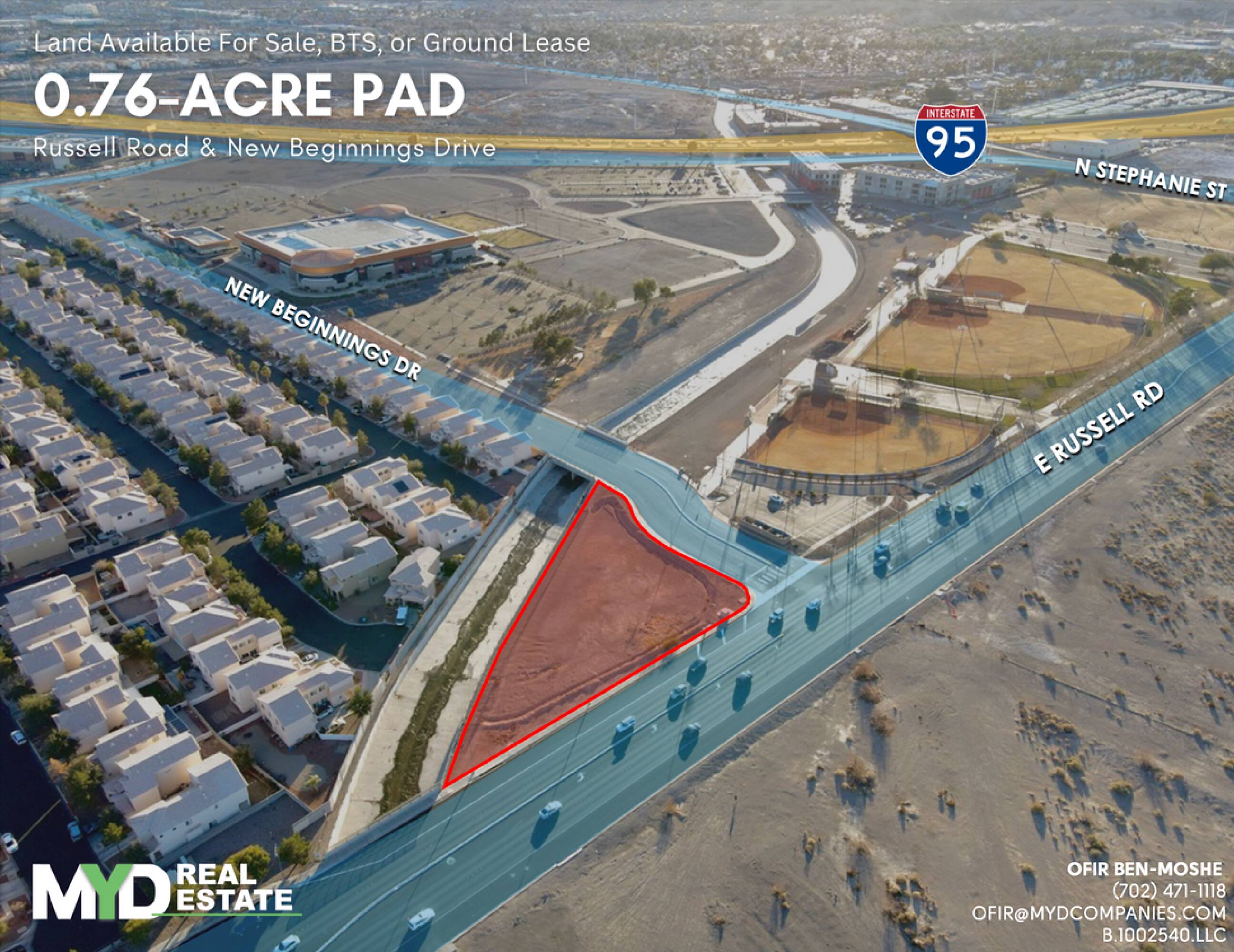 0.76-acre corner parcel with excellent visibility and accessibility.