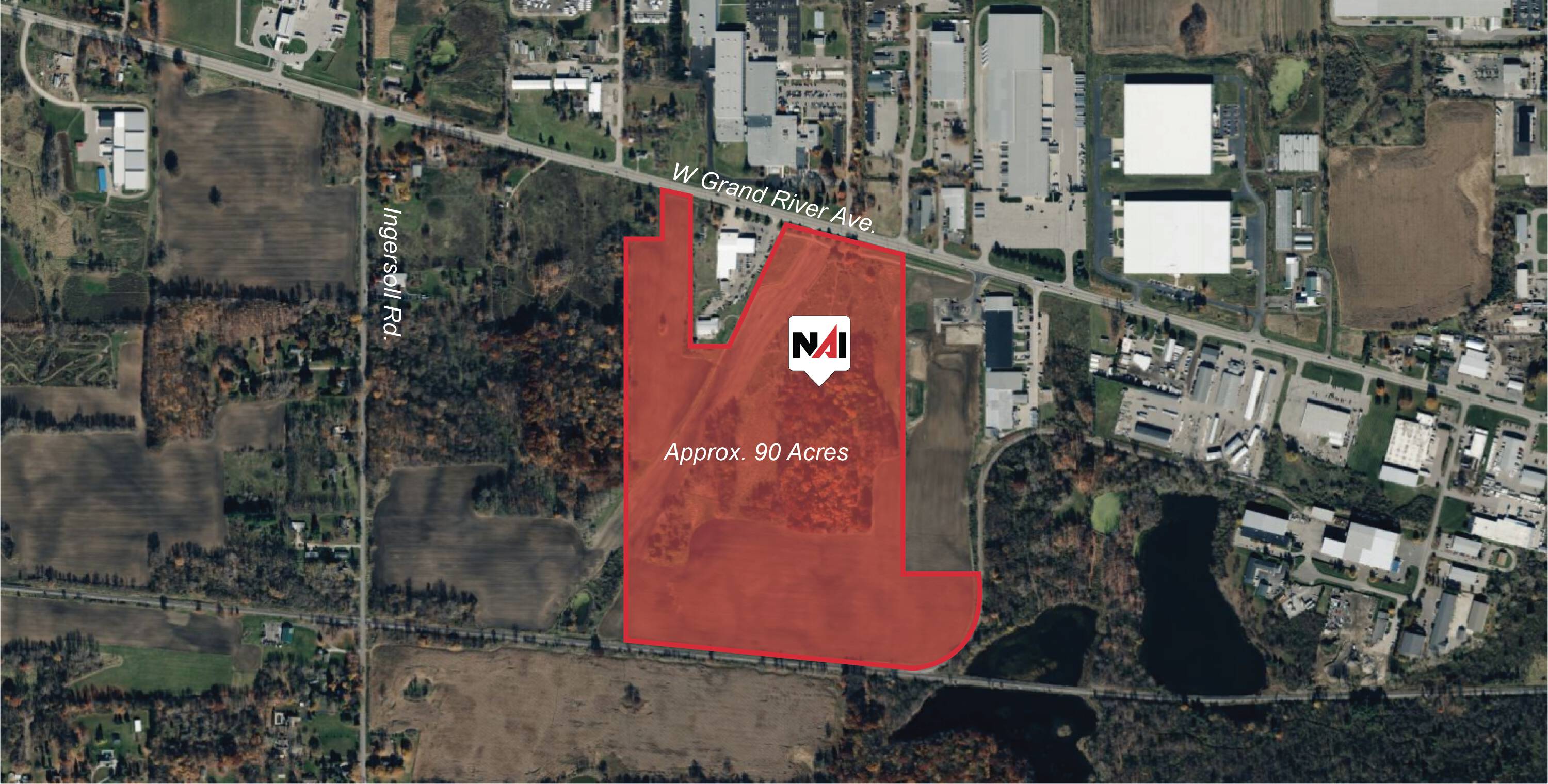90 acres of industrial land near I-96/I-69 interchange.