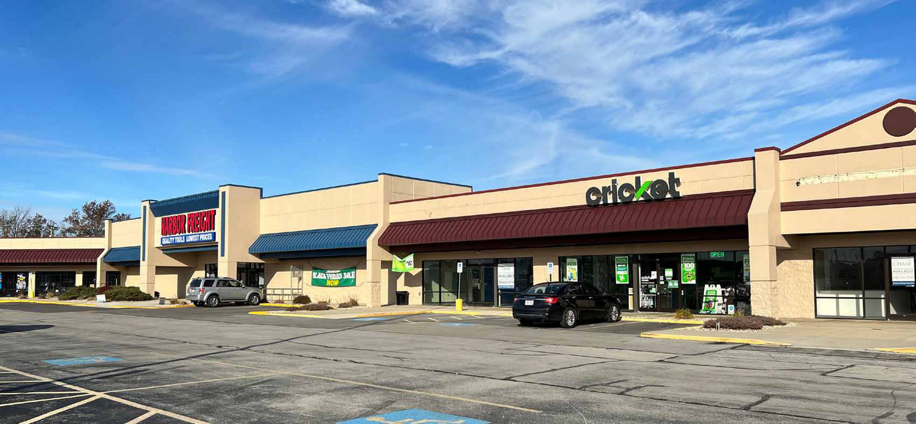 Retail space available in a shopping center in Celina, Ohio.