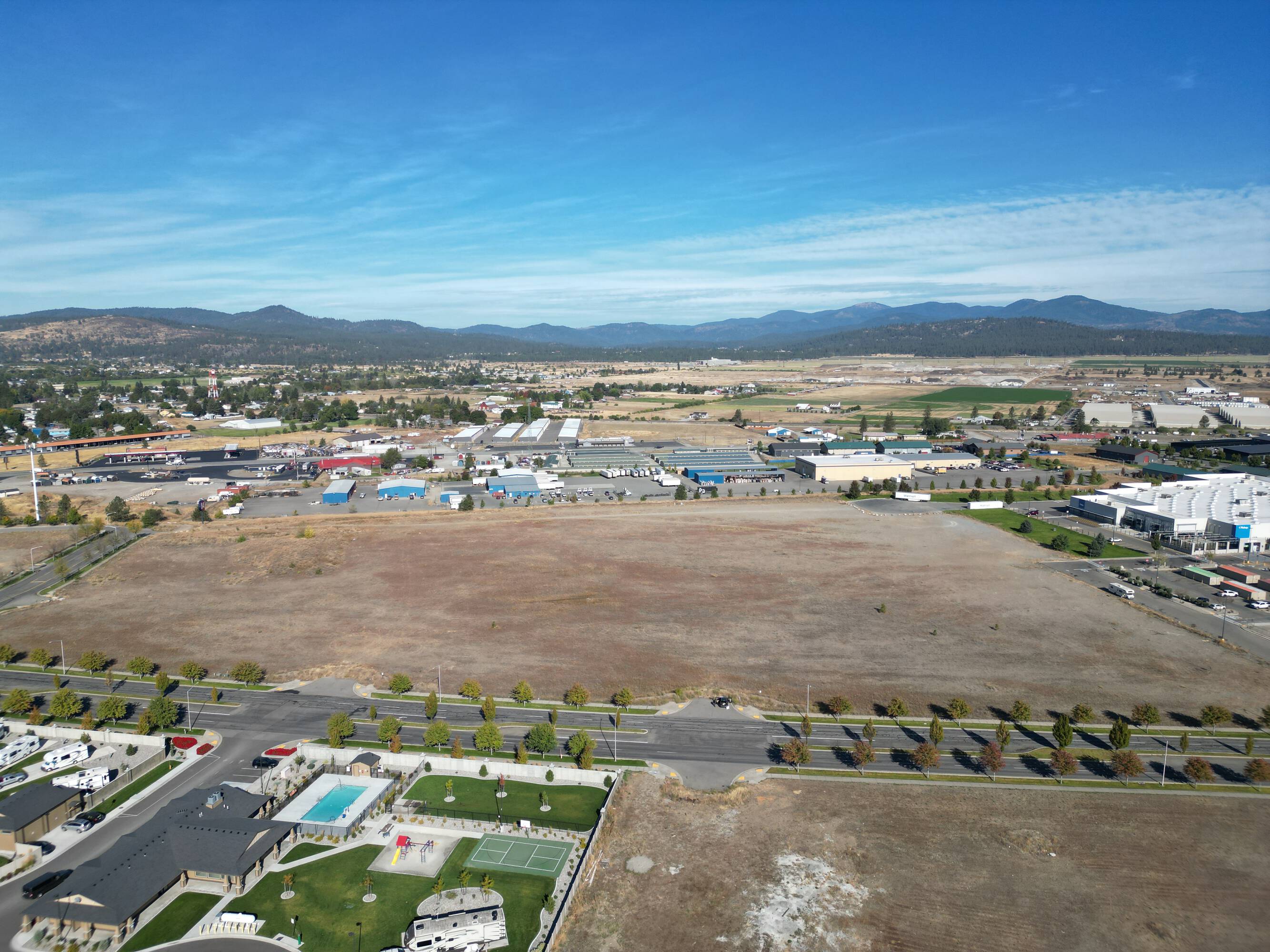 Available are land parcels situated adjacent to a new upscale residential development. The neighboring project consists of 270 market-rate units distributed across 13 buildings. Each unit includes individual garages, and residents have access to a community pool. This location presents an opportunity for businesses to cater to the needs of the 270 households within the development. The land is suitable for retail, services, or other commercial ventures seeking to serve this residential community.