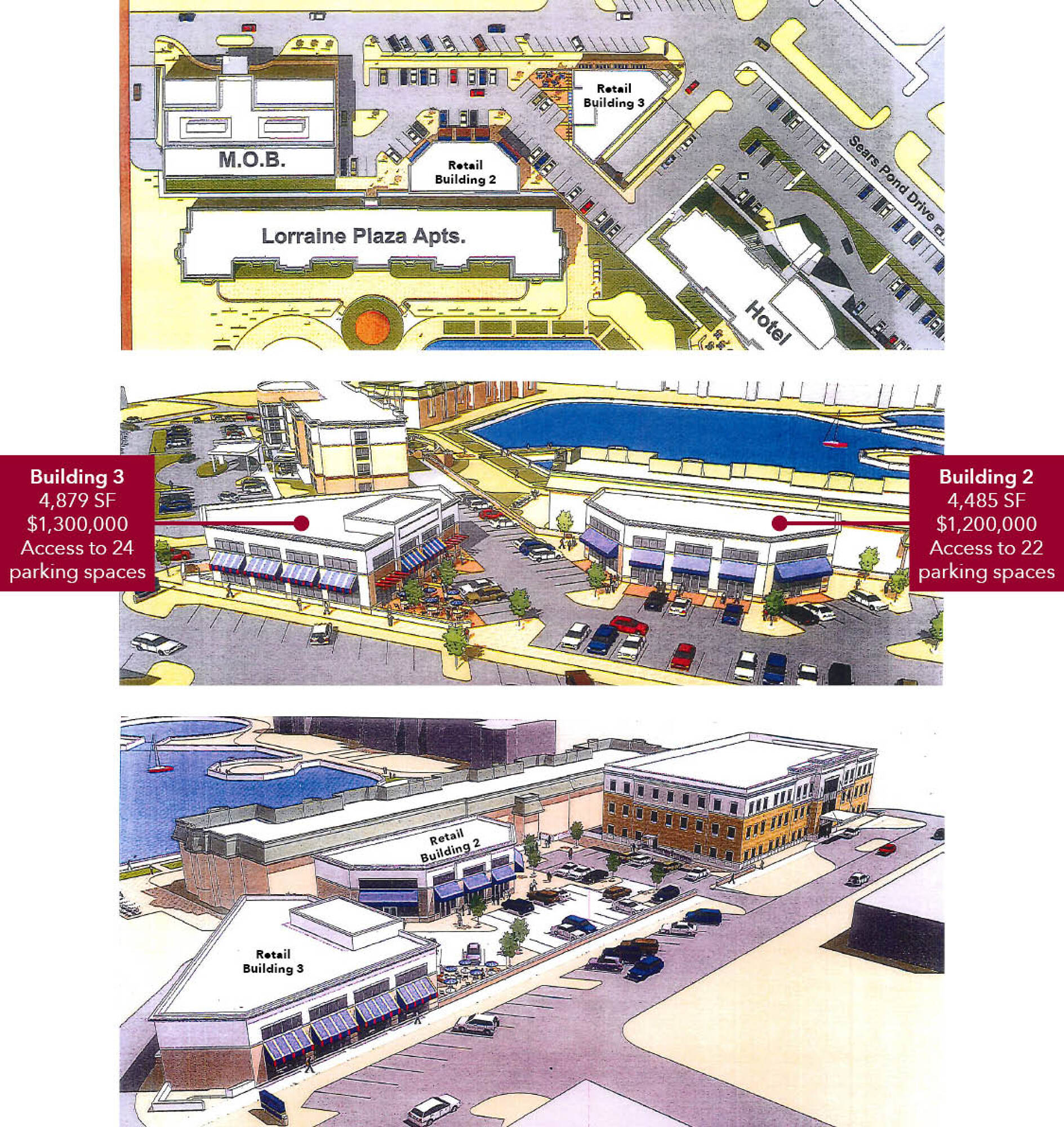 Retail pad sites available within a planned development.