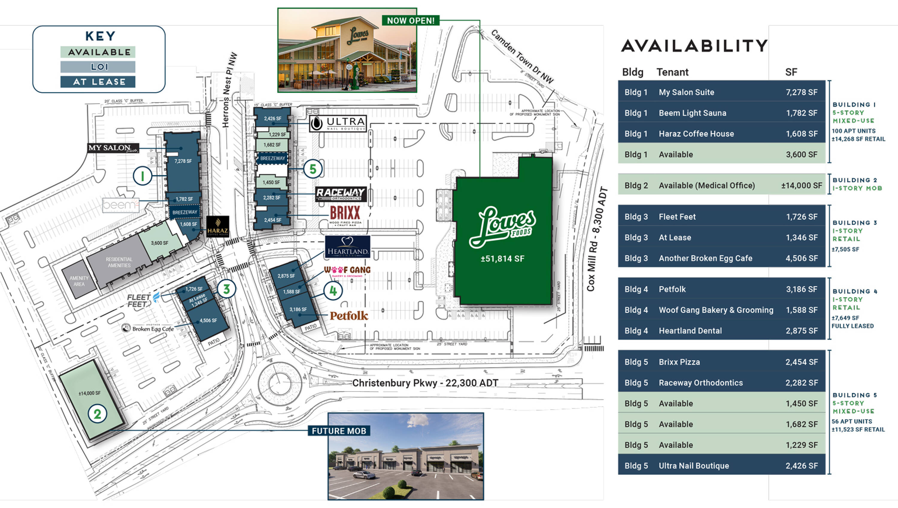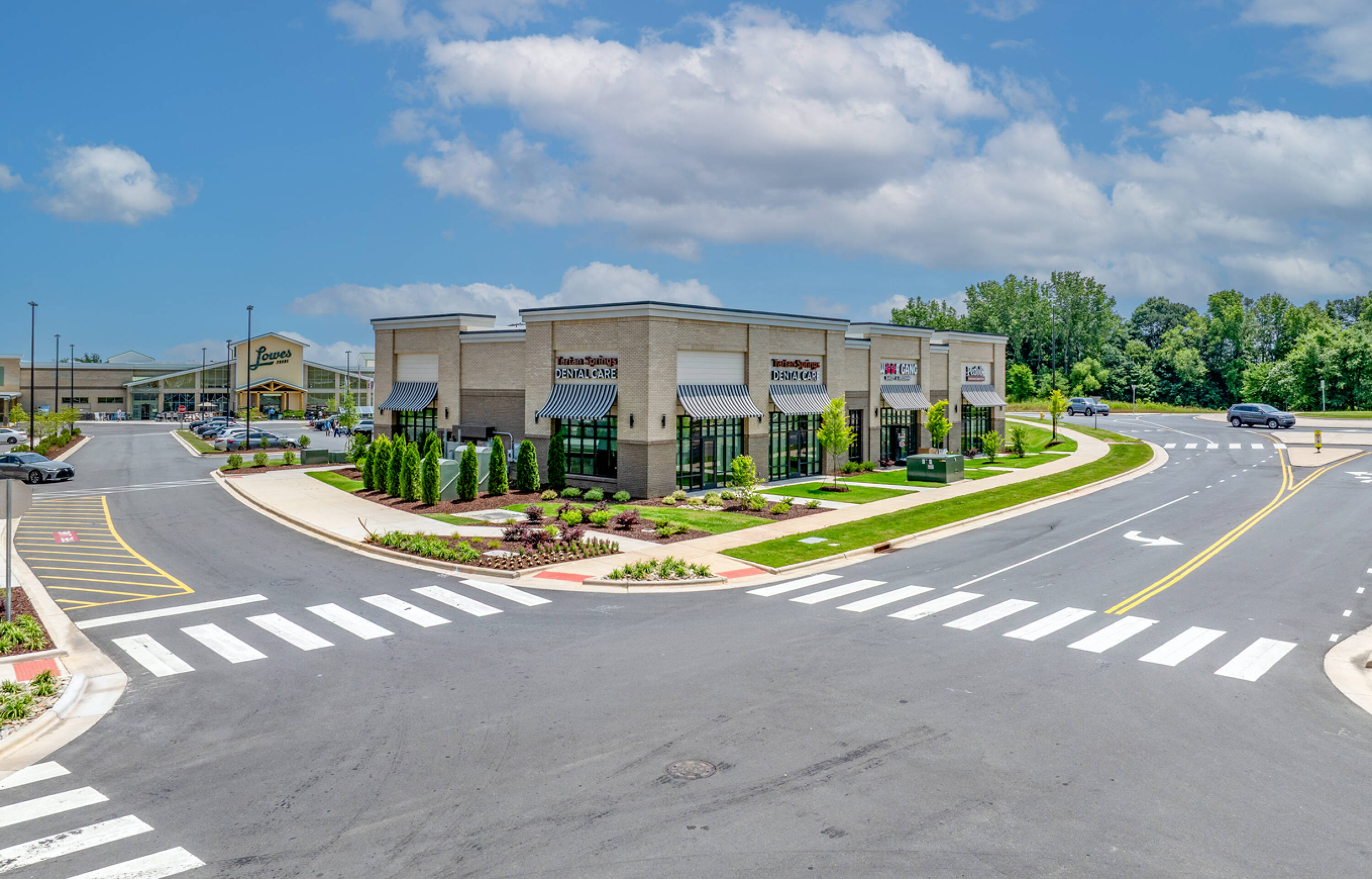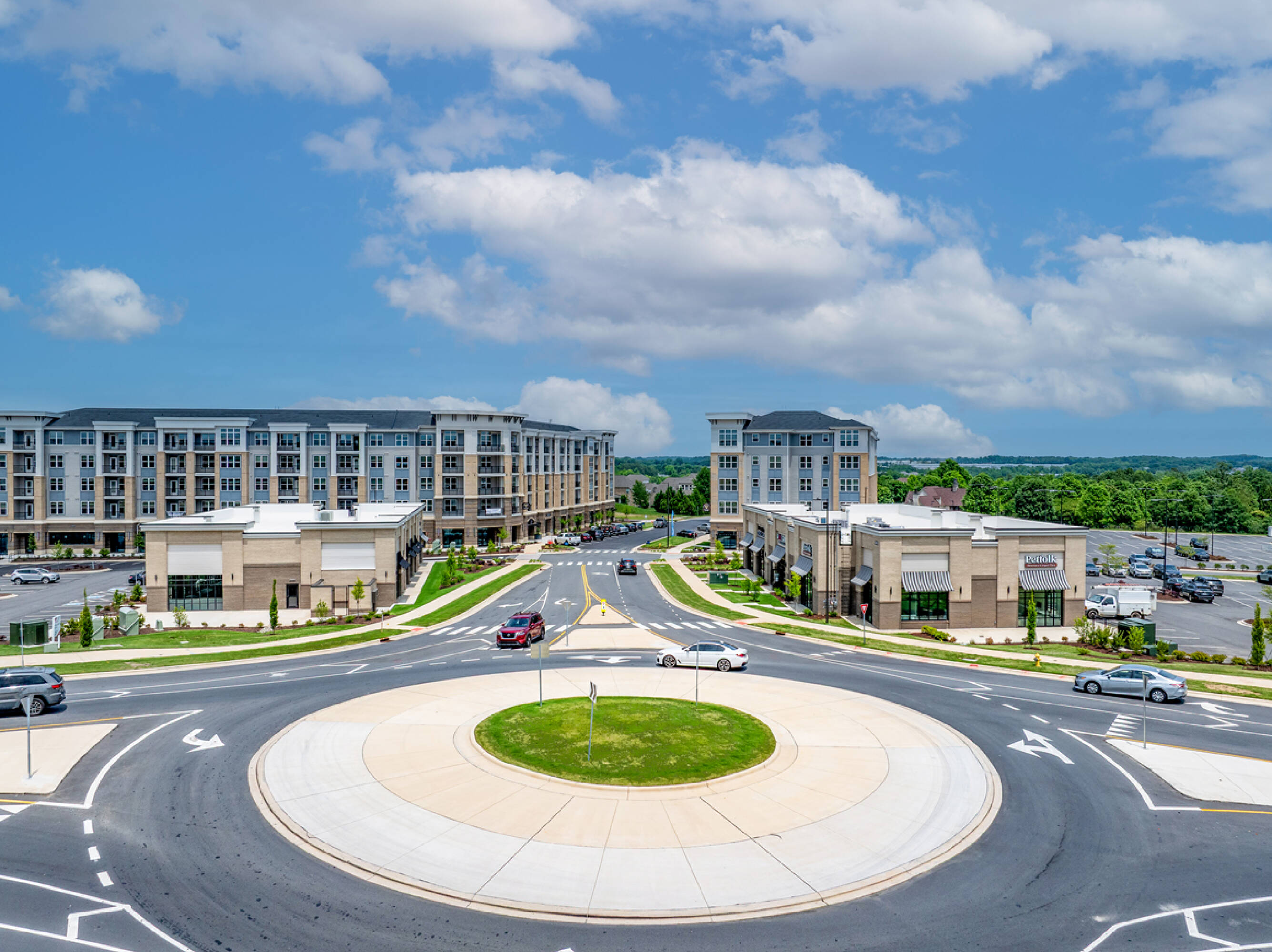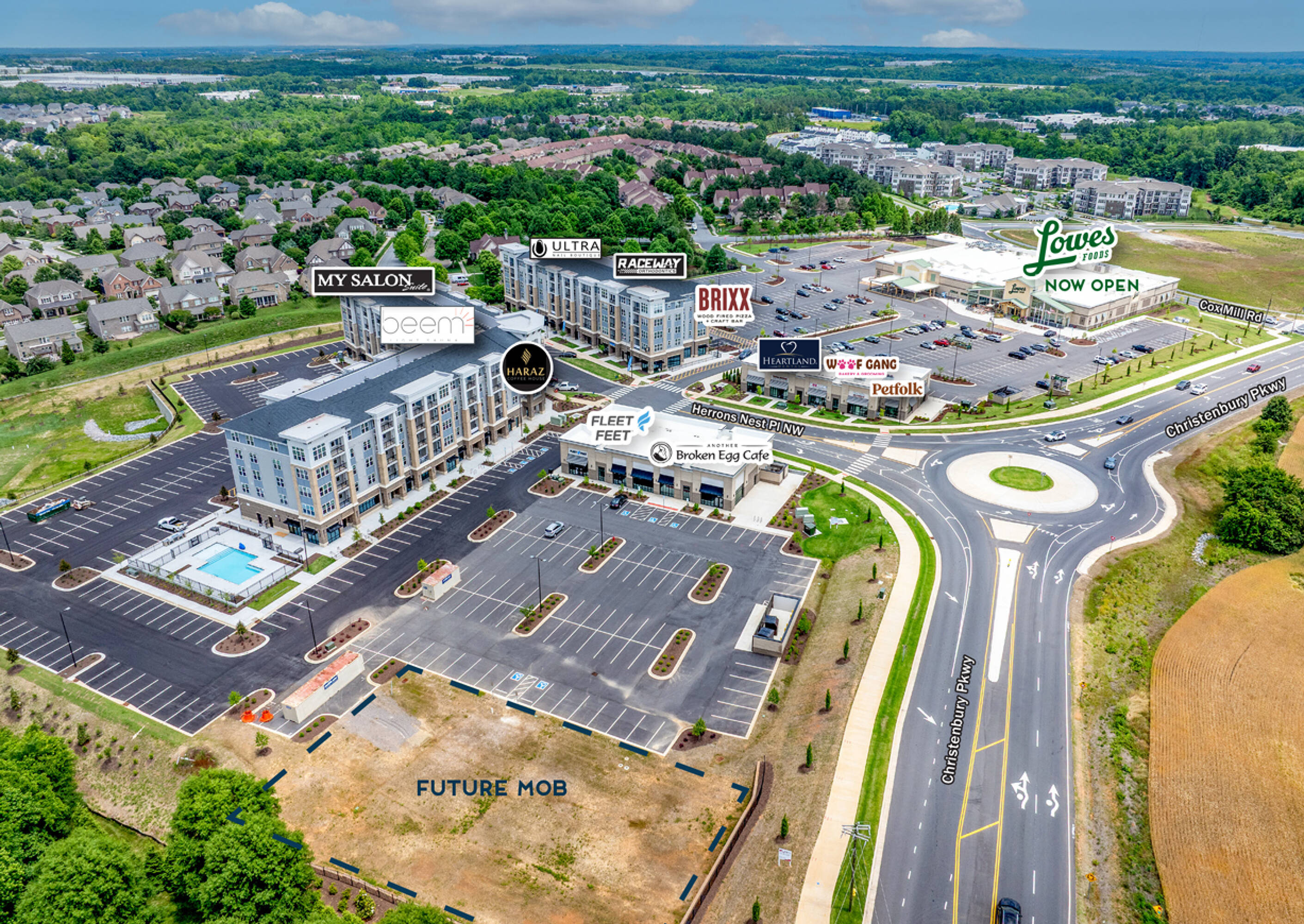 Mixed-use development near Concord Mills with retail and multifamily.