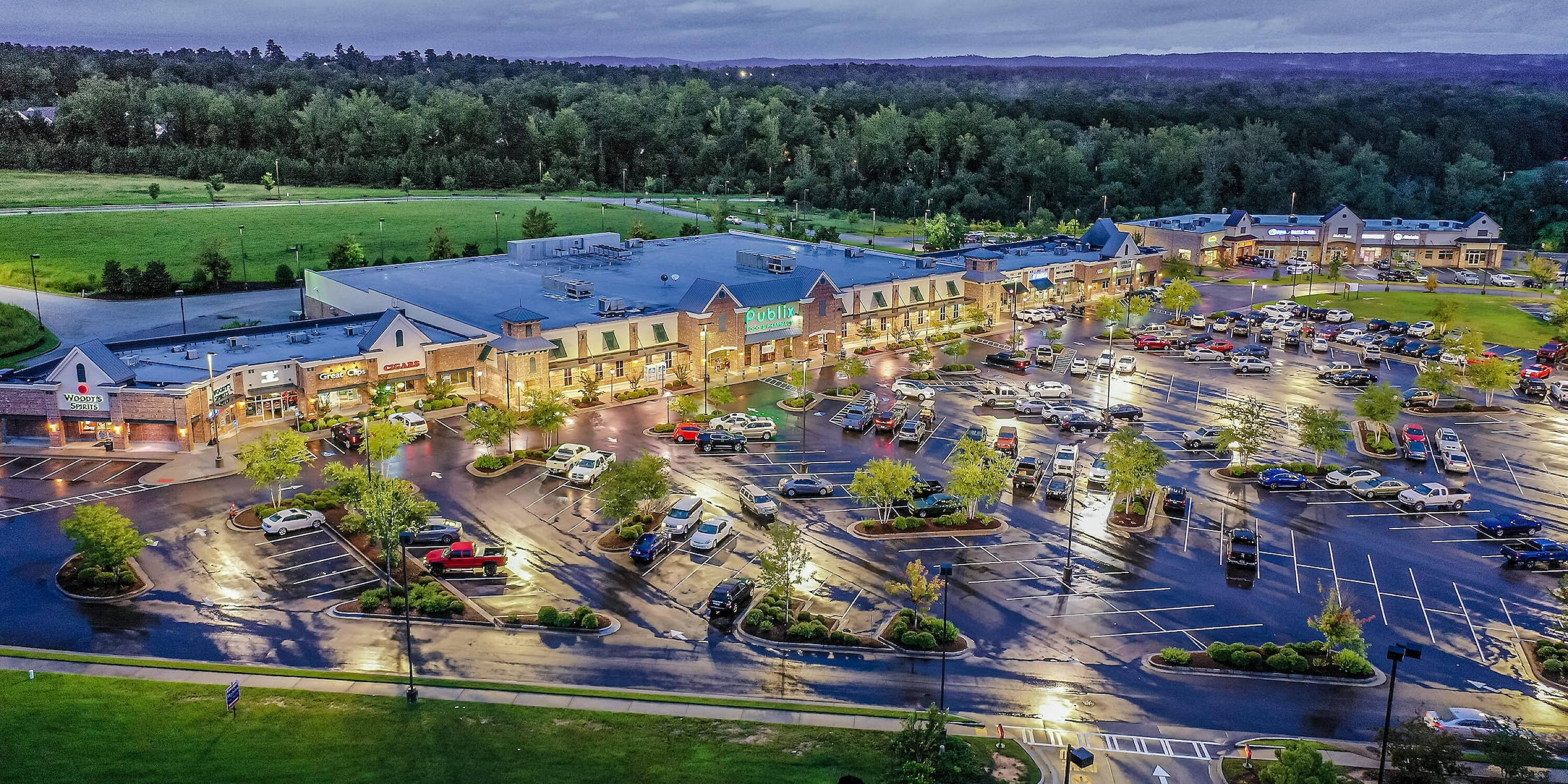 Retail suites available for lease in Evans, Georgia.