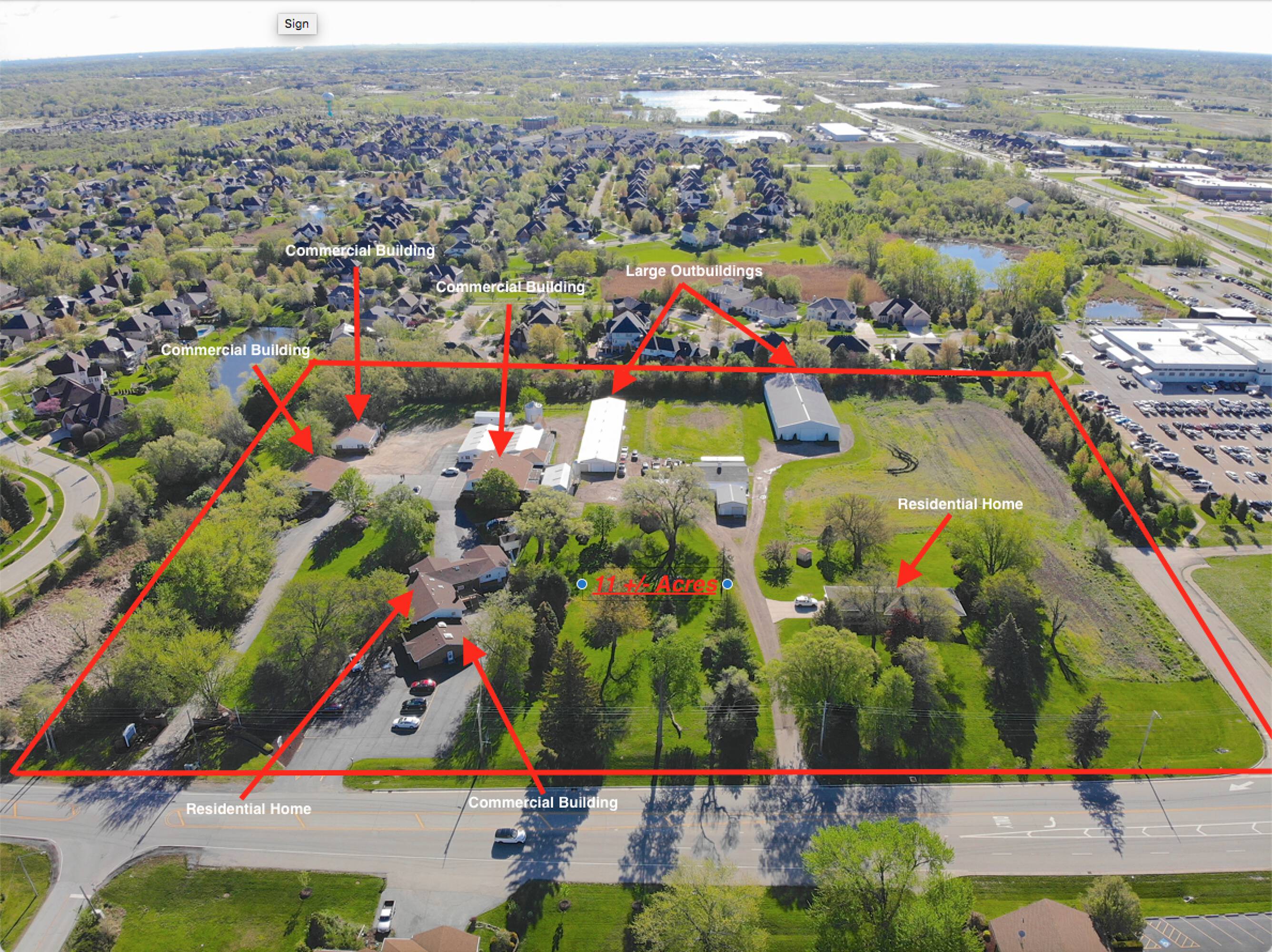 2.5-11 acre property in Orland Park with mixed zoning.