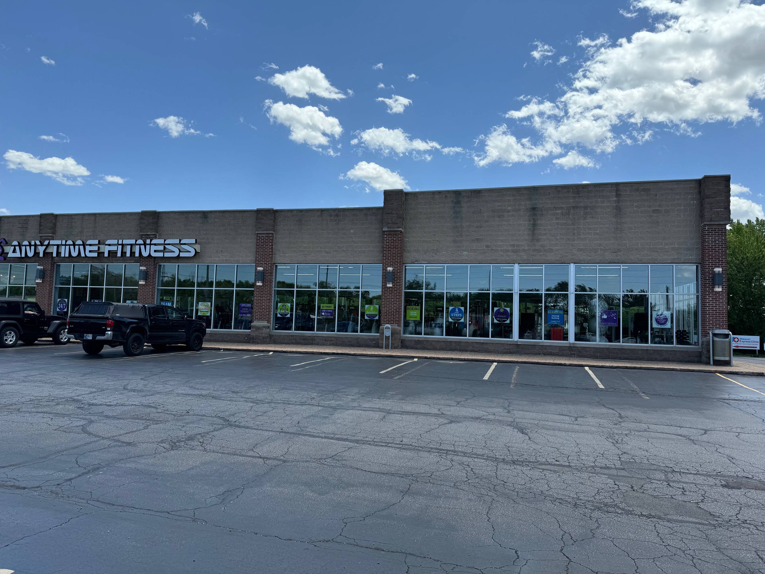 This retail space offers great visibility on US 30 Highway, which sees over 53,000 vehicles per day. The retail center is well-maintained. Major retailers such as Sam’s Club, Walmart, Hobby Lobby, and South Lake Mall are located in the nearby area. Available spaces range from 1,000 to 5,500 square feet. The property is ideal for any retail or office user. The tenant mix includes Anytime Fitness, Midwest Express Clinic, and El Salto Mexican Restaurant.
