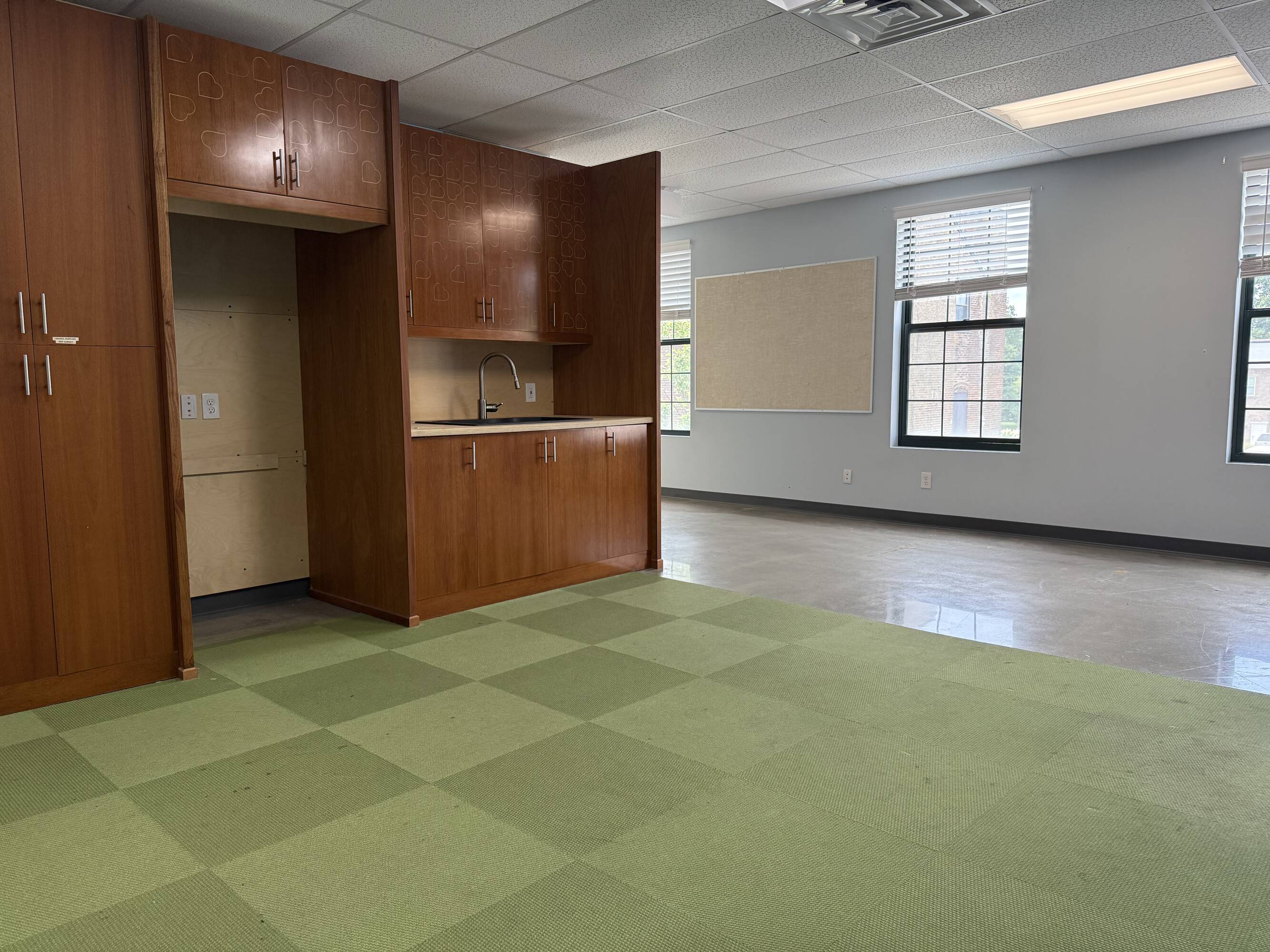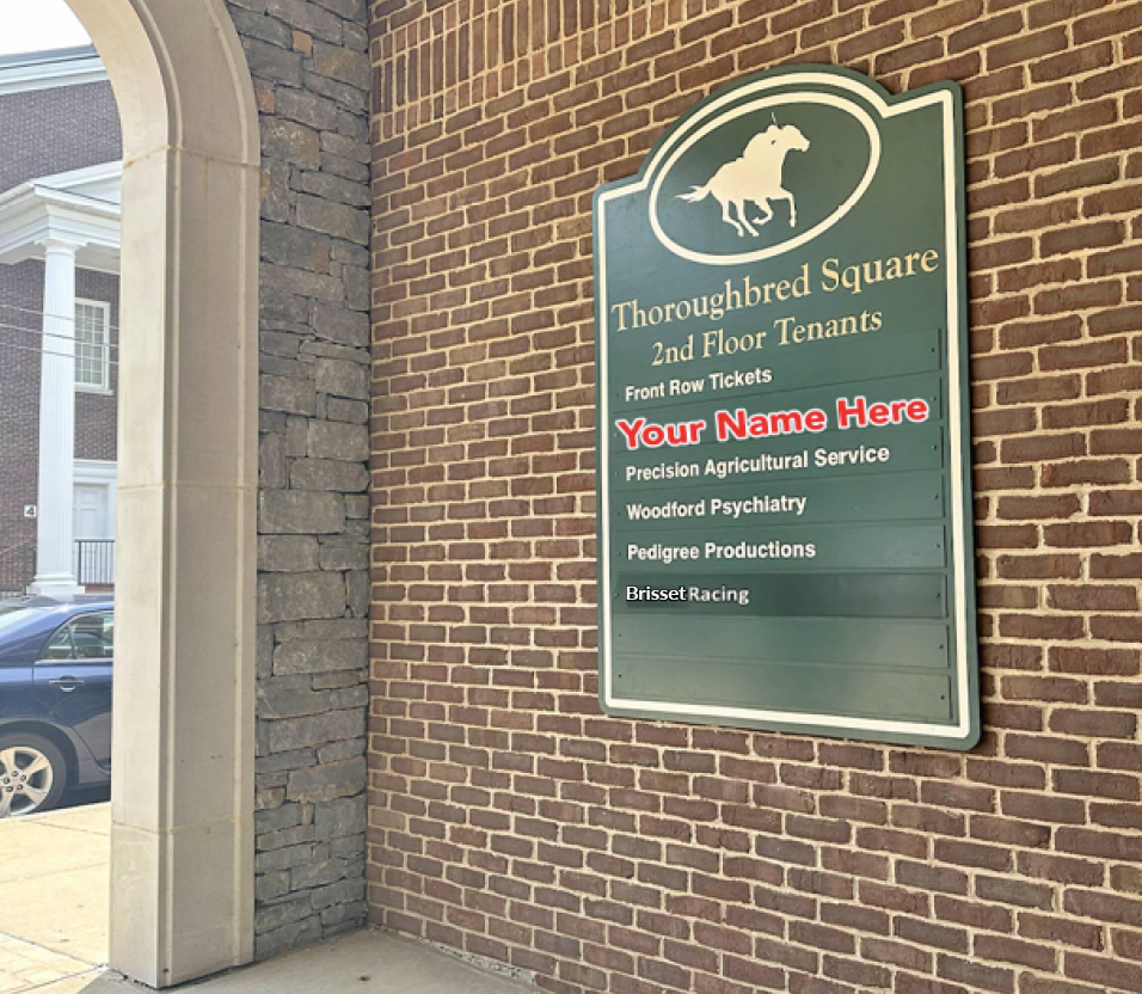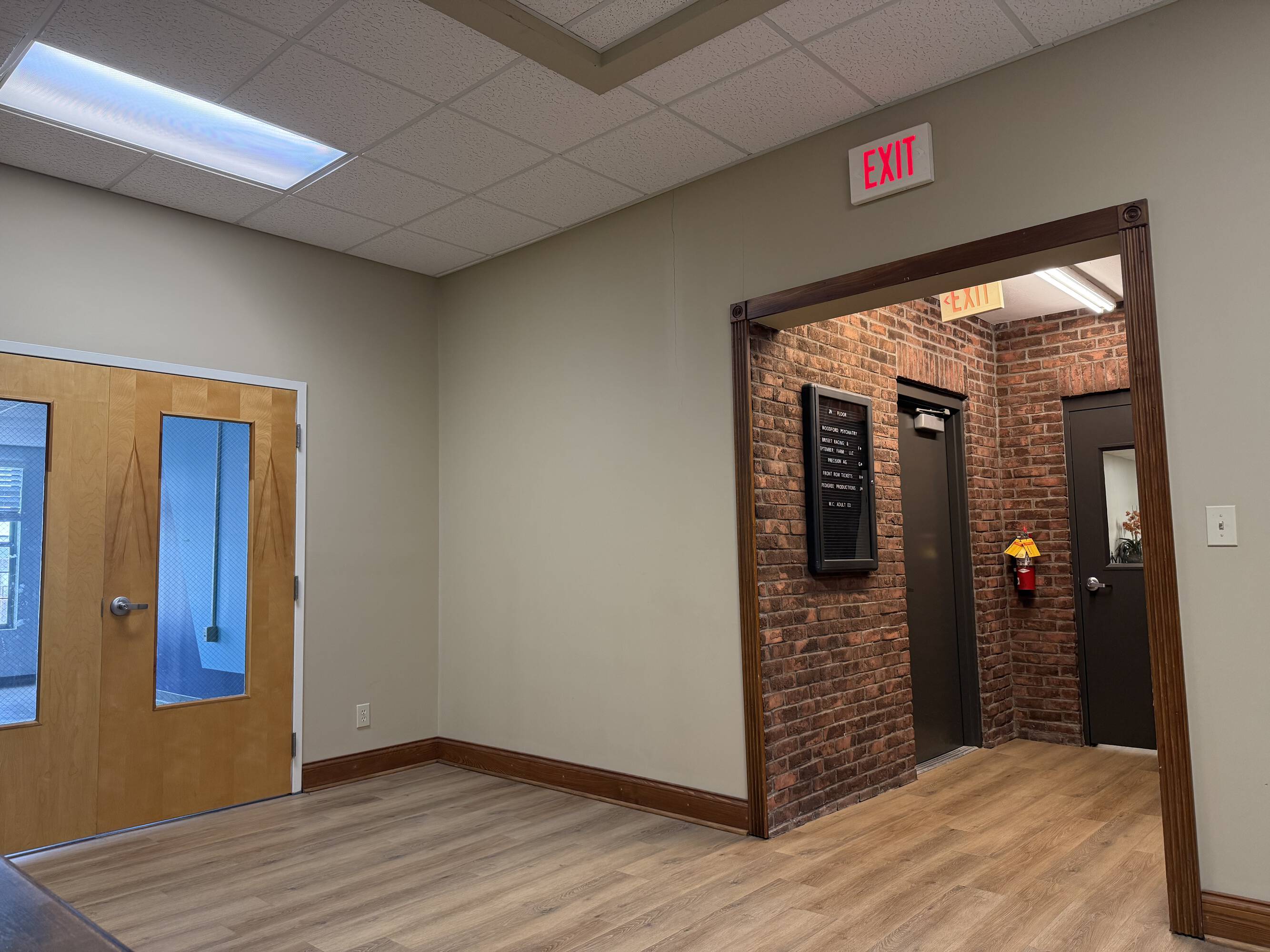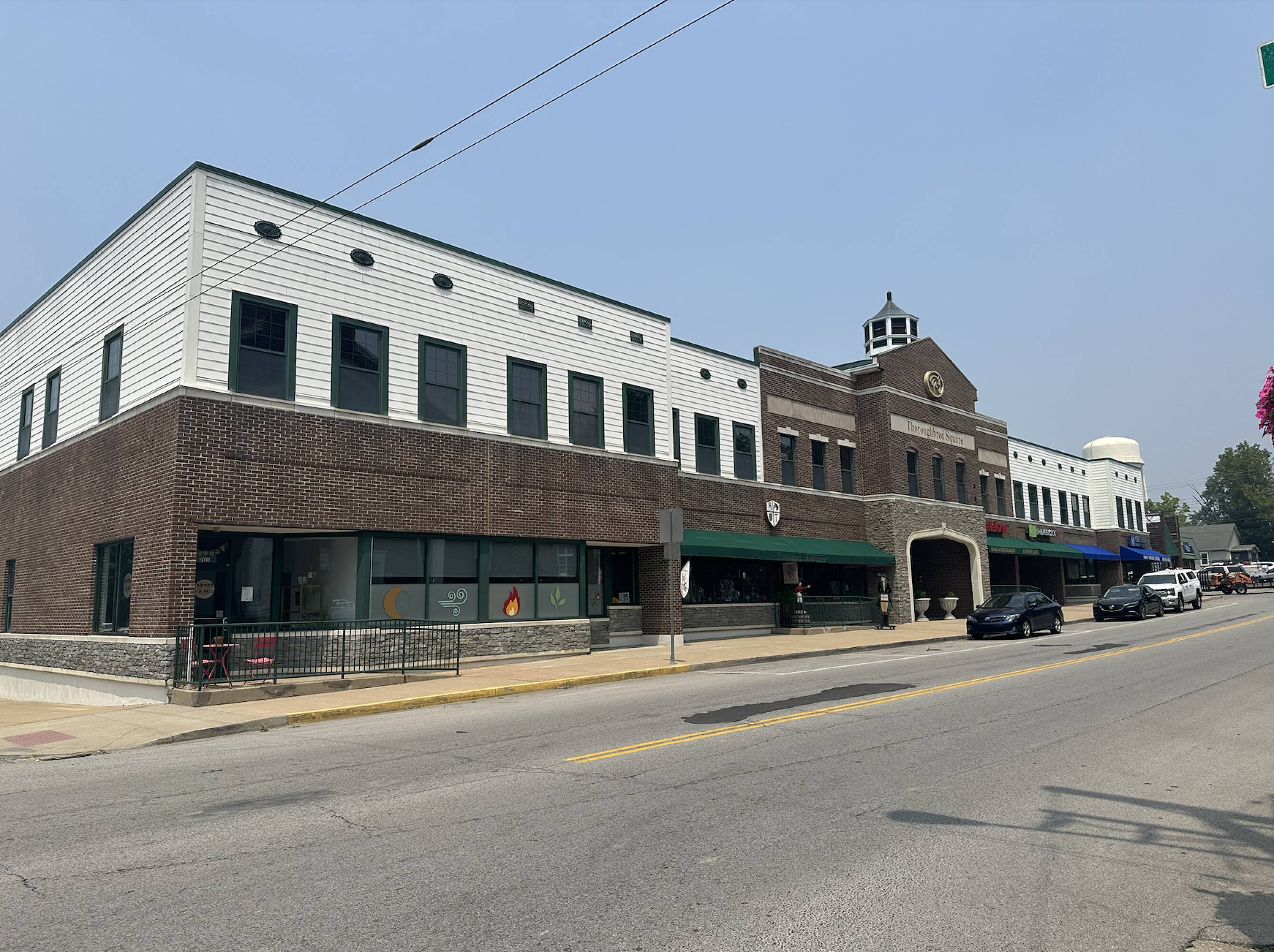 Thoroughbred Square, situated at 201-217 N. Main Street in Versailles, Kentucky, is a mixed-use property in the Central Business District. The Class A, two-story building features steel and concrete construction with an exterior of ornamental stone, wood siding, and masonry brick veneer. The property totals 20,858 square feet and includes a mix of tenants, such as dental, medical, accounting, insurance, education, fitness, technology, professional office, and retail businesses. Located on 1.853 acres, the property provides a 55-space parking lot, with additional reciprocal easement and street parking. An elevator serves the second-floor tenants. One available space, located at 209 N. Main Street, offers 2,023 square feet of professional office space. This space features sealed concrete flooring, a lobby area with a kitchenette, two private offices or conference/meeting rooms, an open bullpen area, a storage closet, and an IT closet. Previously used as a classroom and office space, the layout is suitable for cubicles or desks in the open bullpen area or in one of the private rooms, making it conducive for office users. Signage is available on the directory in the breezeway.